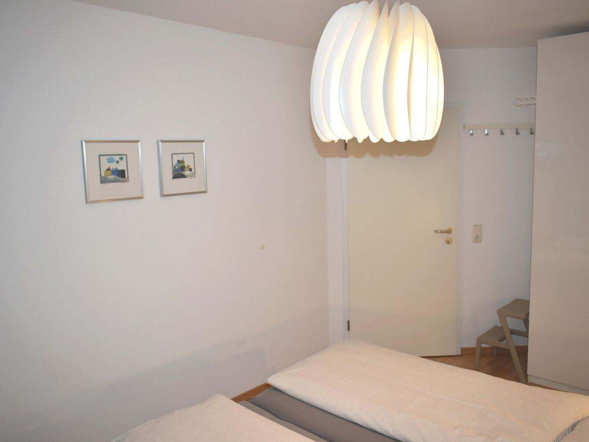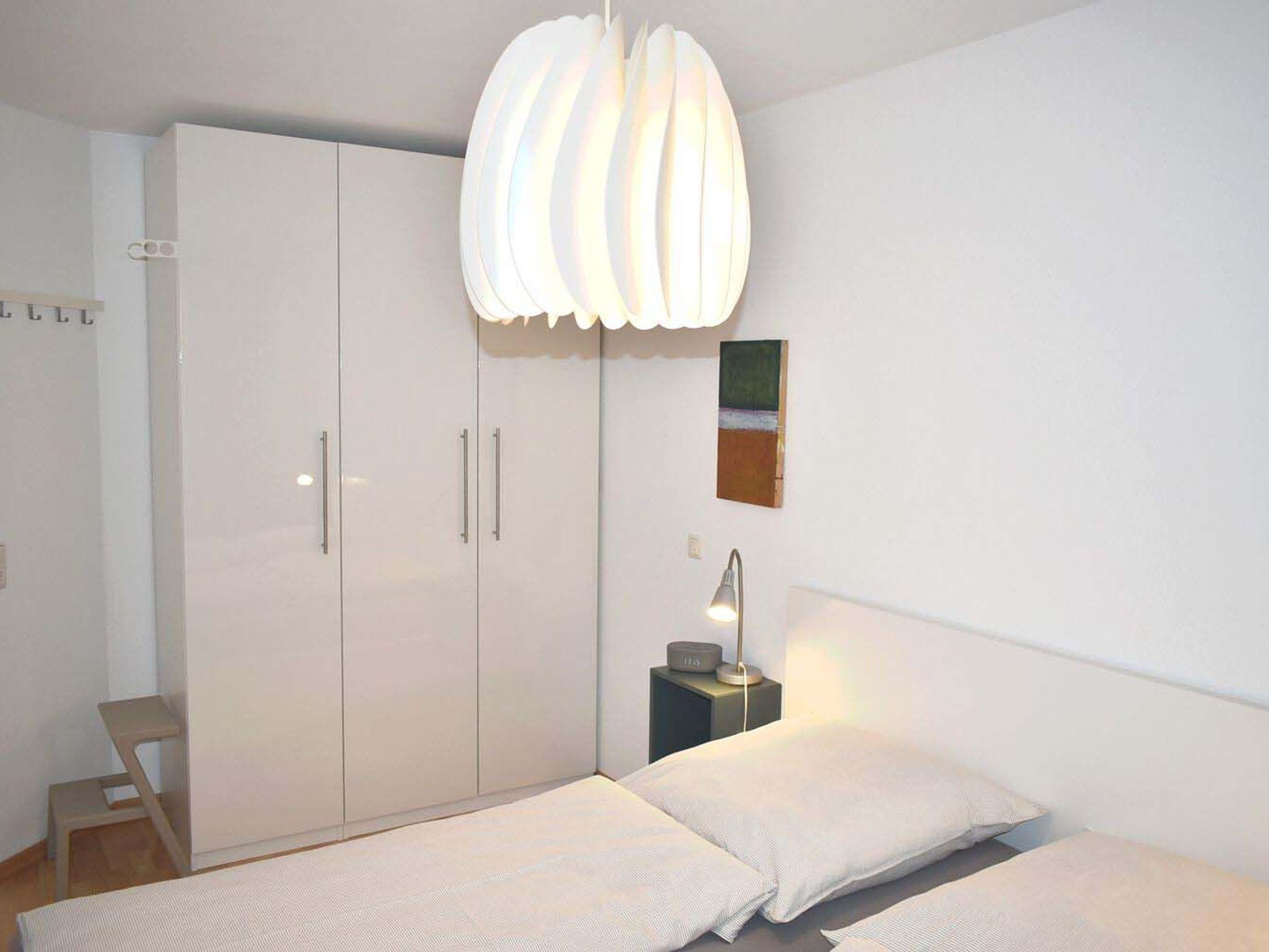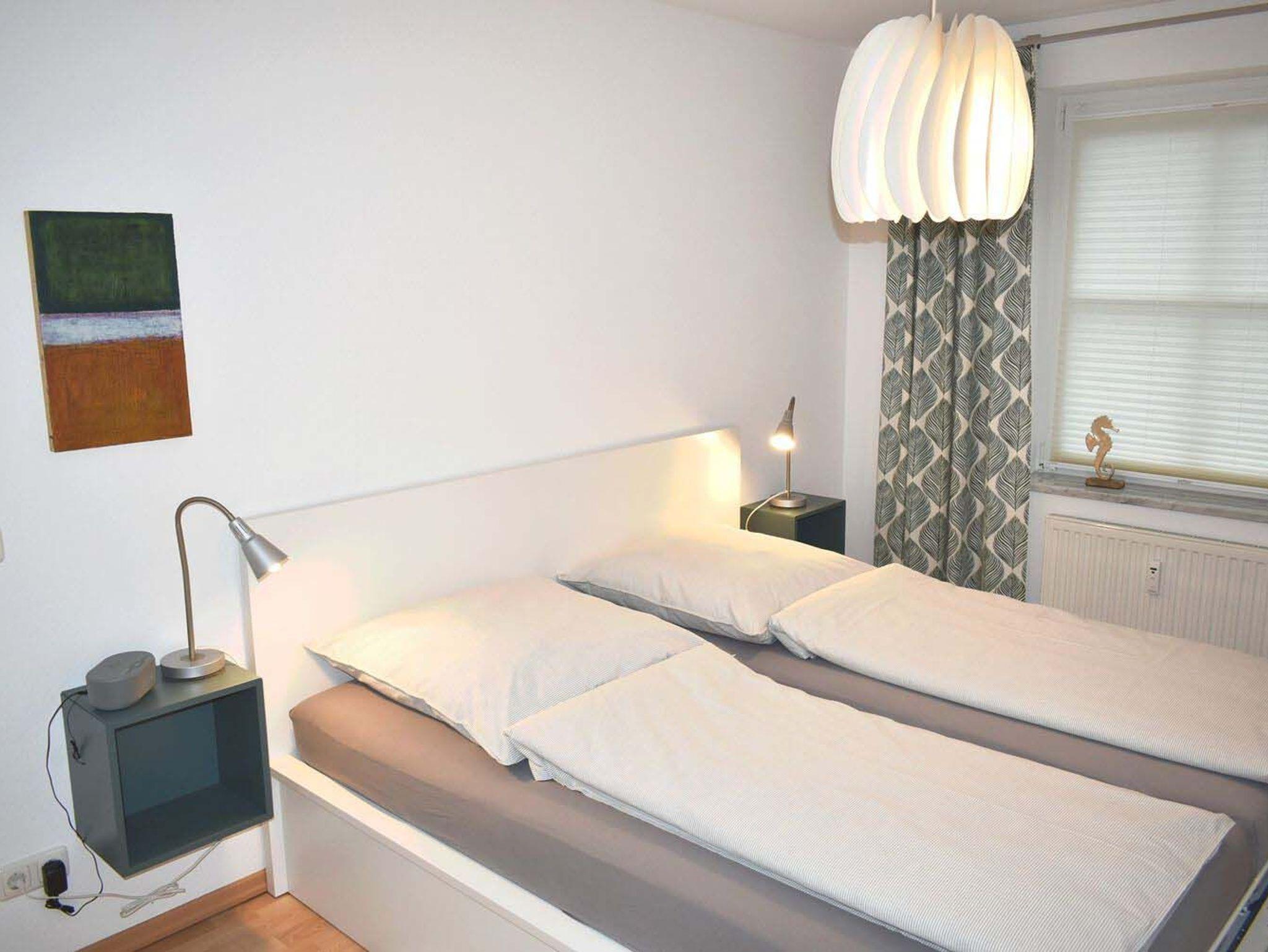 Schlafzimmer 1: 2 Matratzen, 2 Nachttische, 2 Nachttischlampen, Doppelbett 2,00 x 1,80 m, Flachbildschirm, Hakenleiste, Hocker, Kabel-TV, Kleiderschrank, Radiowecker, Tritt