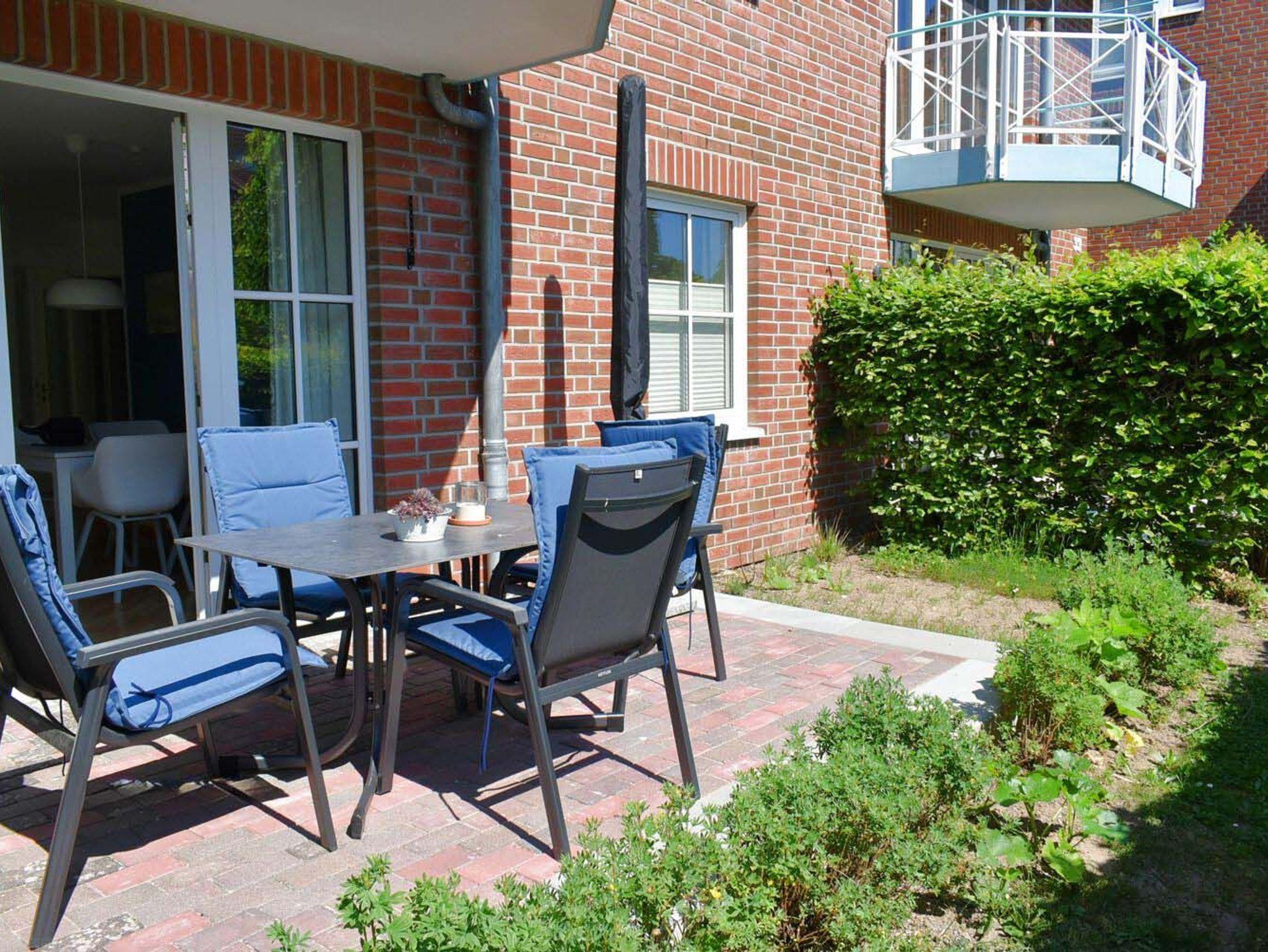 Terrasse: 4 Stühle mit Auflagen, Sonnenschirm, Süd- Ostlage, Tisch