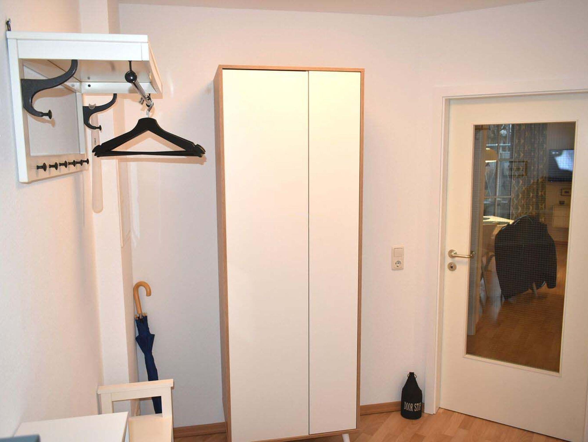 Flur: Garderobe, Regale, Schrank, Schuhständer, Spiegel, Staubsauger, Wäscheständer