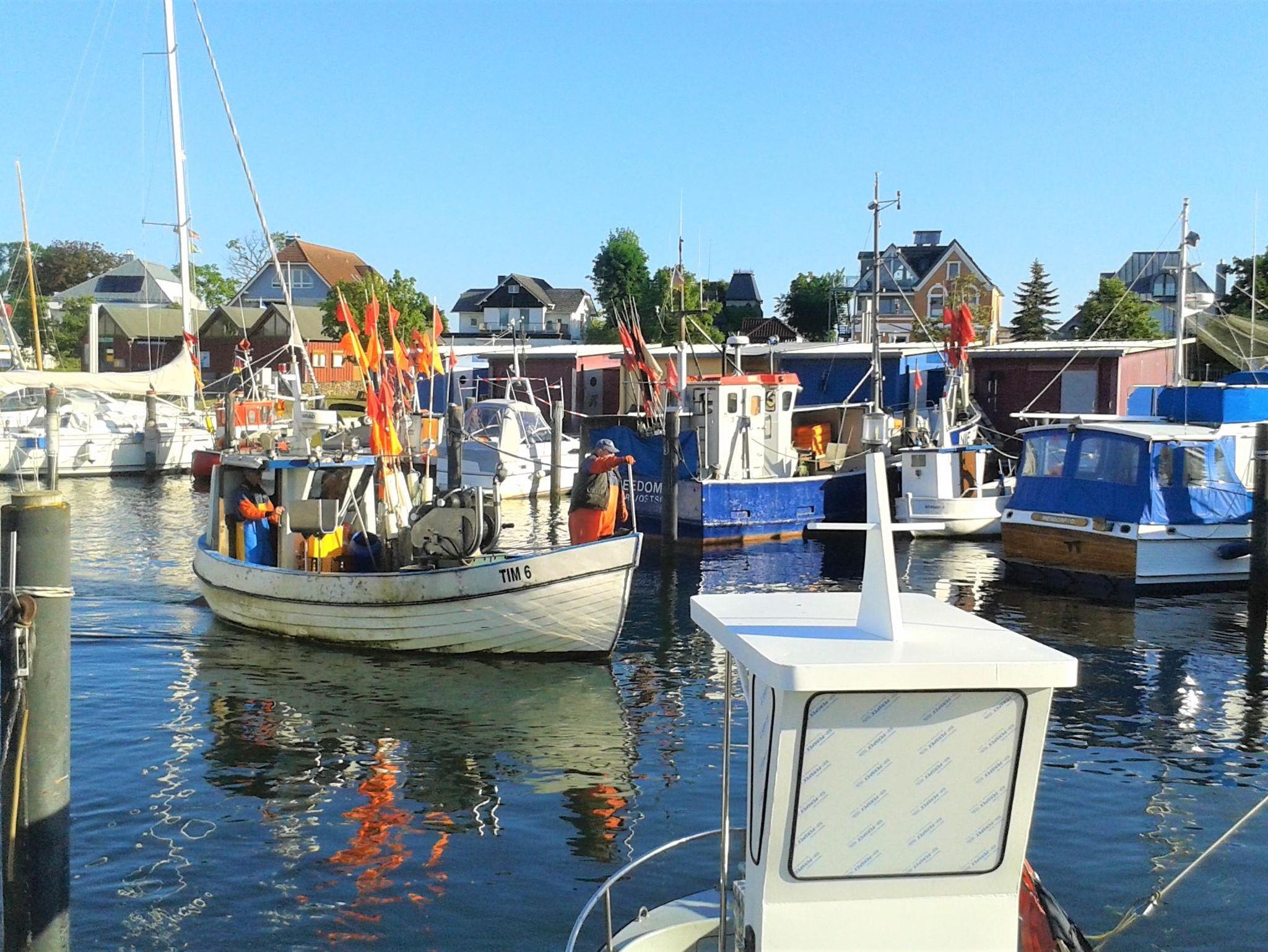 Gegenüber dem Fischereihafen, ca. 150 m zum Strand. Mit dem Auto: auf der A 1 bis zur Abfahrt Ratekau/Timmendorfer Strand/Niendorf. An der Ortseinfahrt Timmendorfer Strand weiter auf der B 76 Richtung Travemünde. Abfahrt Niendorf Hafen.