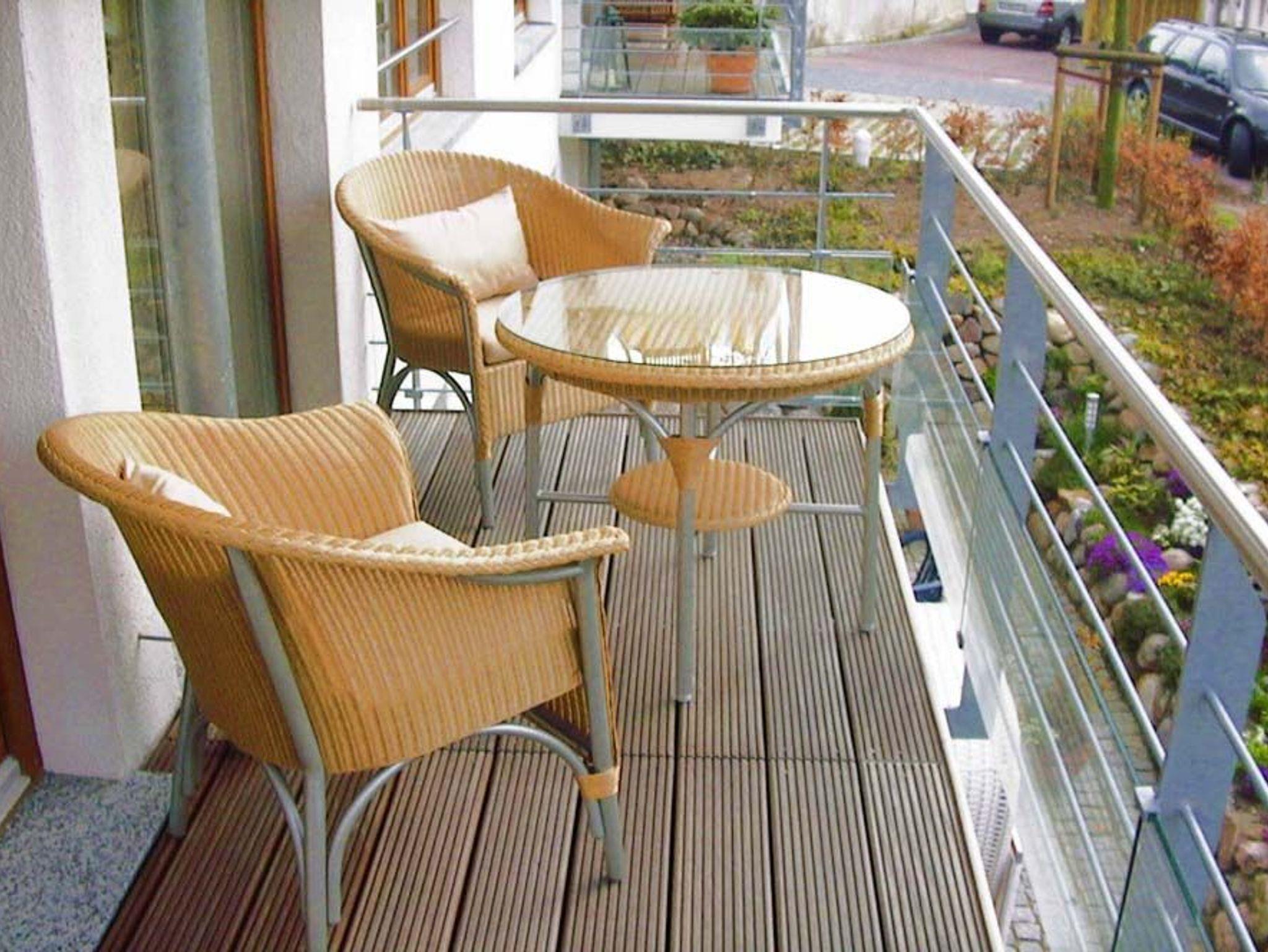 Balkon: 2 Sessel, Balkon geht über zwei Aussenseiten, Nord- Westlage, Tisch