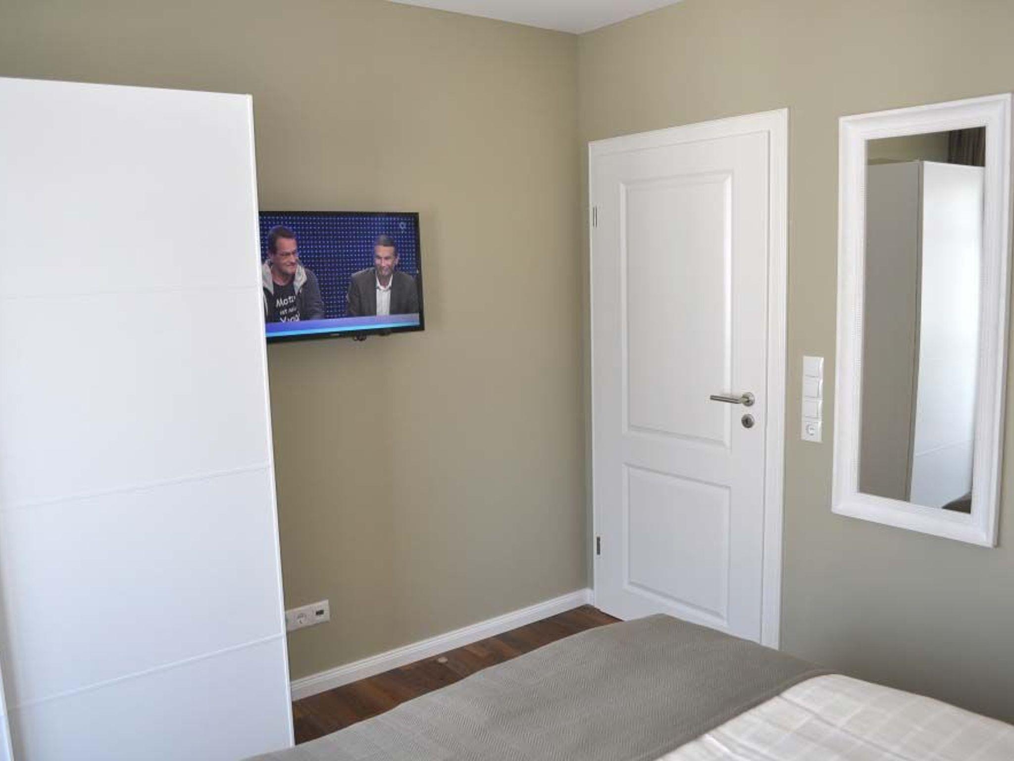 Schlafzimmer 2: 2 Einzelbetten 2,00 x 0,80 m, 2 Hocker, Flachbildschirm, Kleiderschrank, Kommode, Sat-TV, Spiegel, Tisch