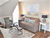 Wohnzimmer: 2 Beistelltische, 2 Sessel, 3 Tischlampen, 4 Plattenherd mit Ceranfeld und Backofen, 6 Stühle, Anrichte, Couchtisch, Dunstabzugshaube, Eierkocher, Esstisch, Flachbildschirm, Gefrierschrank mit 2 Schubladen, Geschirr, Handmixer, Kaffeemaschine, Kochtöpfe, Küchenzeile, Kühlschrank, Mikrowelle, Sat-TV, Schlafcouch, Spülmaschine, Toaster, Waage, Wasserkocher