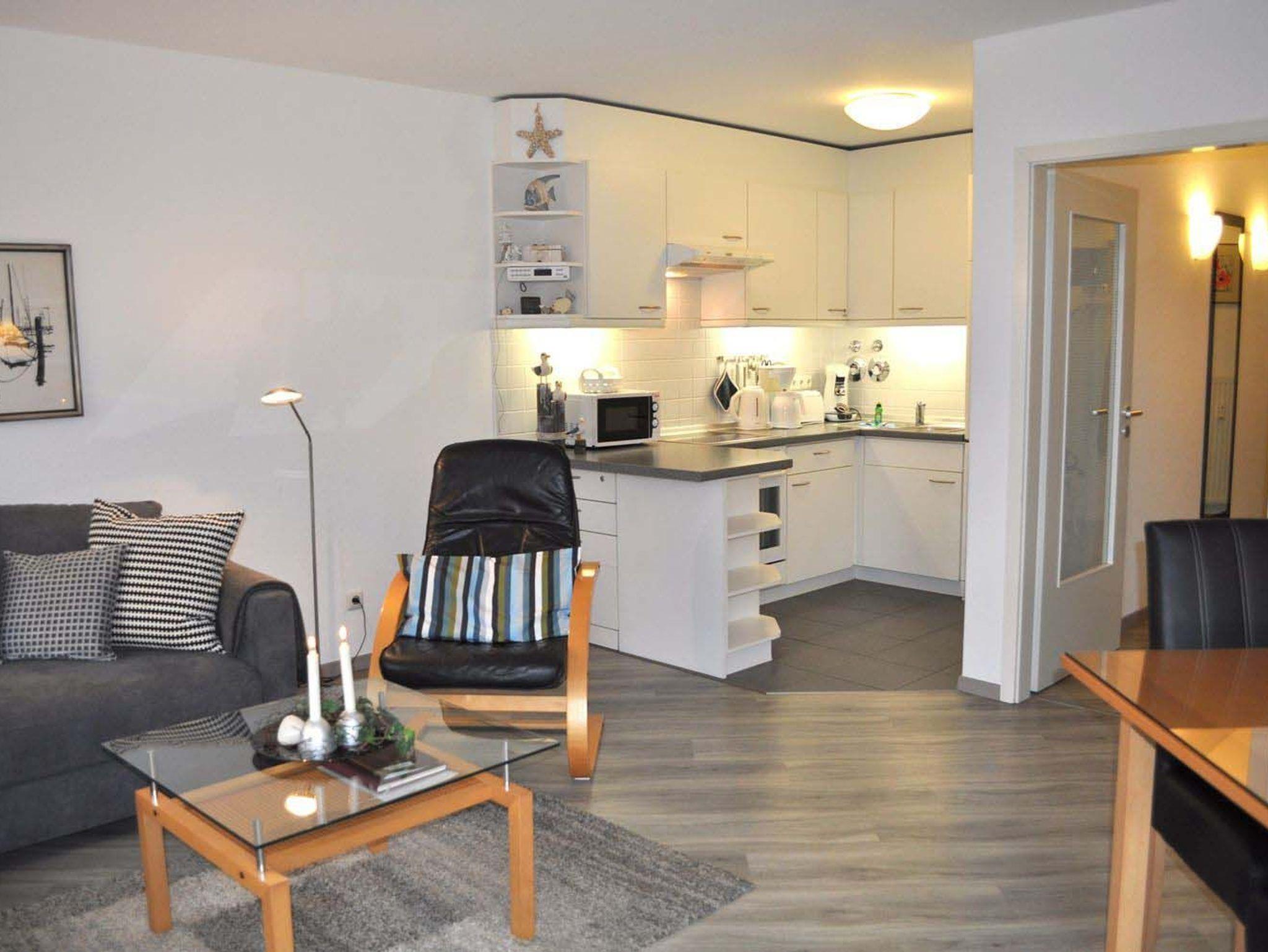 Die gemütliche, geschmackvoll eingerichtete Ferienwohnung befindet sich im Erdgeschoss in naher Strandlage. Die Ferienwohnung hat eine Wohnfläche von ca. 58 qm, eine offene Küche zum Wohnraum. Die Terrasse ist mit Tisch und Stühlen ausgestattet. Für die Kleinen gibt es einen Spielplatz in der Appartementanlage. Zum Strand sind es nur 50 m, Sie müssen keine Straße überqueren. Die zentrale Lage ist der ideale Ausgangspunkt für schöne Ausflüge zum idyllischen Hafen oder weiter Richtung Timmendorfer Strand u.a. mit dem Sealife Center oder der Ostsee Therme. Travemünde können Sie zu Fuß oder mit dem Fahrrad entlang dem nahegelegenen Brodtener Steilufer erreichen. Der Maritim-Golfplatz mit wunderschönen 27 Löchern ist mit dem PKW nur 5 Minuten entfernt. Weitere schöne Golfplätze befinden sich in der nahen Umgebung