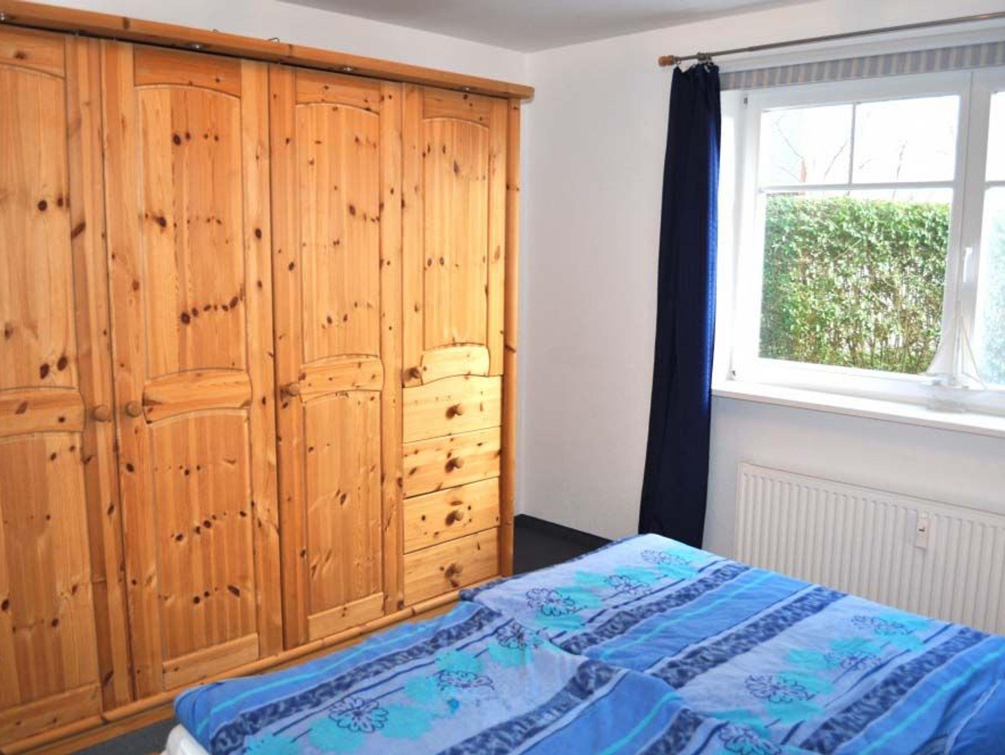 Schlafzimmer 1: 2 Matratzen, 2 Nachttische, Bügelbrett, Bügeleisen, Doppelbett 2,00 x 1,80 m, Kleiderschrank, Korbstuhl, Staubsauger