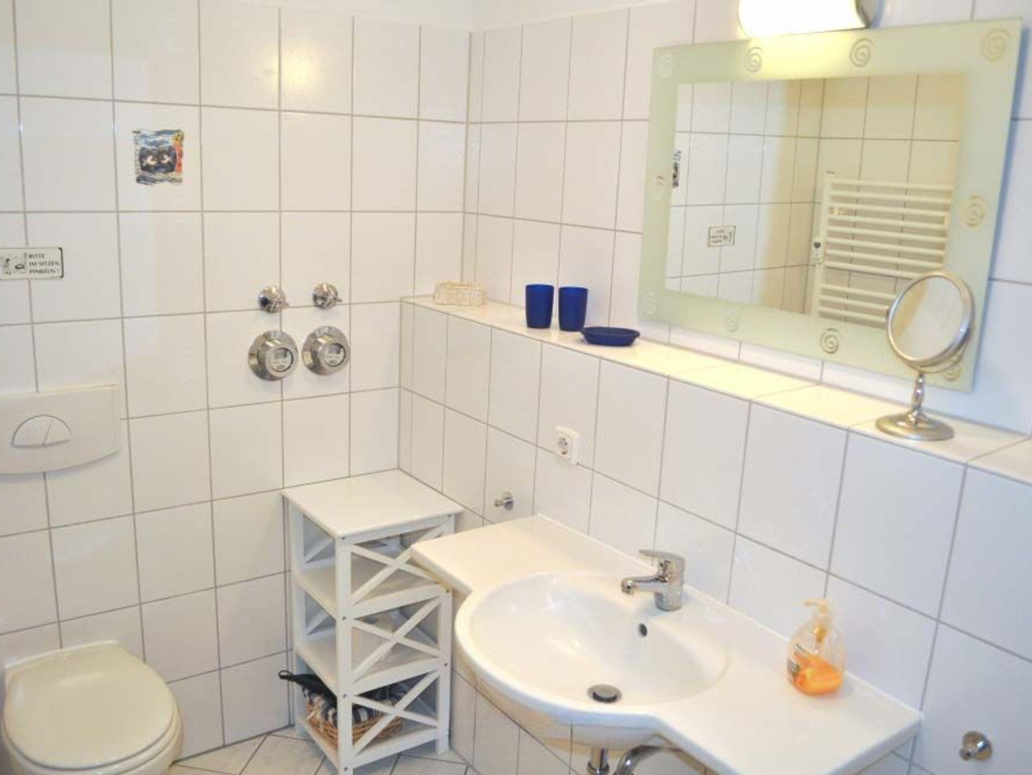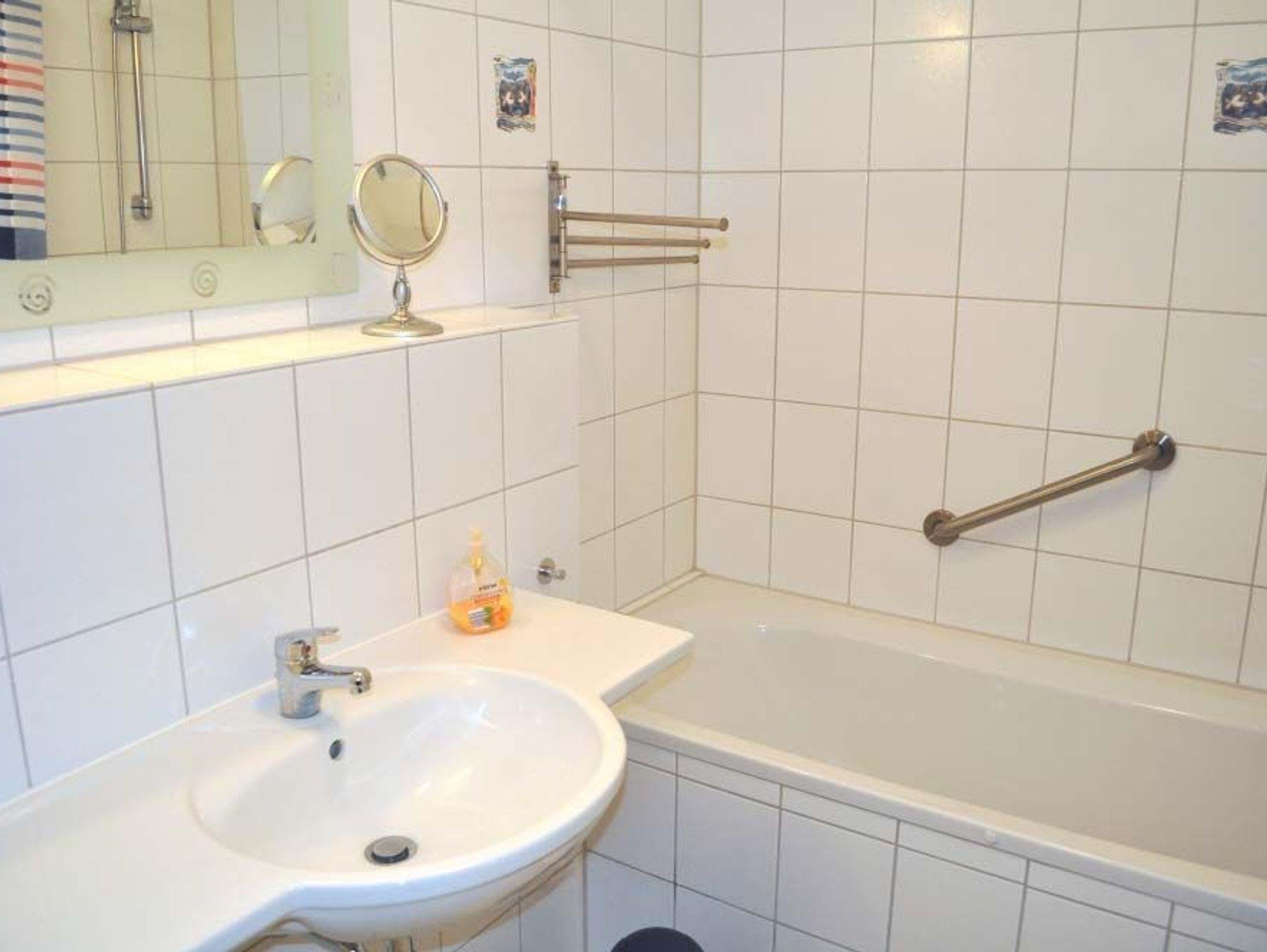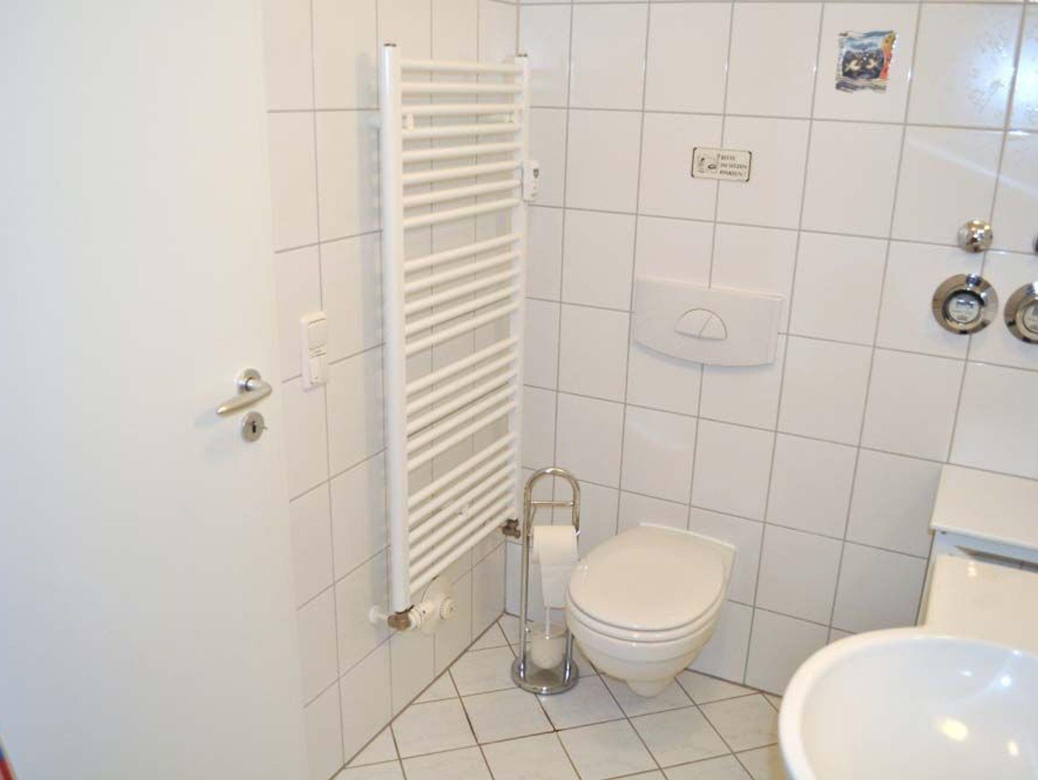 Bad 1: Badewanne, Fön, Fussbodenheizung, Handtuchheizung, Kosmetikspiegel, Regal, Spiegel, Waschtisch, WC