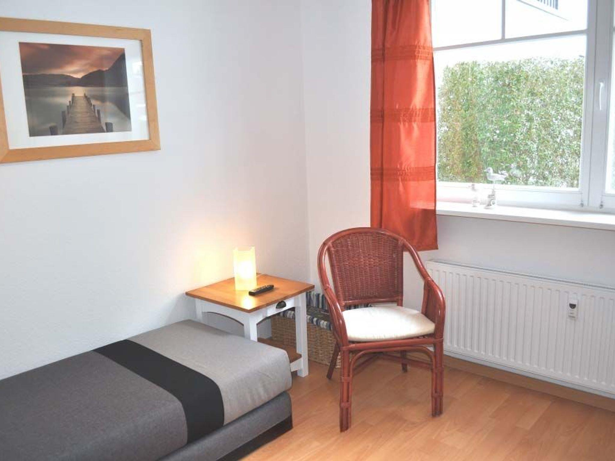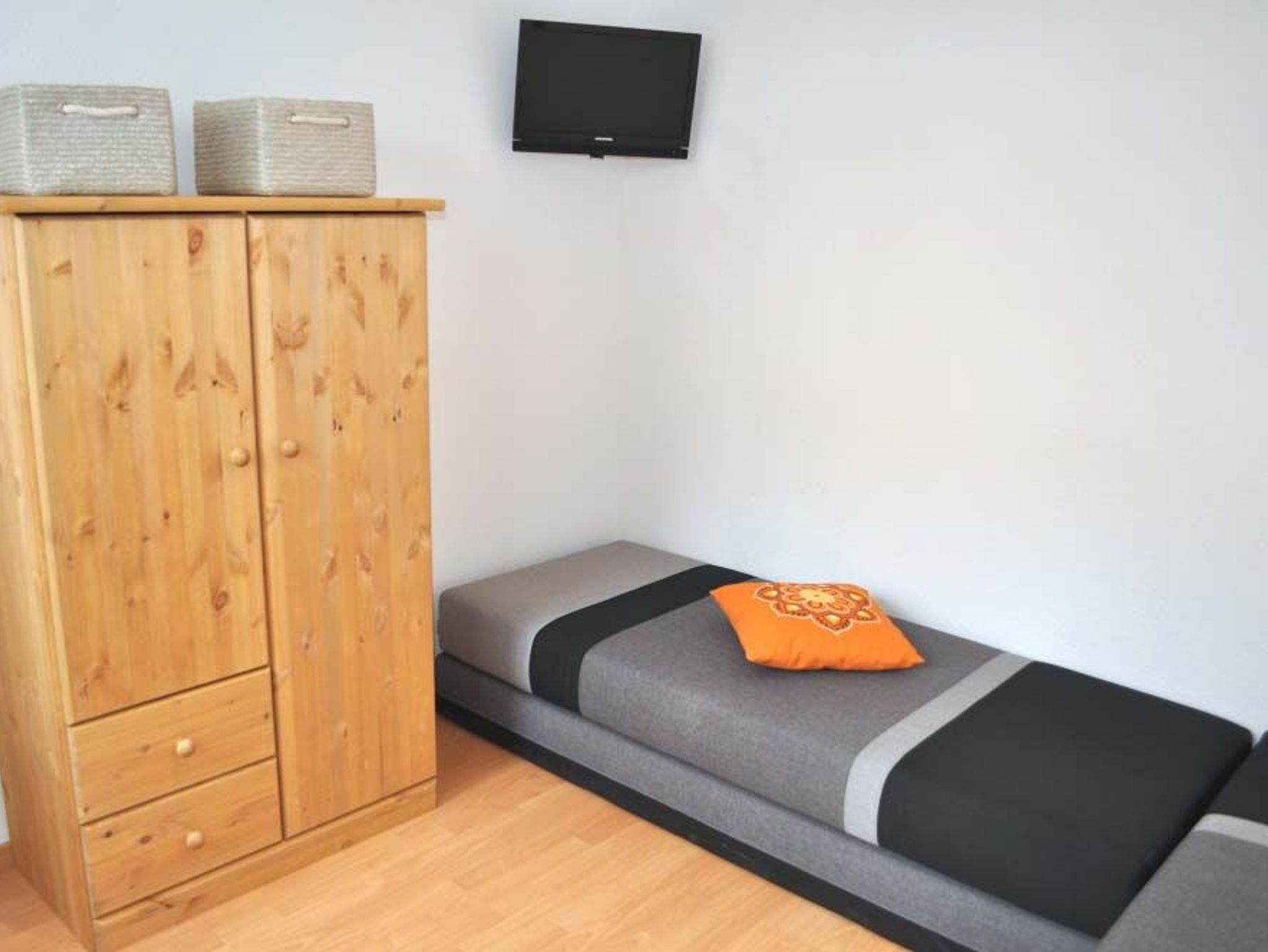 Schlafzimmer 2: 2 Schlafliegen 2,00 x 0,80 m, Flachbildschirm, Kabel-TV, Kleiderschrank, Korbstuhl, Nachttisch
