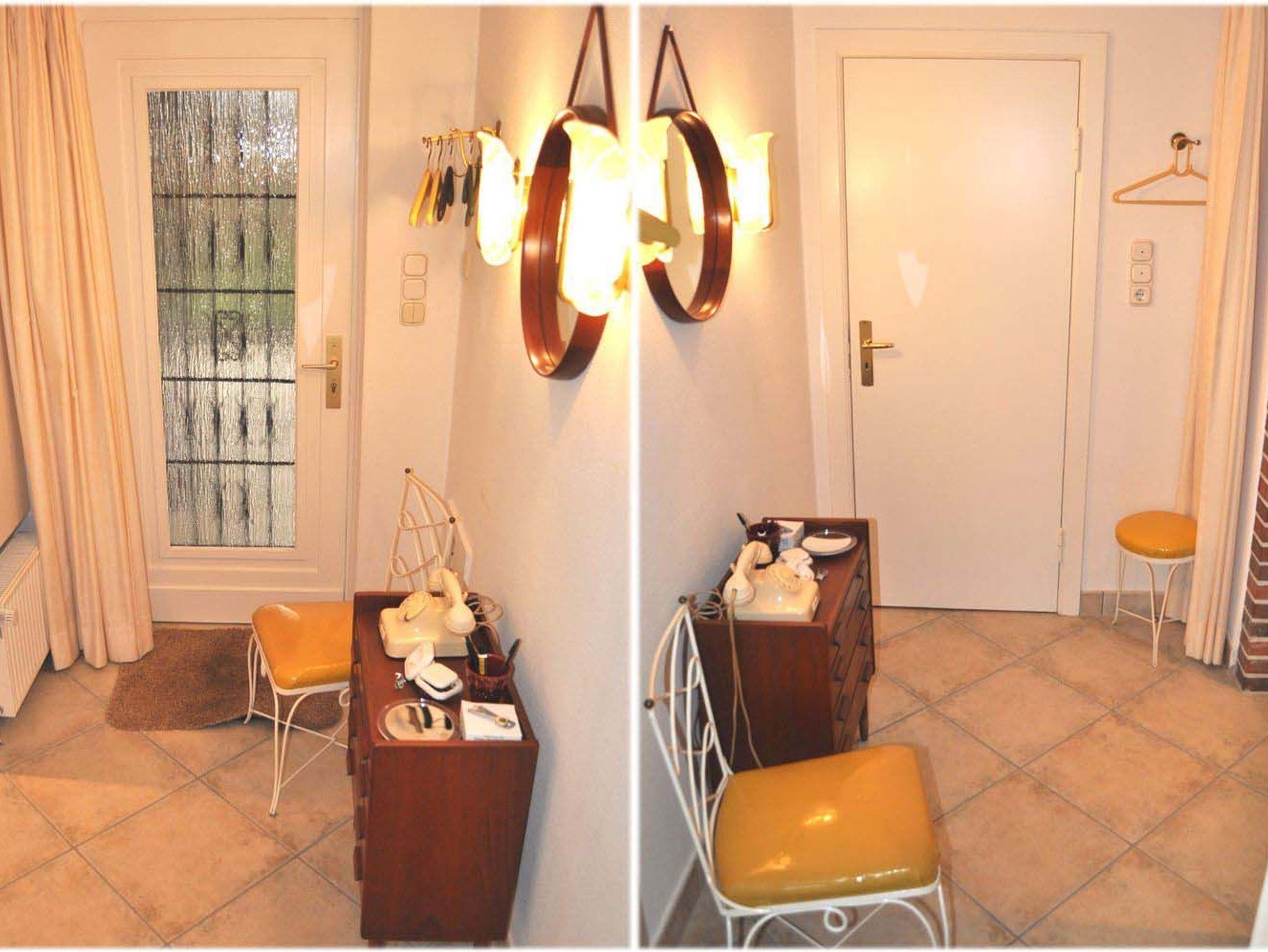 Flur: Garderobe, Hocker, kleiner Schrank, Spiegel, Stuhl