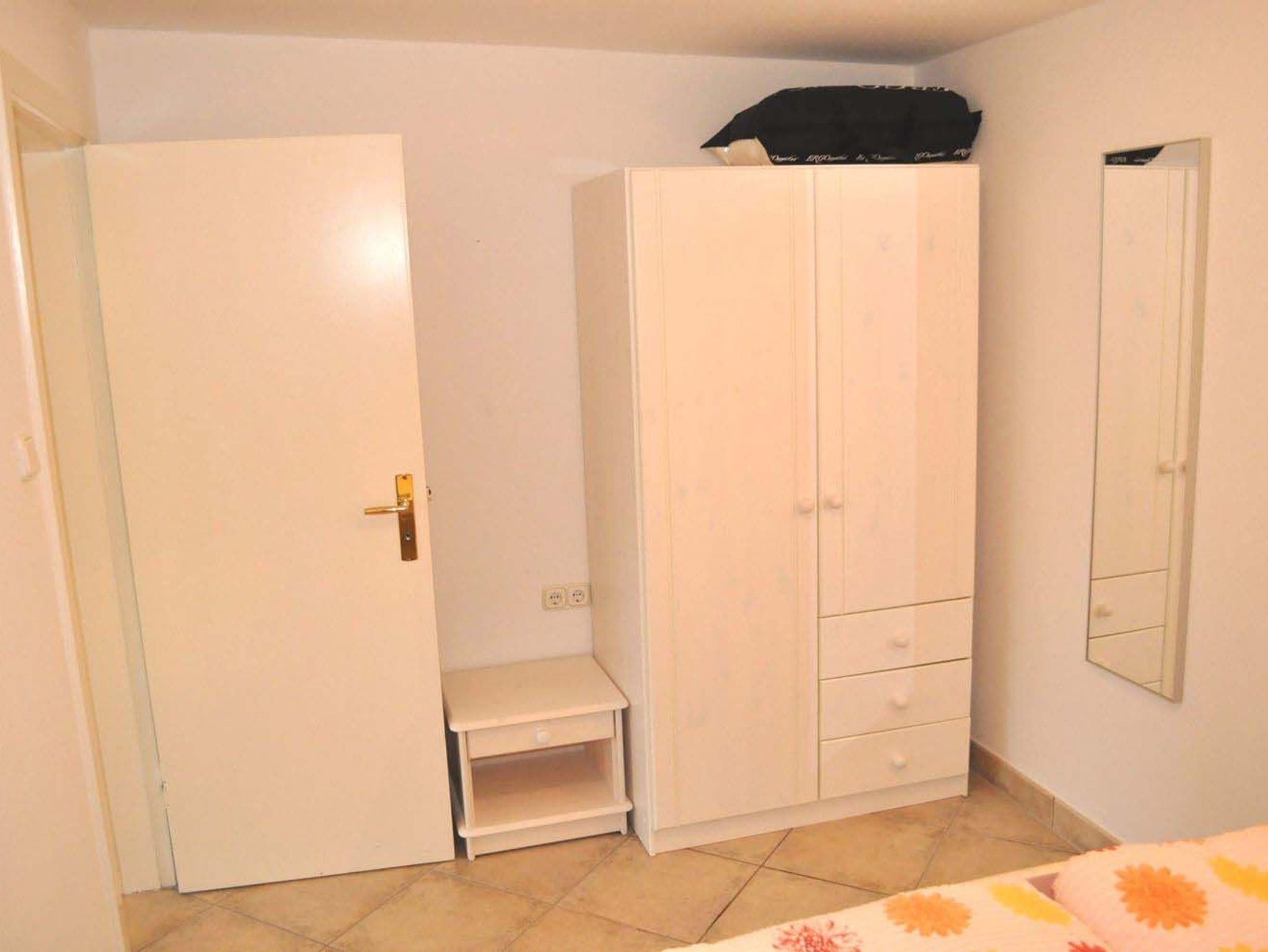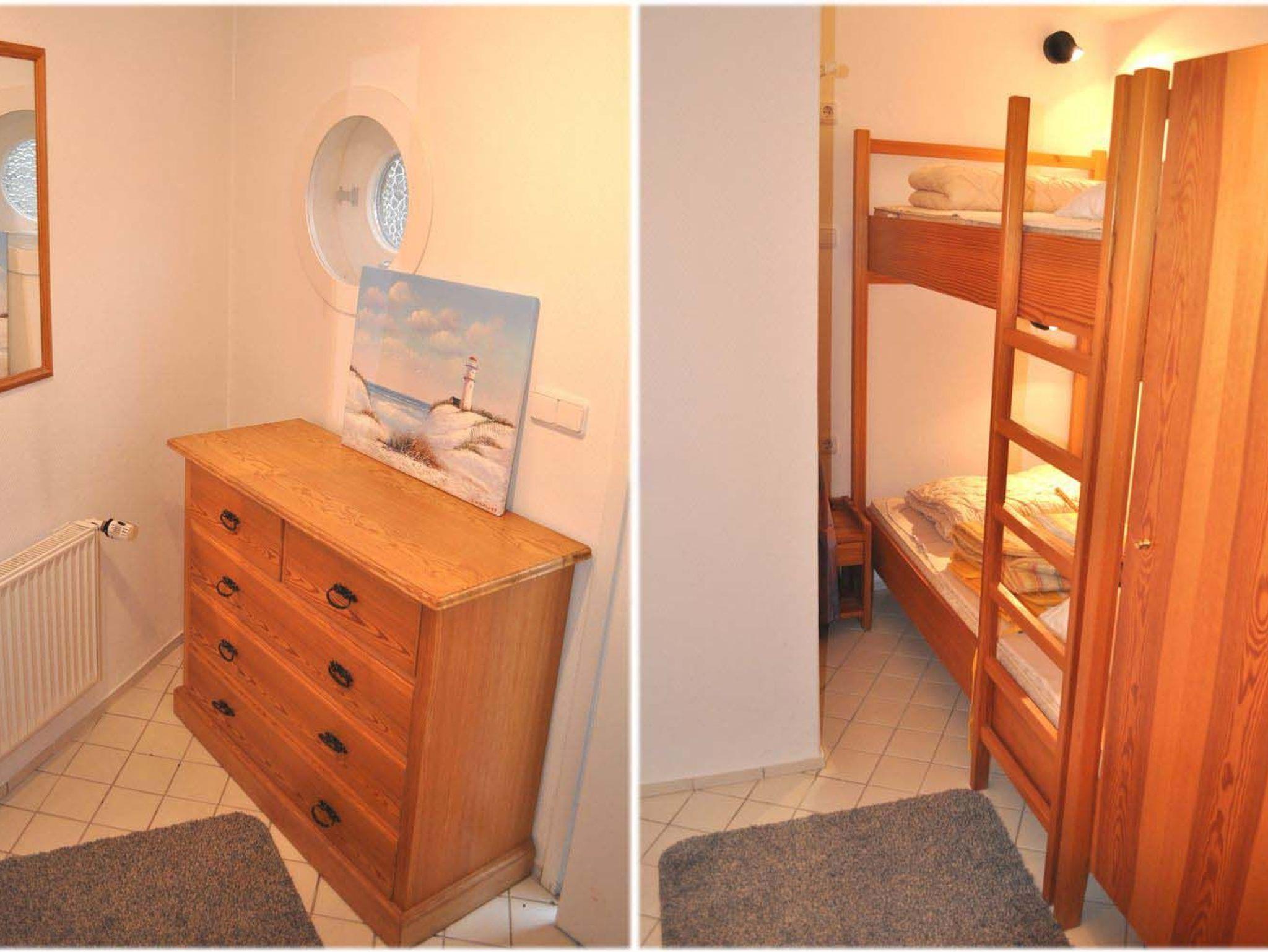 Schlafzimmer 3: Anrichte, Etagenbett, Kleiderhängeecke, Kleiderschrank, Nachttisch, Schlafzimmer ist nur von aussen zugänglich, Spiegel