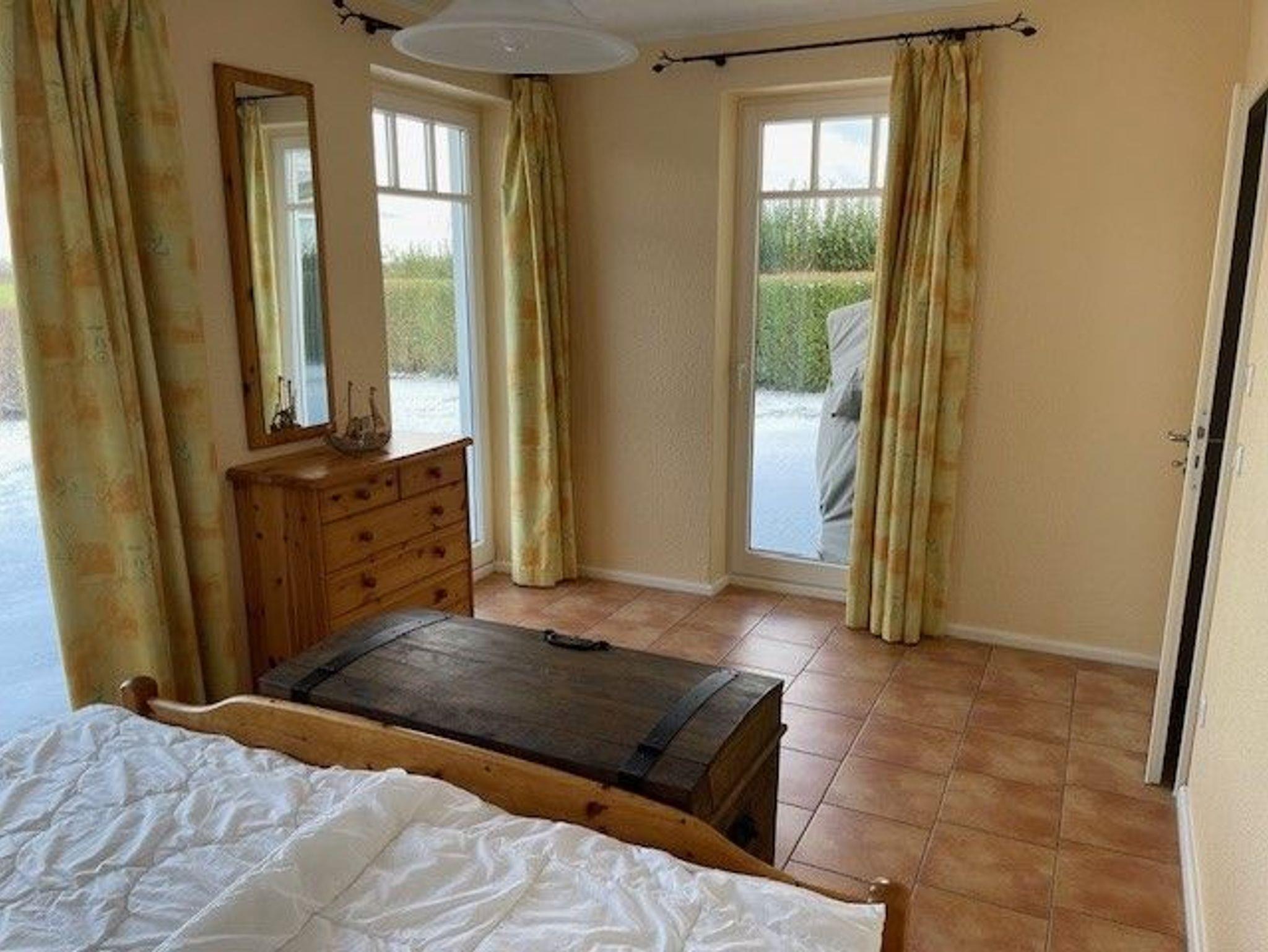 • Ein separates Schlafzimmer mit bequemem Doppelbett und Zugang zur Terrasse.