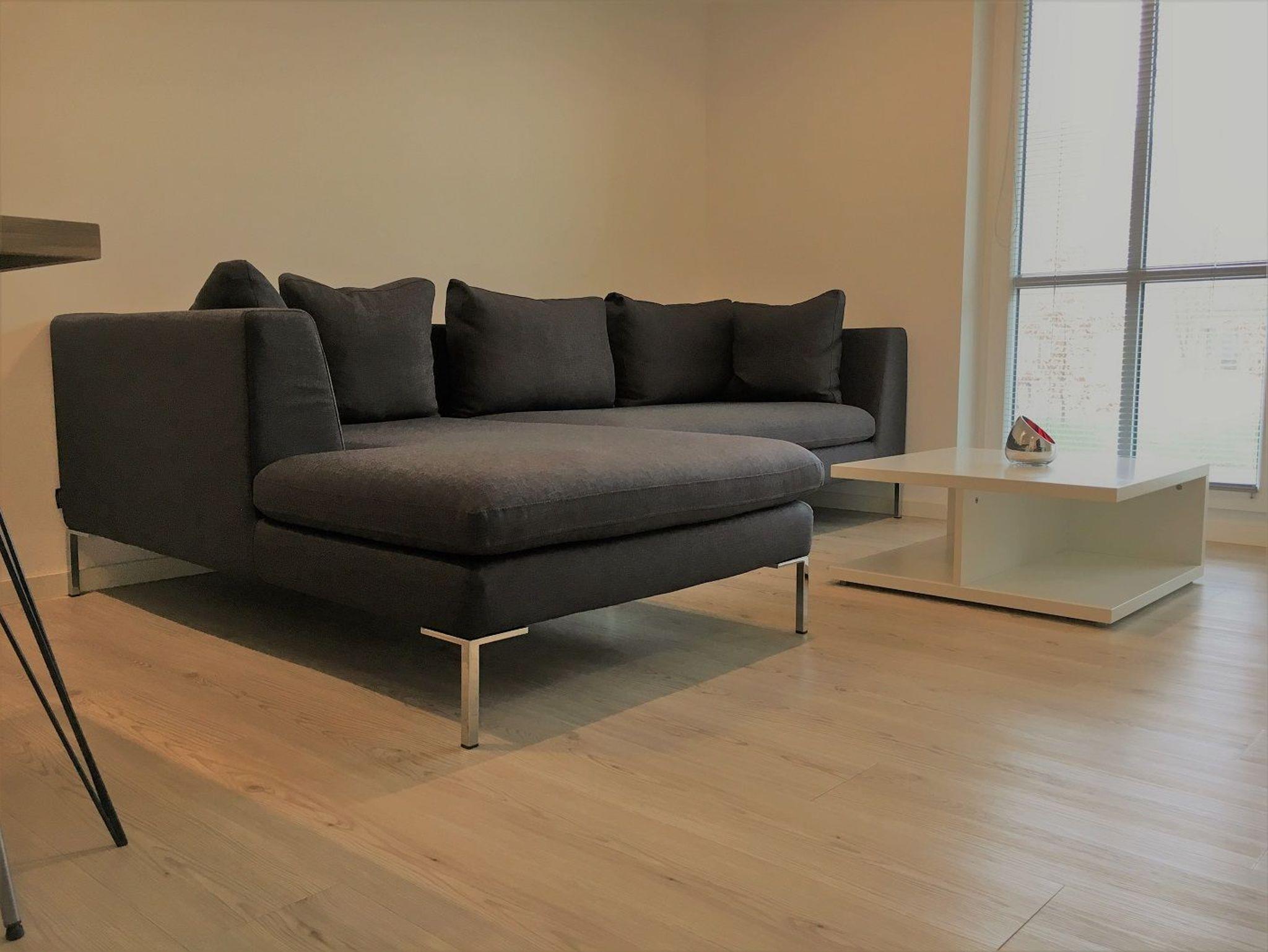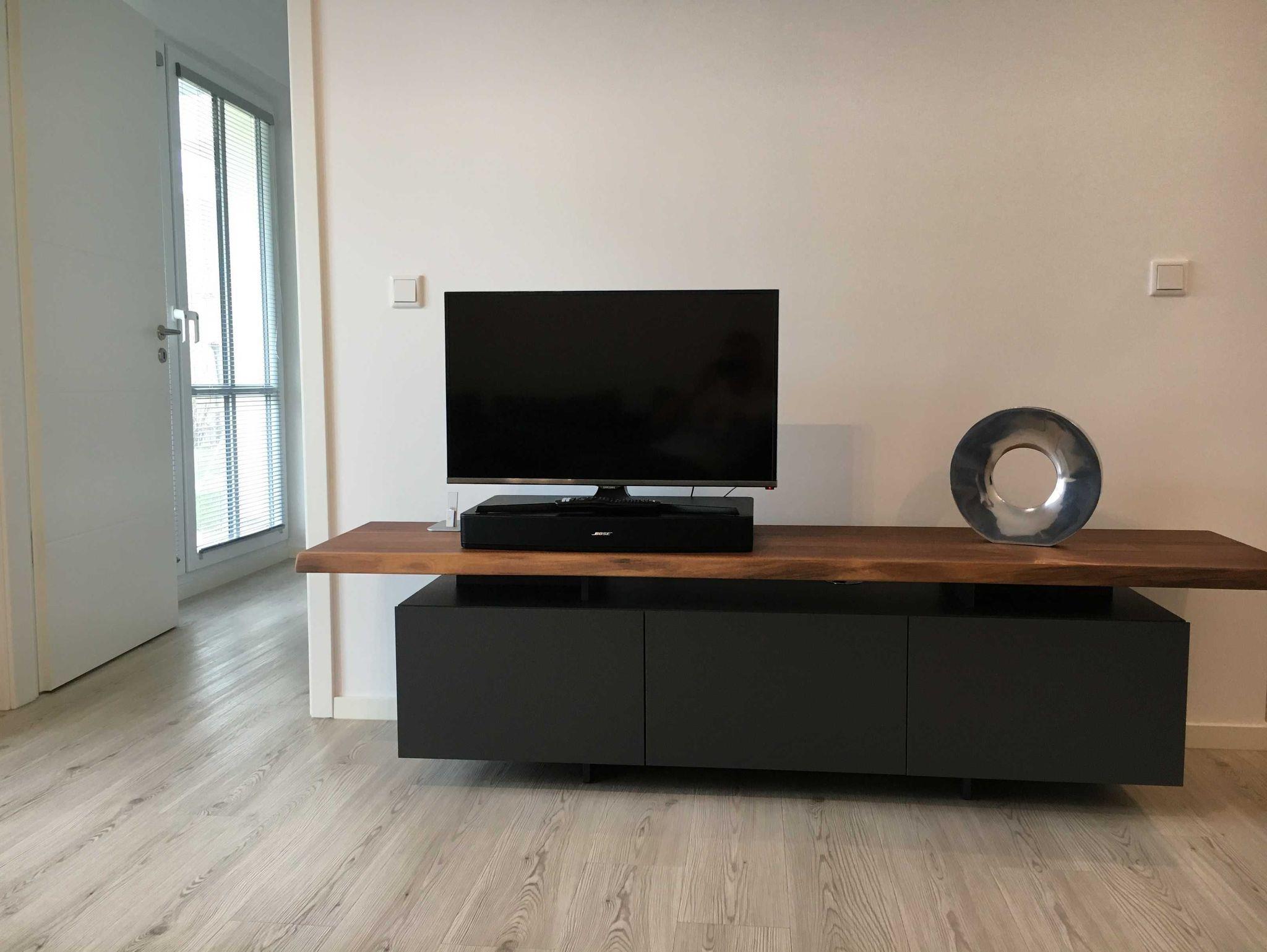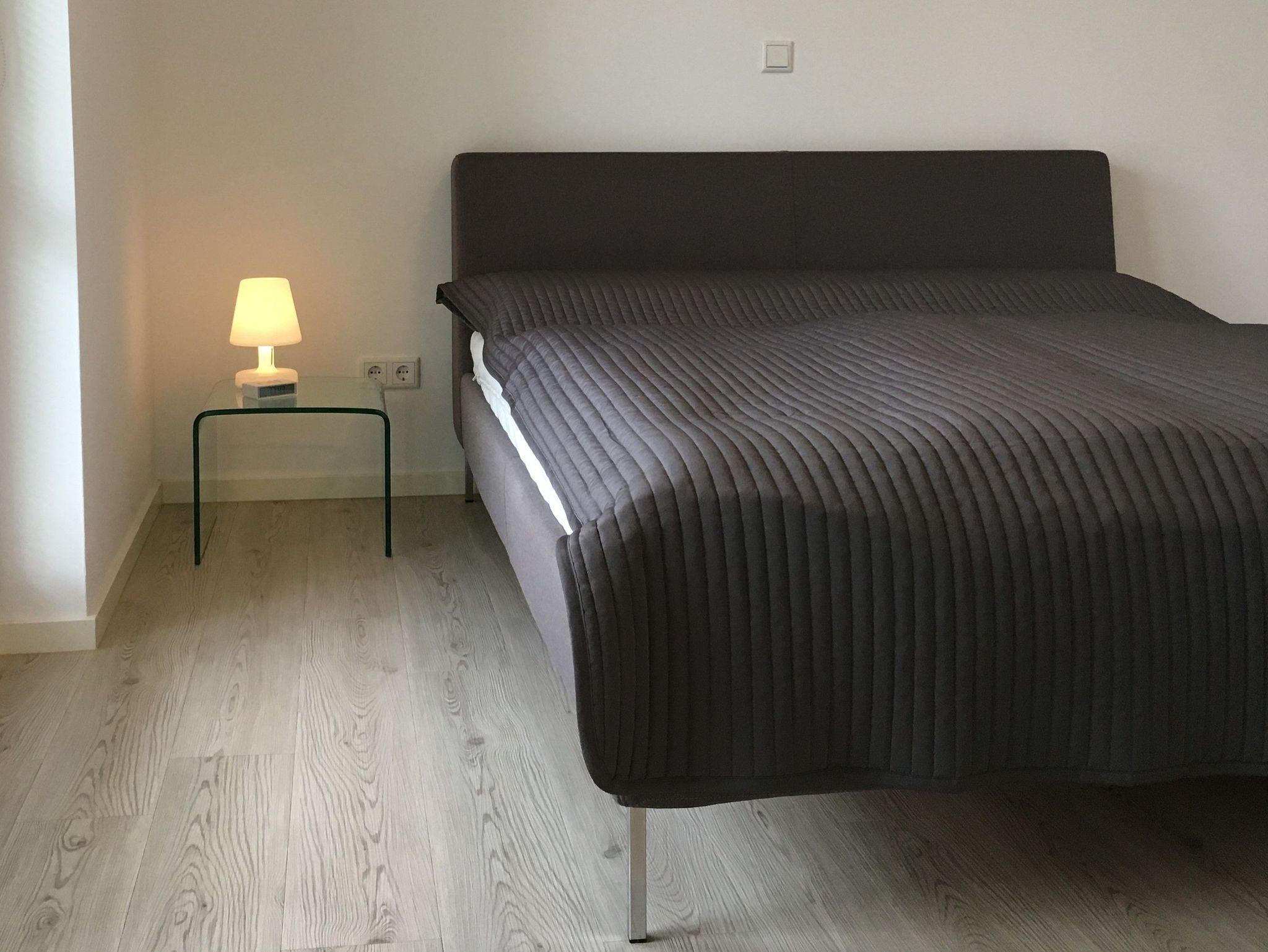 Im Wohnzimmer finden Sie eine schicke Couch 70x200, Flatscreen- TV und Musikanlage. Designerbett 160x200 cm (zwei Matratzen 80x80) und Schrank im Schlafzimmer.