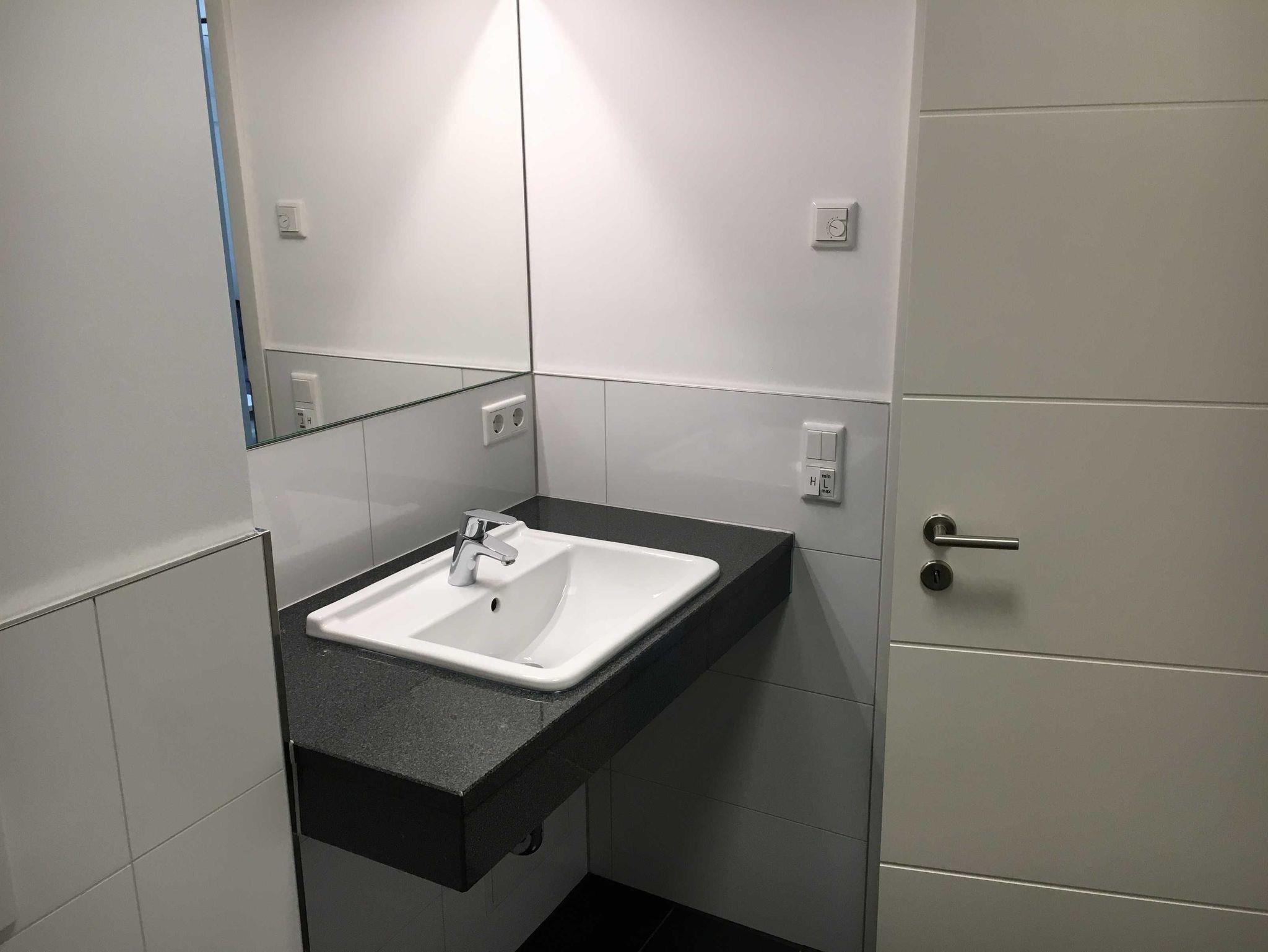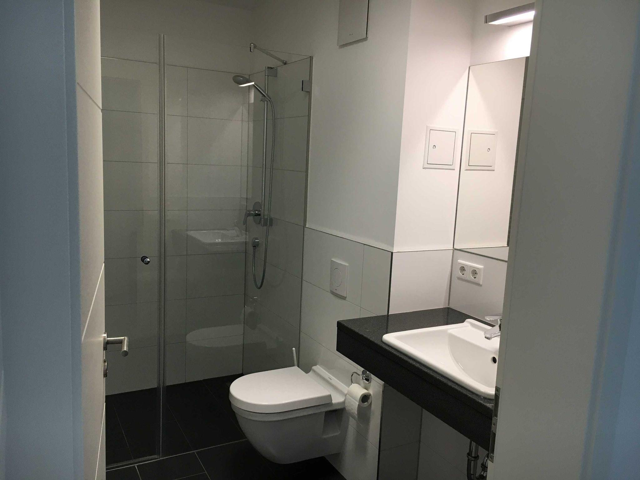 Im Bad ist eine begehbare, ebenerdige Dusche zum Wohlfühlen eingebaut. Haartrockner vorhanden.