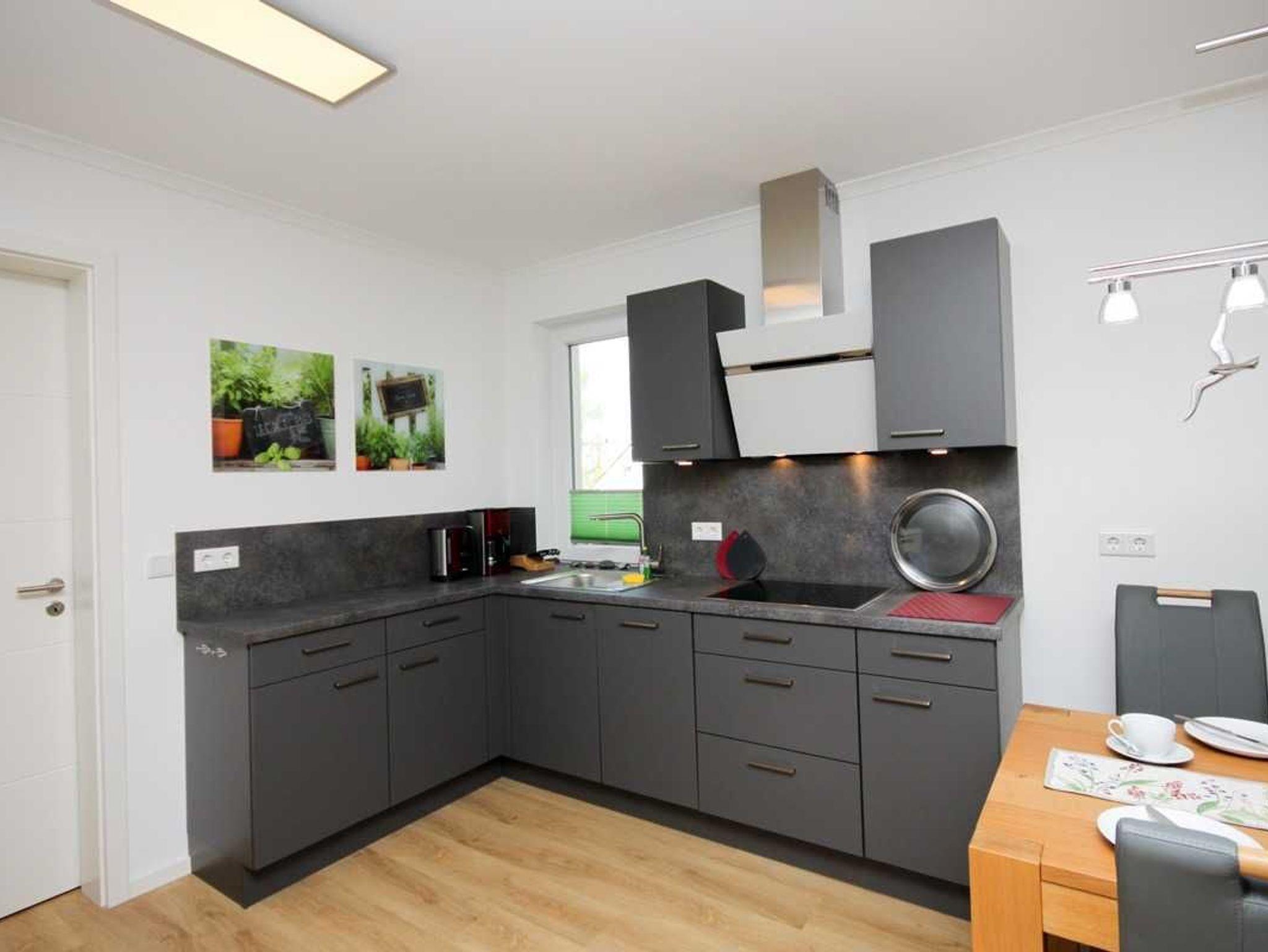 Die exklusive hochmoderne Einbauküche mit Backofen, Mikrowelle, Kühl-Gefrierkombination, Geschirrspüler sowie großem Glaskeramikkochfeld mit Dunstabzugshaube lässt keine Wünsche offen. Weitere Küchengeräte wie Wasserkocher ,Toaster, Kaffeemaschine, Handmixer, Pürierstab etc. sind selbstverständlich vorhanden.