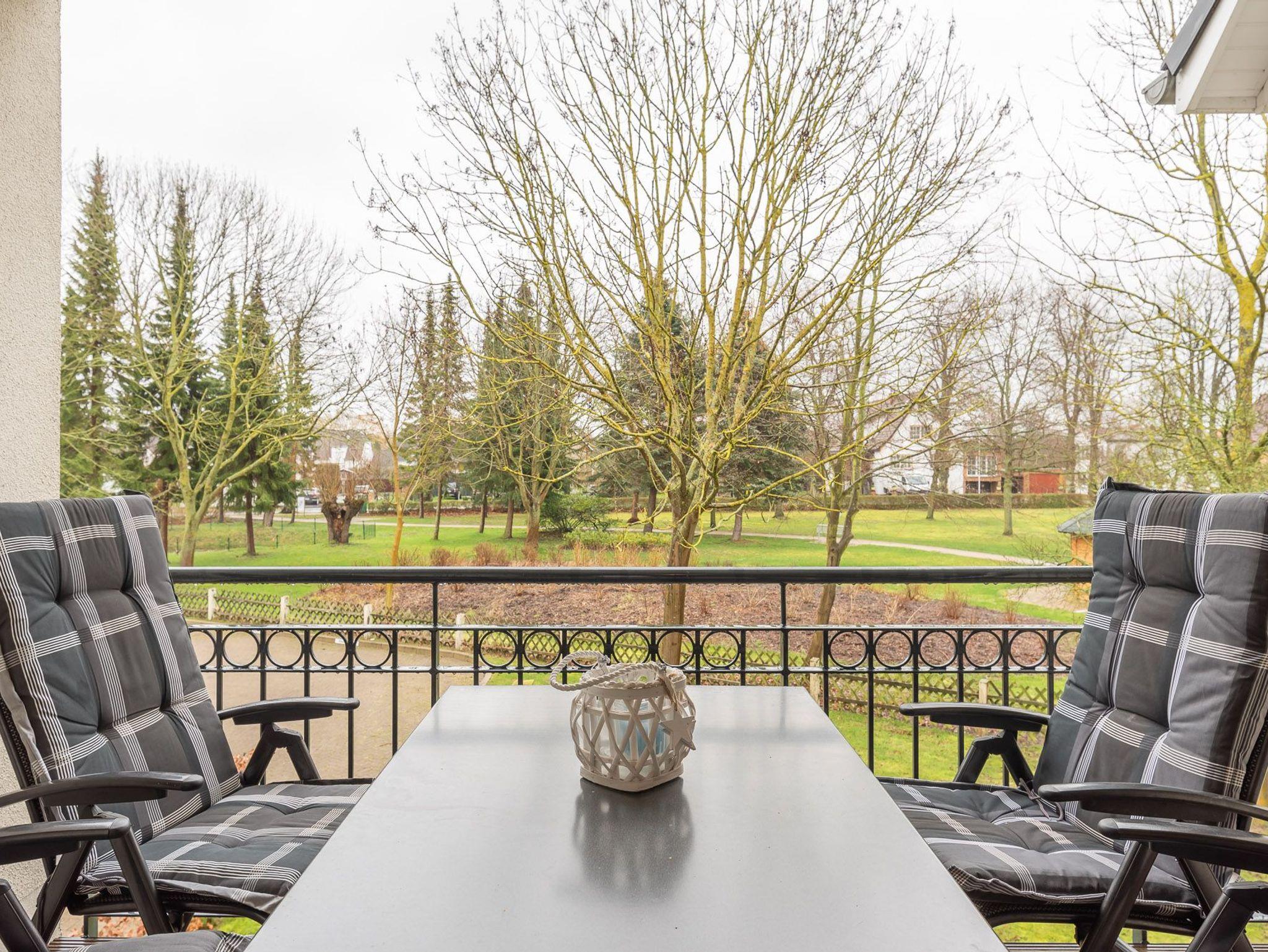 Gemütliche Stunden können Sie auf den mit einem Tisch und vier Relaxstühlen möblierten Balkon, den Sie sowohl vom Schlafzimmer als auch vom Wohnzimmer aus betreten können, verbringen.