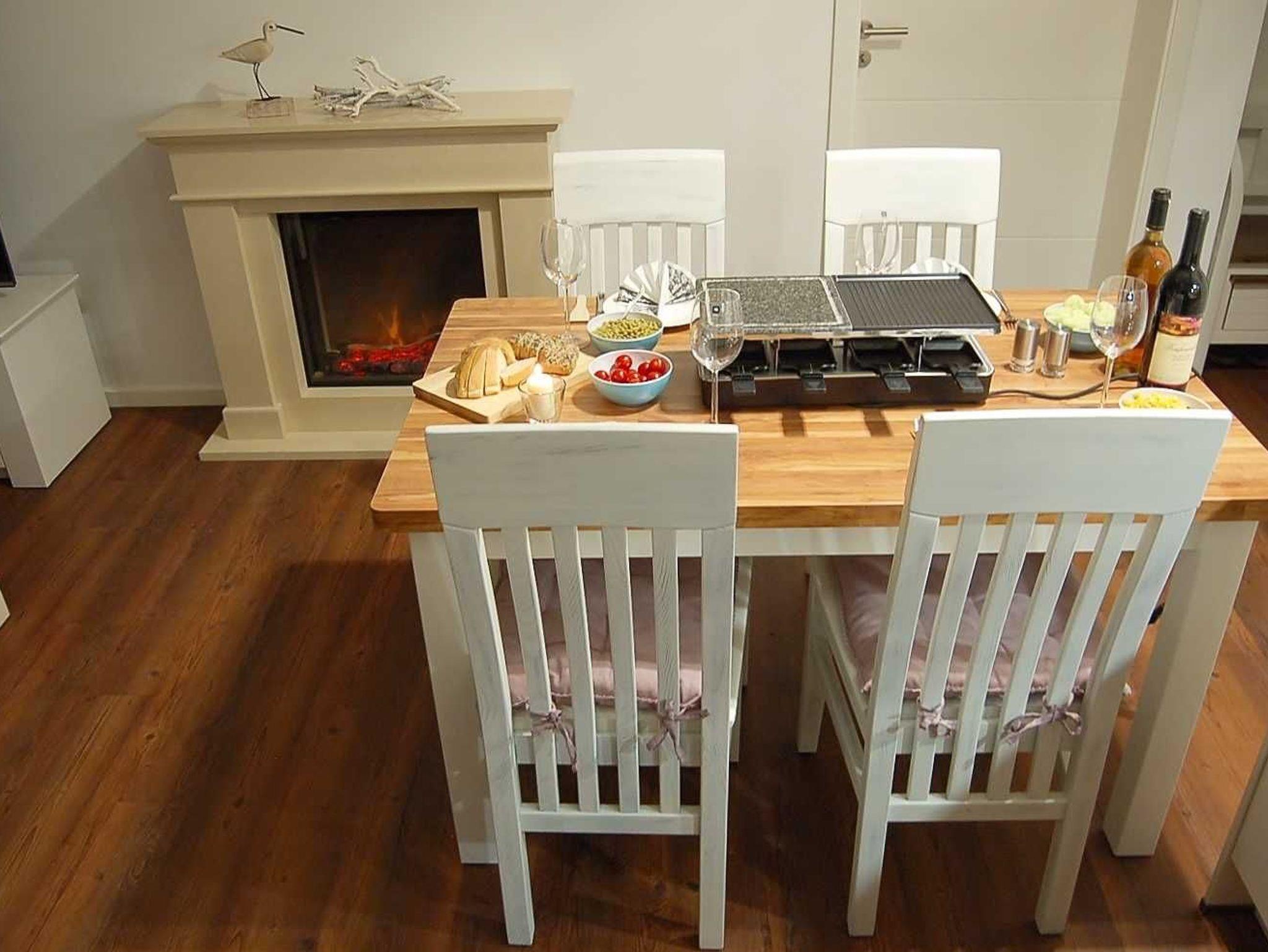 Für Spaß und Unterhaltung sorgen in allen drei Räumen große Flachbildschirm-Fernseher und ein zusätzlicher DVD-Spieler im Wohnbereich mit einem attraktiven DVD-Archiv. An Herbst- und Wintertagen sorgt, neben der in allen Räumen verlegten Fußbodenheizung, ein moderner Elektro-Kamin für Wärme und Gemütlichkeit.