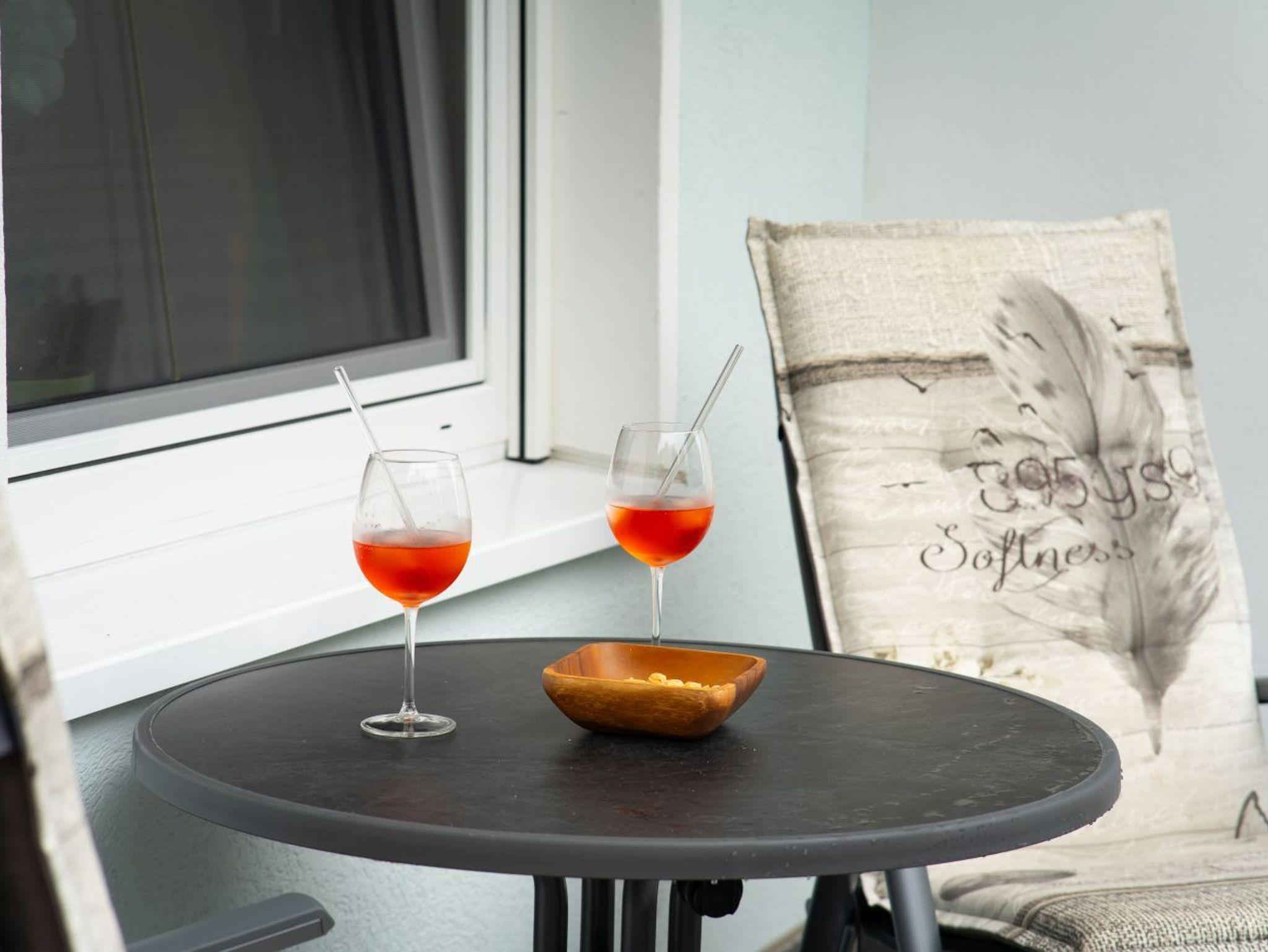 Zum Verweilen und Wohlfühlen stehen Ihnen neben Schlaf- und Wohnzimmer auch ein großer Balkon mit Sitzmöglichkeiten zur Verfügung. Genießen Sie von hier den Moment wenn die Sonne im Gespensterwald baden geht.