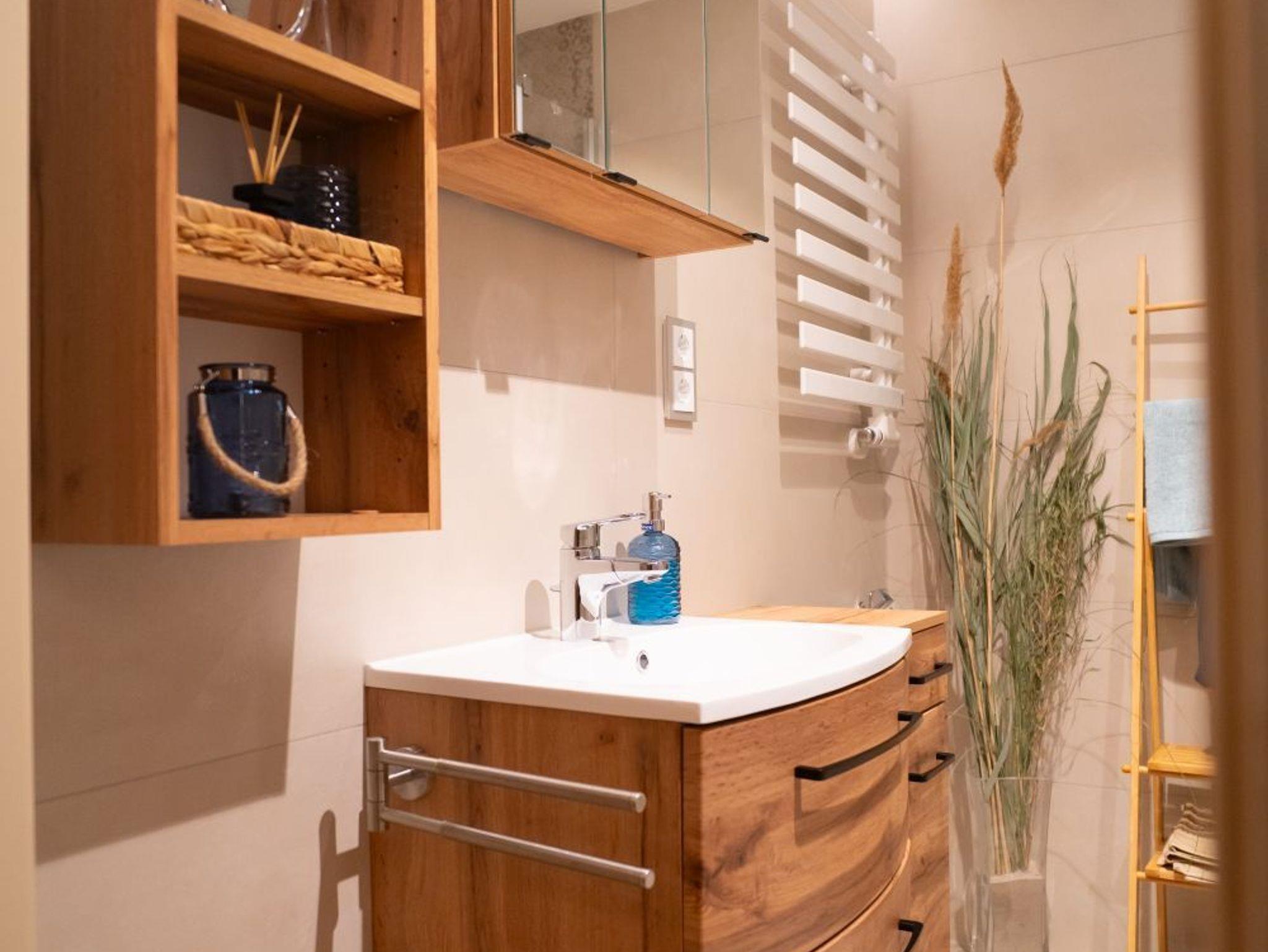Die aktuelle multimediale Ausstattung mit Fernseher (inkl. Internetanschluss) und Soundbar lässt auch bei einem regnerischen Tag keine Wünsche offen. In der angeschlossenen Küche wird es Ihnen an nichts fehlen. Die moderne Küchenausstattung (Kühl- und Gefrierkombination, Induktionskochherd, Backofen, Mikrowelle, Geschirrspüler) hilft beim Zaubern so mancher Leckerei, freut sich aber auch Ihnen beim Frühstück behilflich zu sein. Das Badezimmer ist gemütlich und barrierefrei mit einer ebenerdigen, großen Dusche ausgestattet.