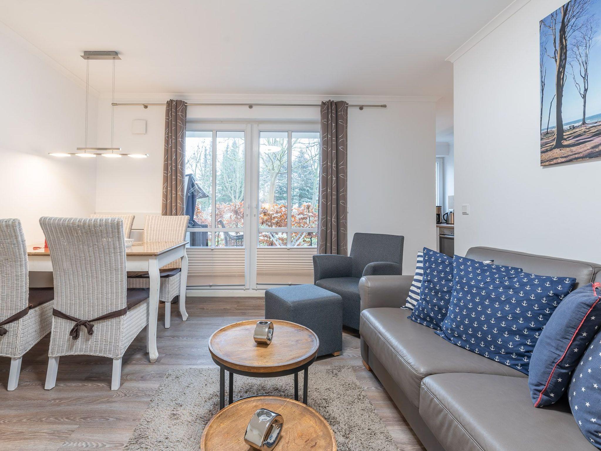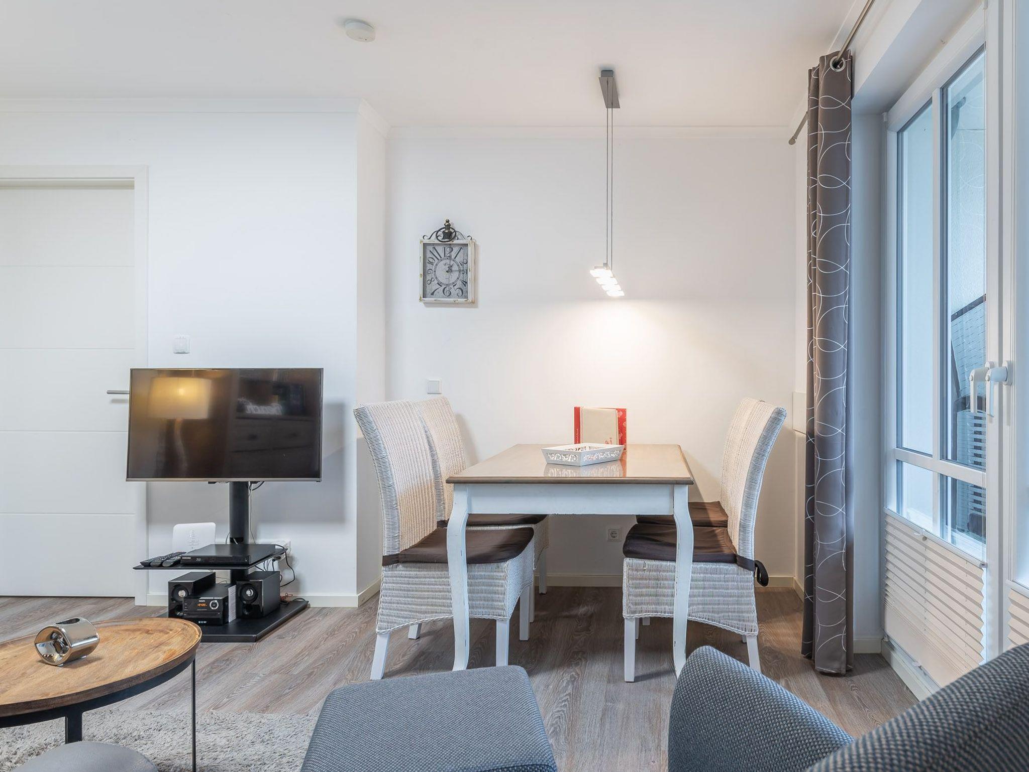Die 2-Zimmer-Ferienwohnung lässt kaum Wünsche offen. Der Wohnbereich verfügt über eine Couch inkl. Sessel, einen Couchtisch, einen Esstisch mit 4 Stühlen sowie einen LED-TV. DVD-Player sowie Stereoanlange gehören ebenfalls zur Ausstattung.