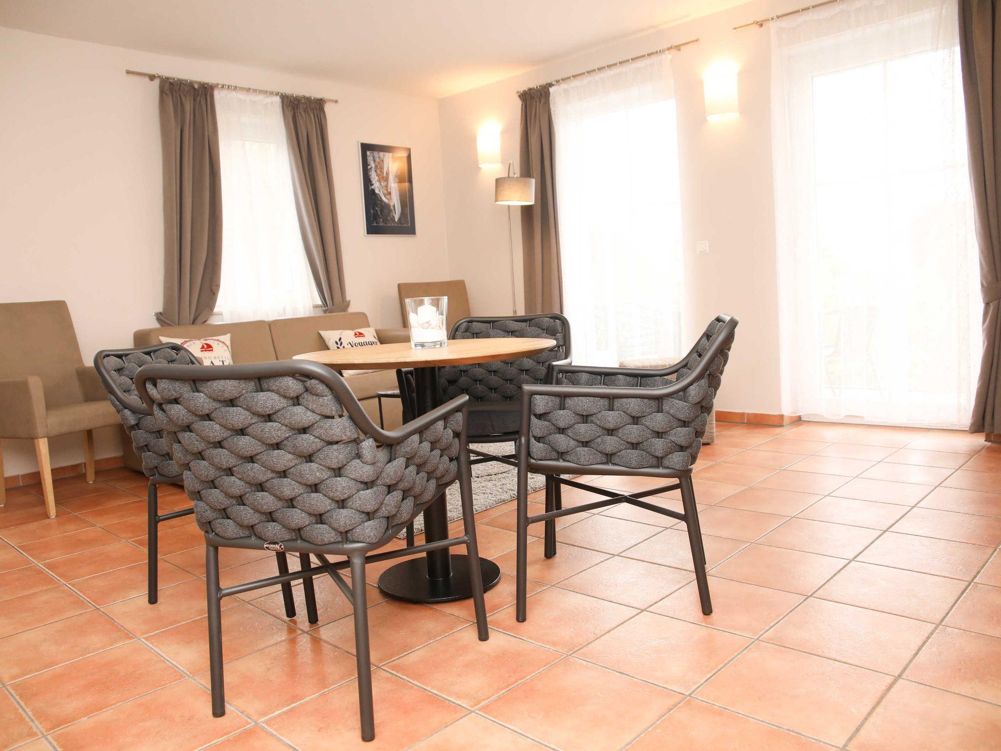 Die Ferienwohnungen sind alle in separate Schlaf- und Wohnbereiche unterteilt. Alle Apartments sind komplett mit Fußbodenheizung und einem Vollbad (außer die behindertenfreundliche Wohnung Nr. 3) ausgestattet und verfügen über einen eigenen Balkon oder eine Terrasse. Teilweise ist in den Wohnungen auch ein Kamin oder ein Whirlpool vorhanden, welche zum Wohlfühlerlebnis beitragen.