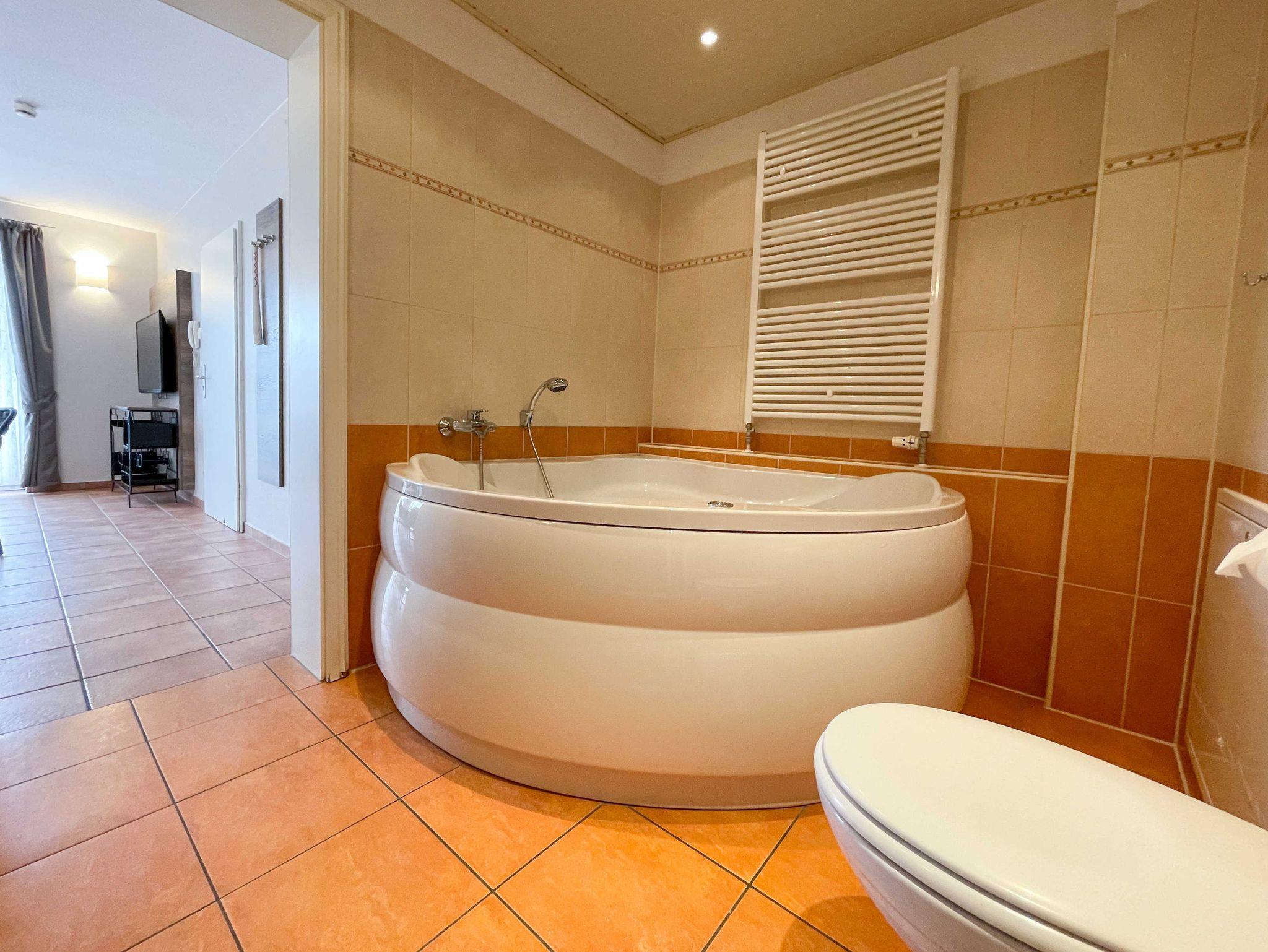 Die Ferienwohnung besteht aus 2 Zimmern und ist ca. 45 m² groß. Die Ferienwohnung verfügt über einen Balkon oder Terrasse, ein Schlafzimmer mit Doppelbett, ein Vollbad mit Whirlpoolbadewanne und Dusche, WC, eine komplett neue hochwertig ausgestattete Einbauküche und ein Doppelschlafsofa im Wohnbereich, sowie Flachbildfernseher. Alle Wohnungen sind komplett mit einer Fußbodenheizung ausgestattet.