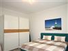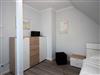 Das gemütliche Schlafzimmer im Türmchen verfügt über ein Boxspring - Doppelbett mit einer durchgehenden Matratze (180x200) und einen geräumigen Kleiderschrank.