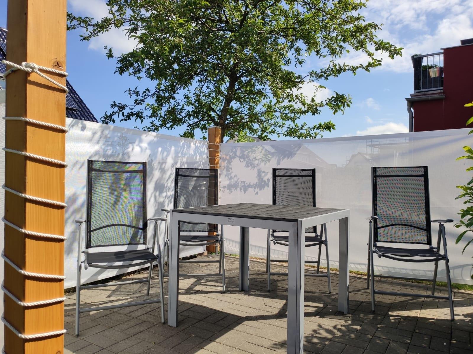 Die zubereiteten Mahlzeiten genießen gemeinsam am neuen Esstisch mit 4 Stühlen und bei Bedarf auch einem Kinderhochstuhl, der kostenfrei genutzt werden kann.