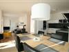 Die hochwertige offene Einbauküche mit großzügigem Esstisch für bis zu 5 Personen ist mit Geschirrspüler, Backofen, Cerankochfeld, Kühlschrank mit Gefrierfach, Kaffeemaschine, Wasserkocher, Toaster etc. ausgestattet und komplett eingerichtet.
