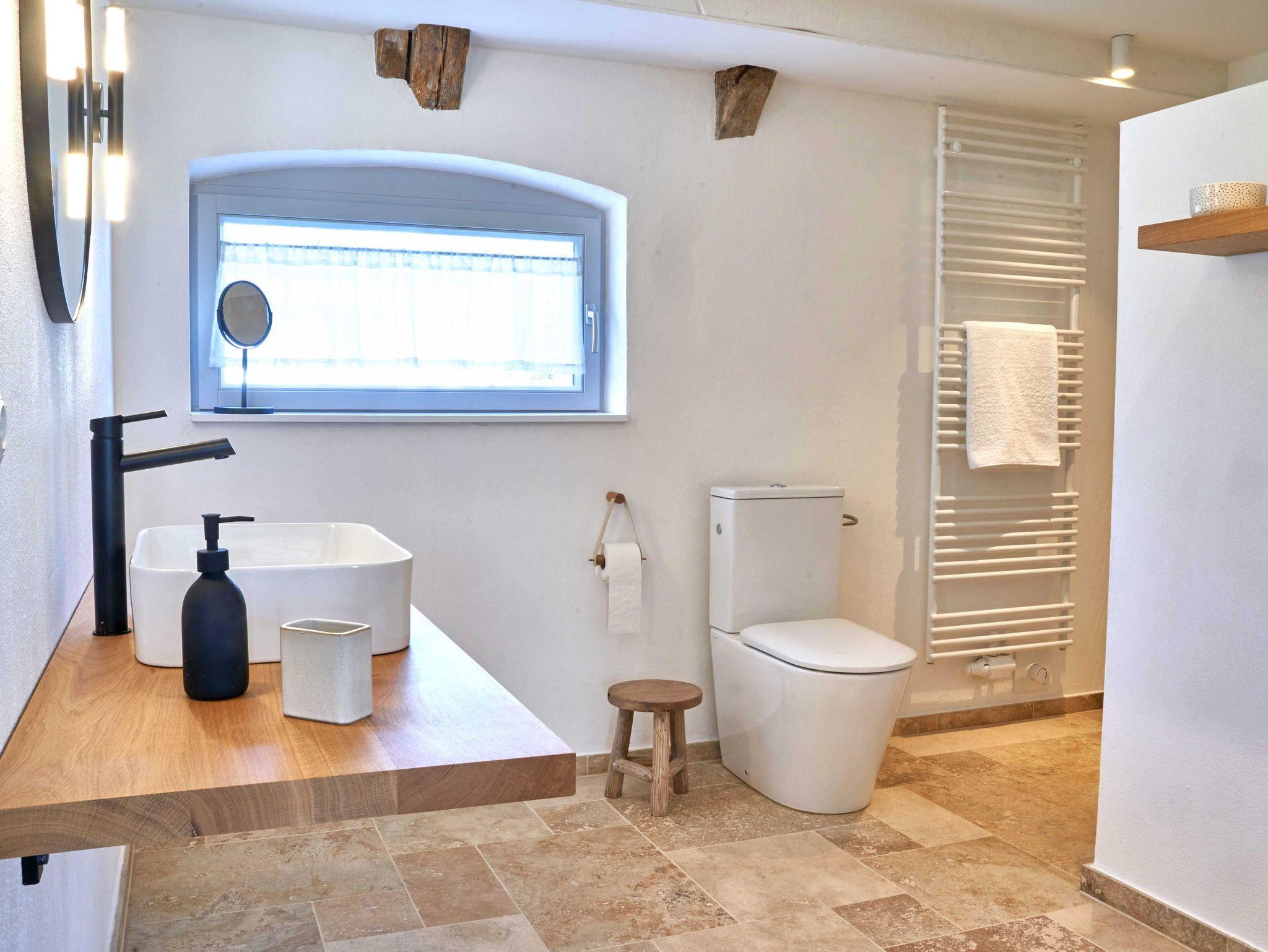 • 2 Duschbäder mit bodengleicher Dusche; Handtücher zu buchbar