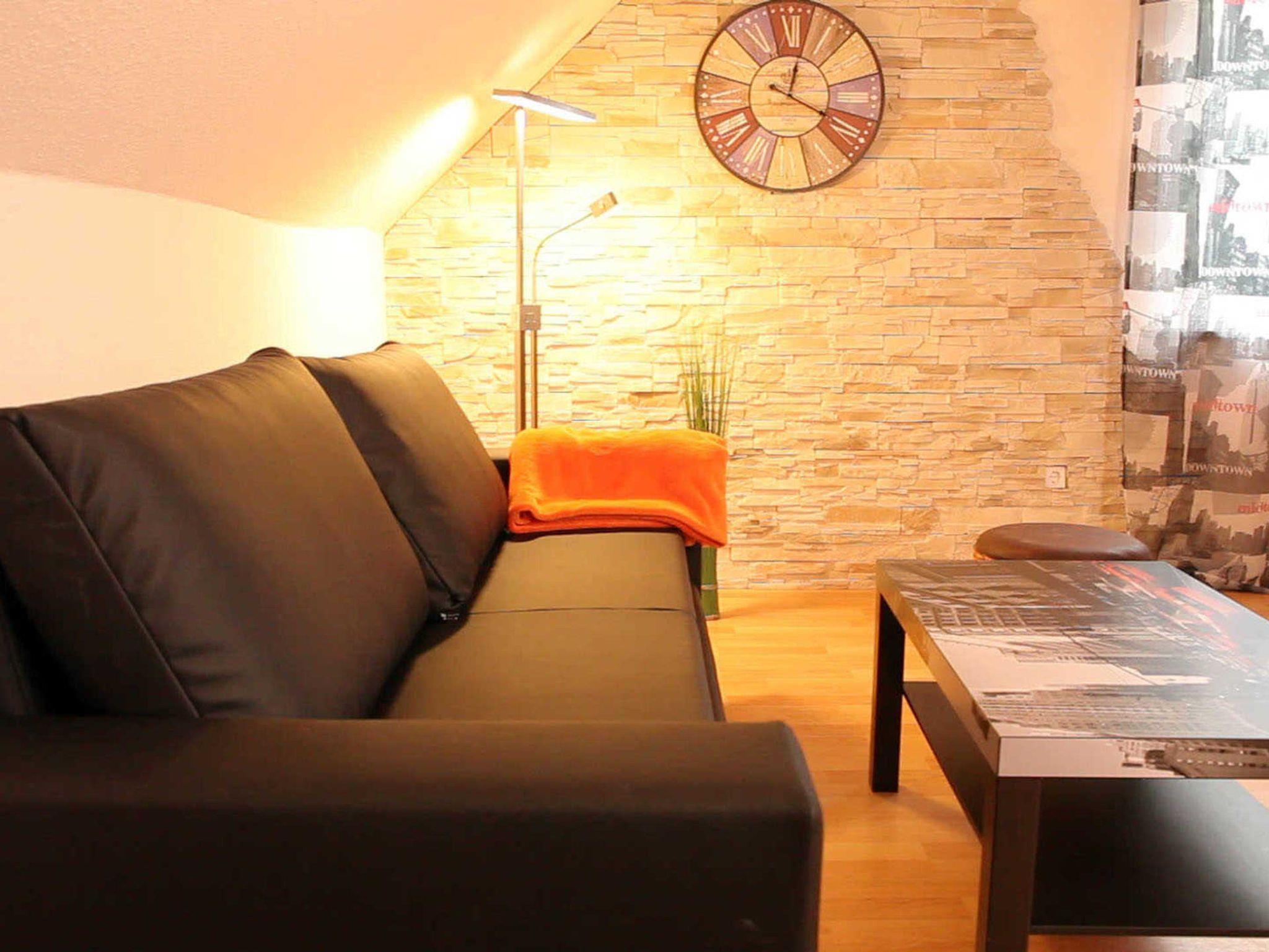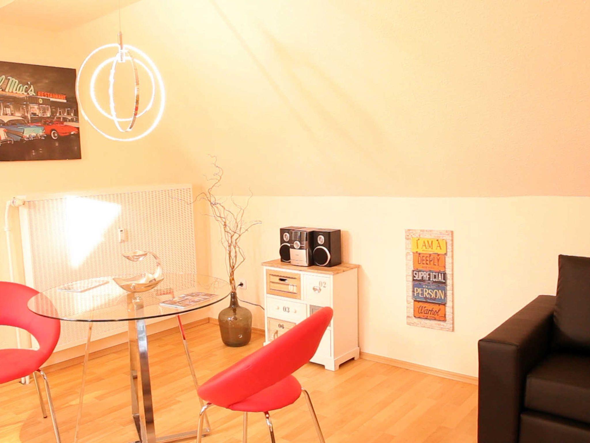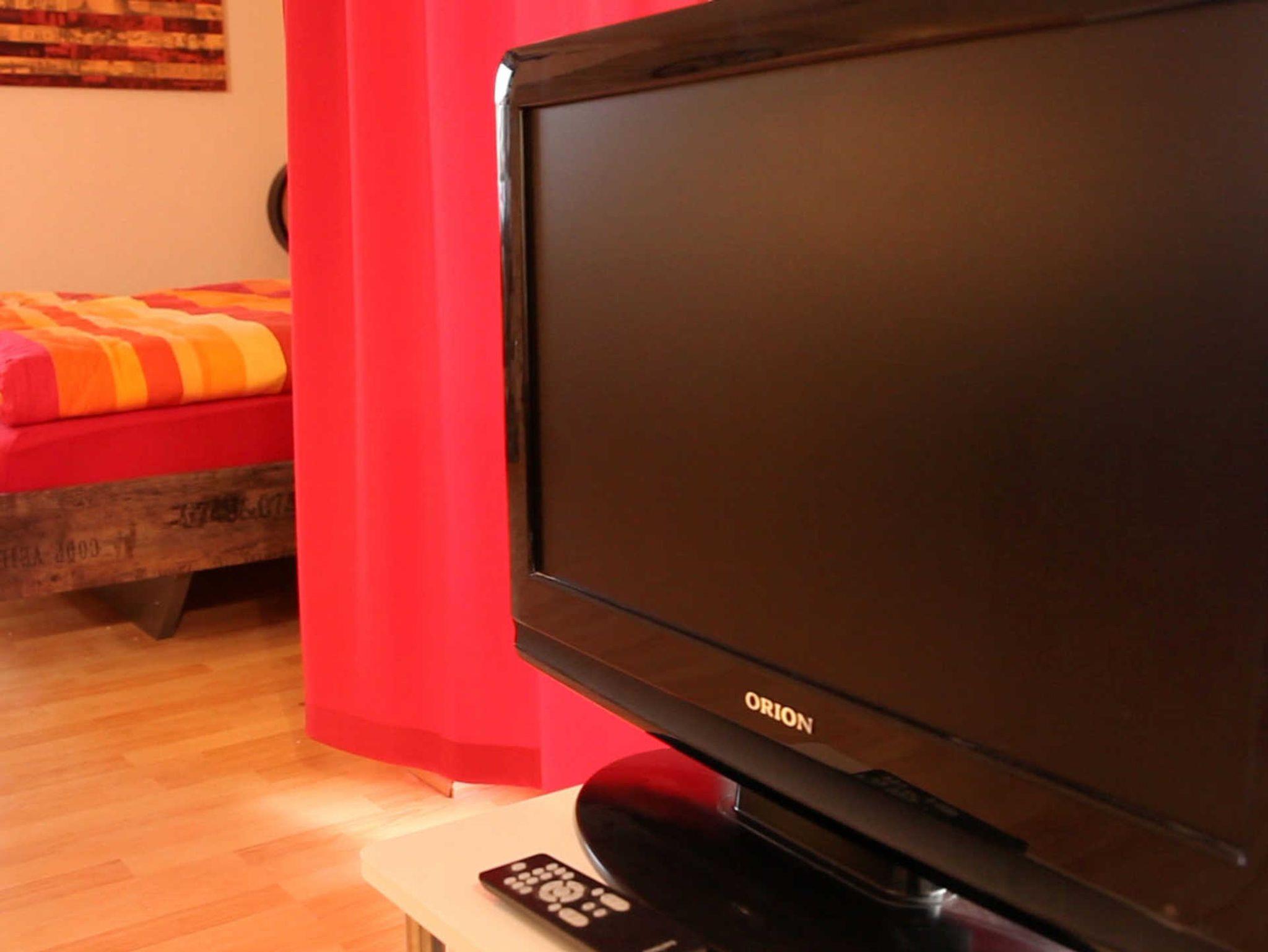 Die Wohnung verfügt über einen großen Wohn-/Schlafraum mit einem großen Doppel-Bett (1,80m x 2,00 Meter) sowie einer bequemen, ausziehbaren Schlafcouch. Das Wohnzimmer verfügt neben einem sehr geräumigen Essbereich über ein Flachbild-TV, DVD-Player sowie eine Hifi-Anlage.