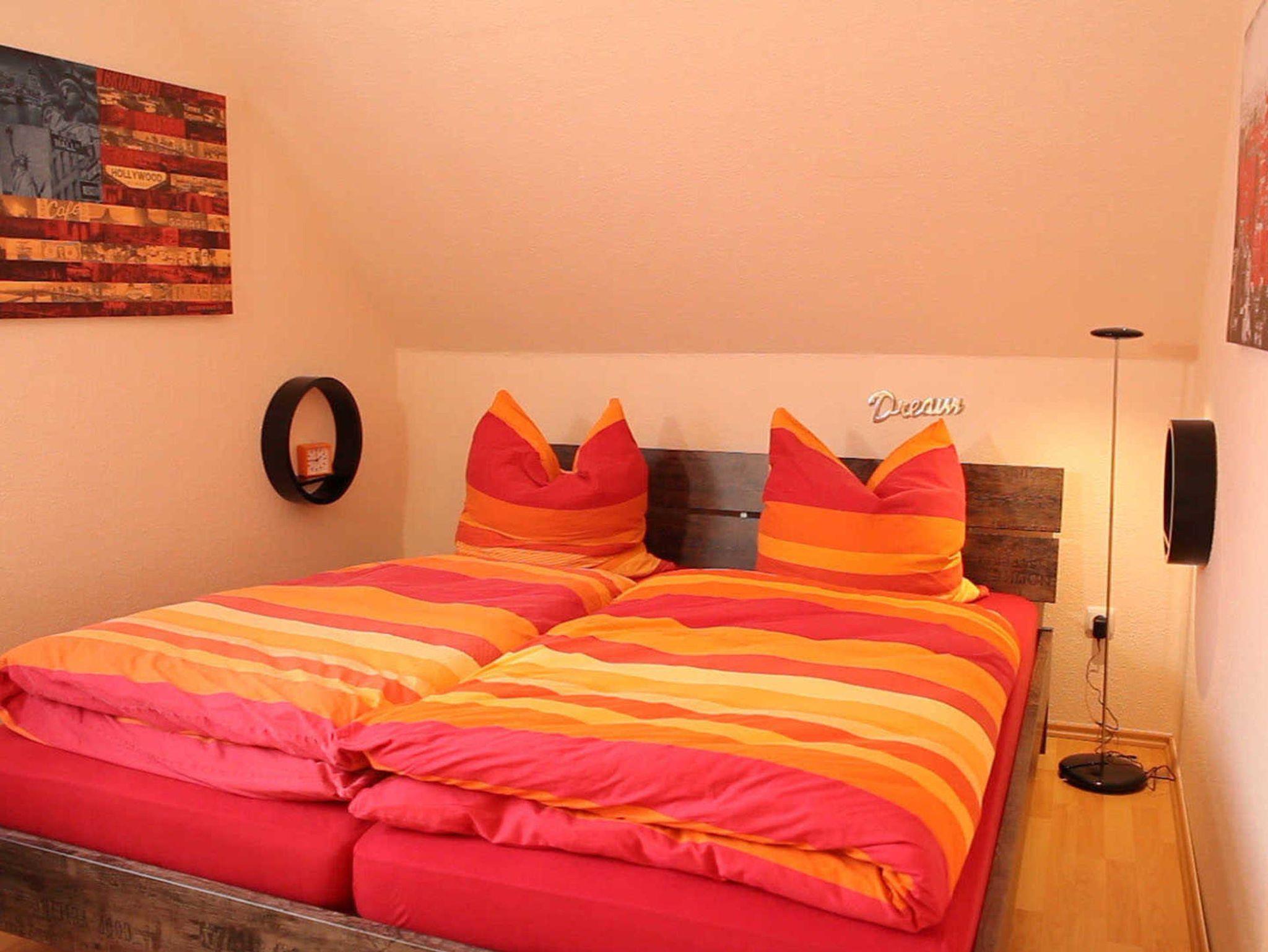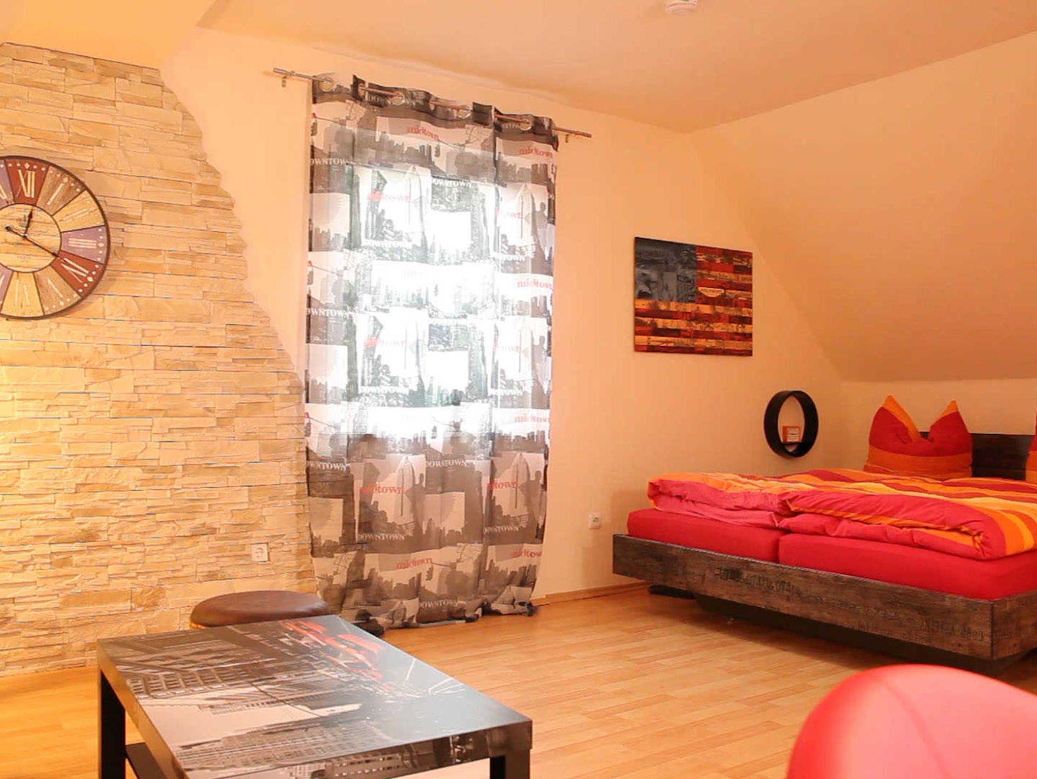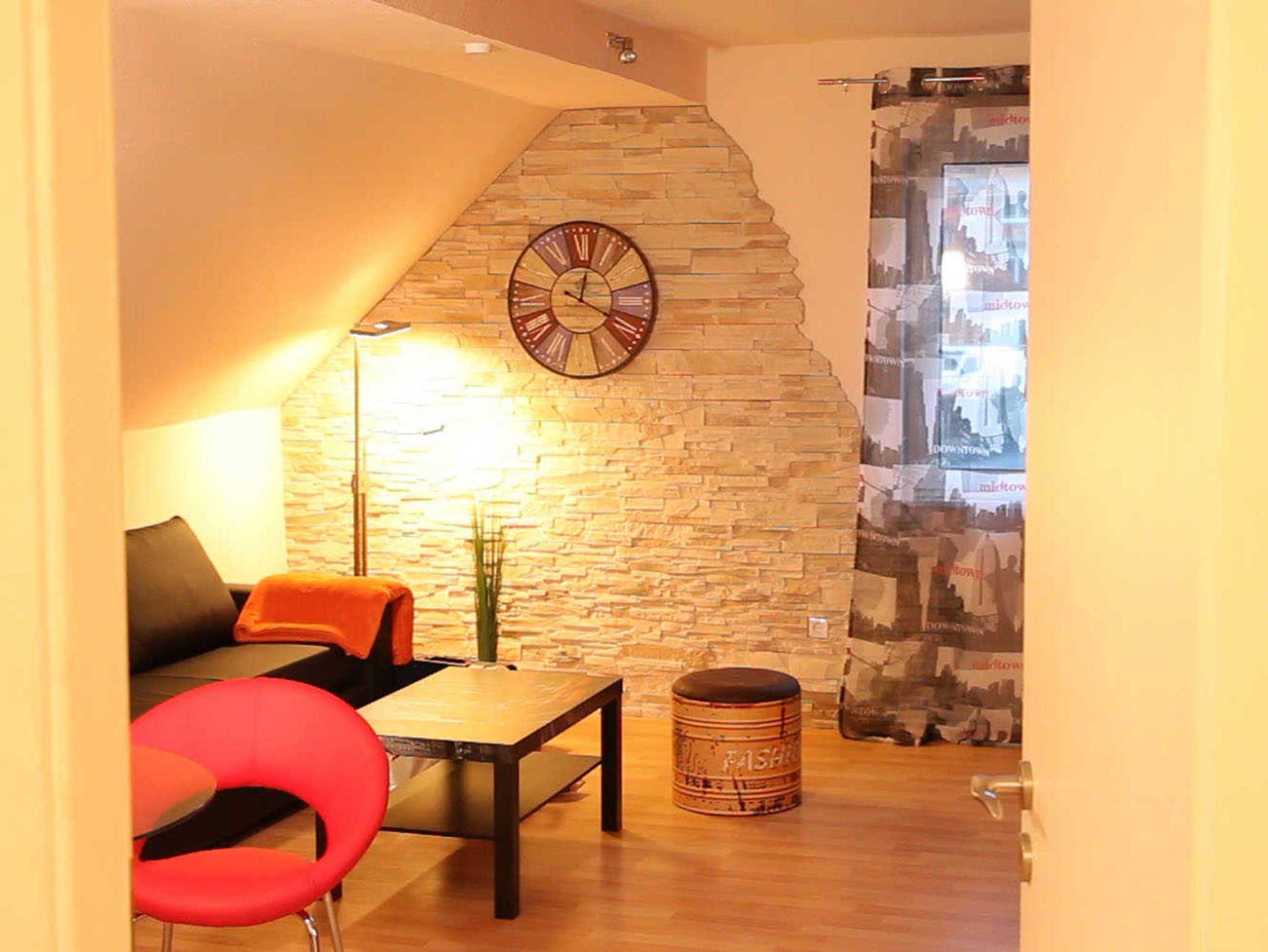 Die Wohnung verfügt über einen großen Wohn-/Schlafraum mit einem großen Doppel-Bett (1,80m x 2,00 Meter) sowie einer bequemen, ausziehbaren Schlafcouch. Das Wohnzimmer verfügt neben einem sehr geräumigen Essbereich über ein Flachbild-TV, DVD-Player sowie eine Hifi-Anlage.