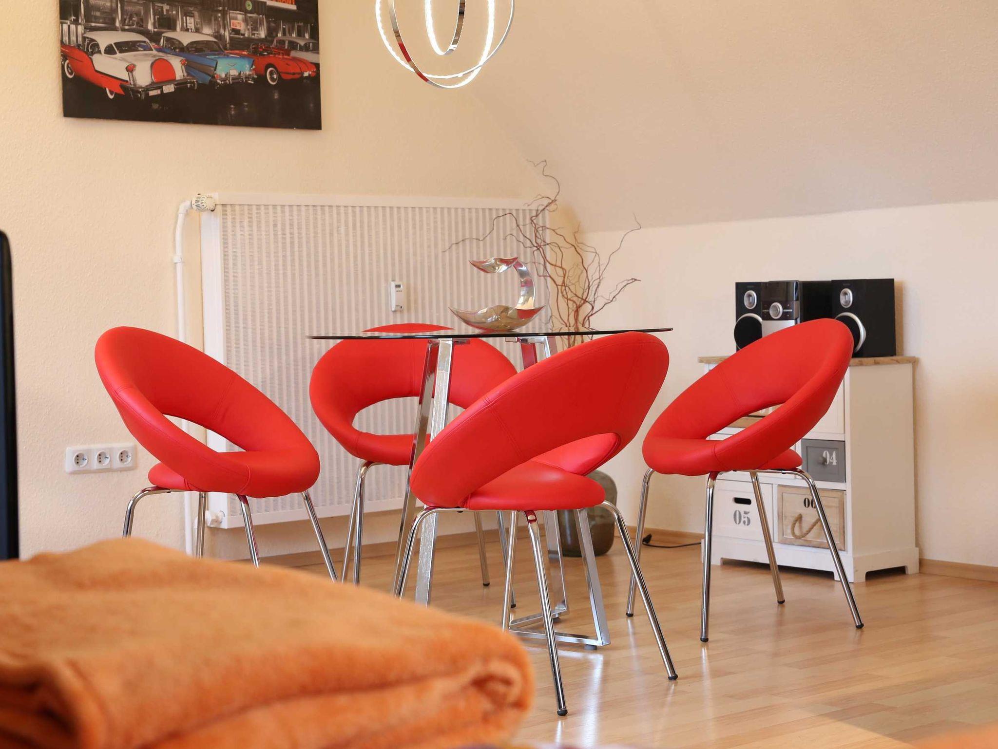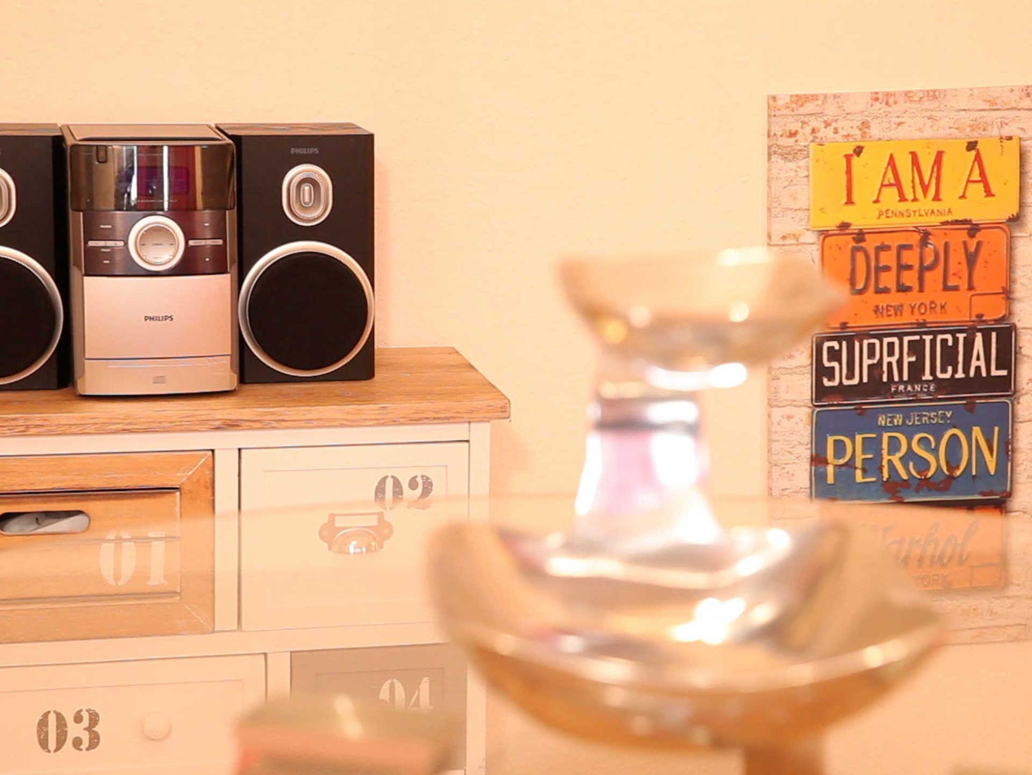 Das kinderfreundliche Apartment besticht besonders durch seine individuelle Einrichtung mit hochwertigen und modernen Designermöbeln. Abgerundet wird das stilvolle Ambiente durch zahlreiche Accessoires und Kunstwerke.