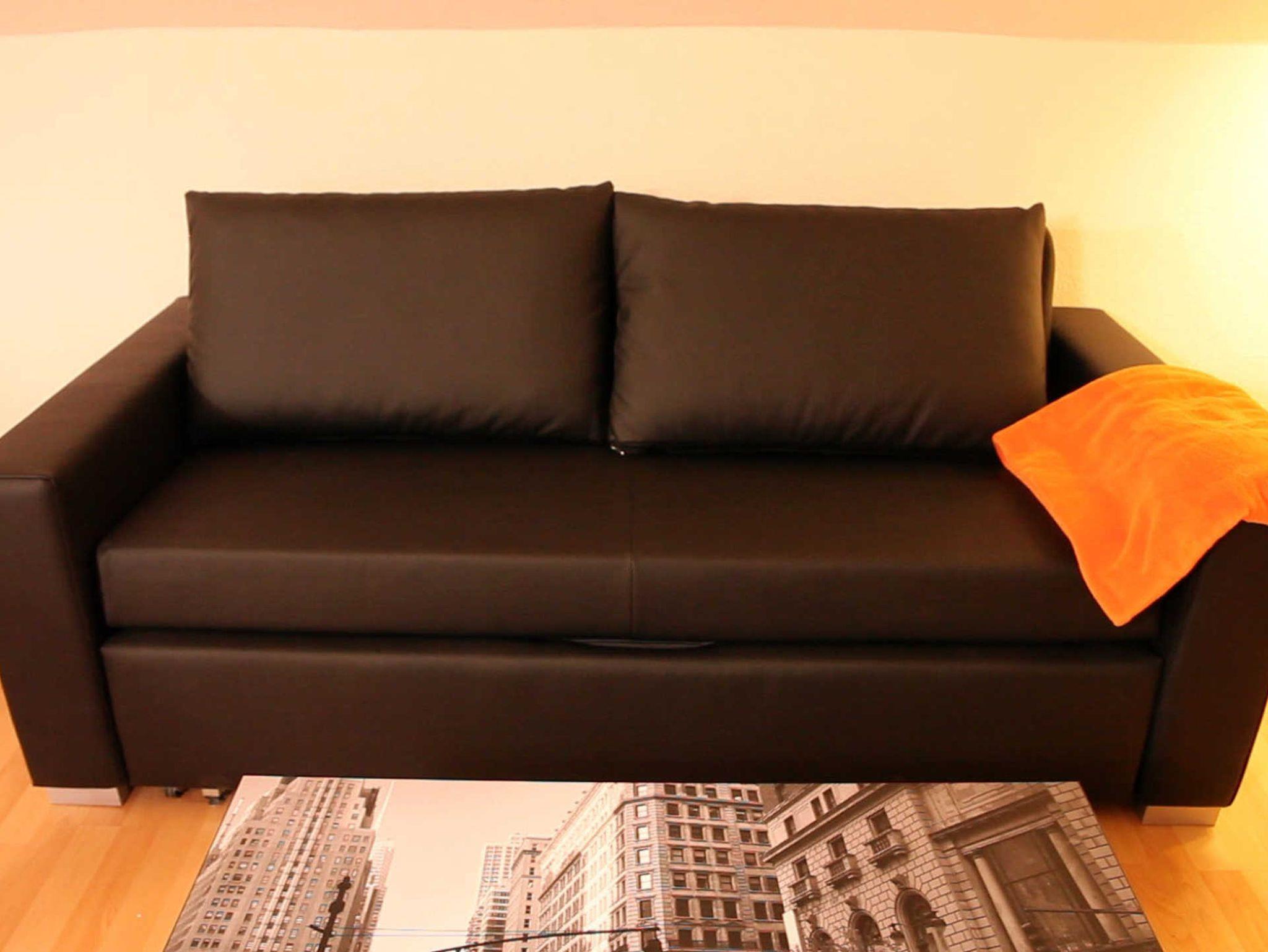 Die Wohnung verfügt über ein kombiniertes Wohn- u. Schlafzimmer mit einem großen Doppelbett (1,80m x 2,00m) und einer ausziehbaren, bequemen Schlafcouch mit Federkern.