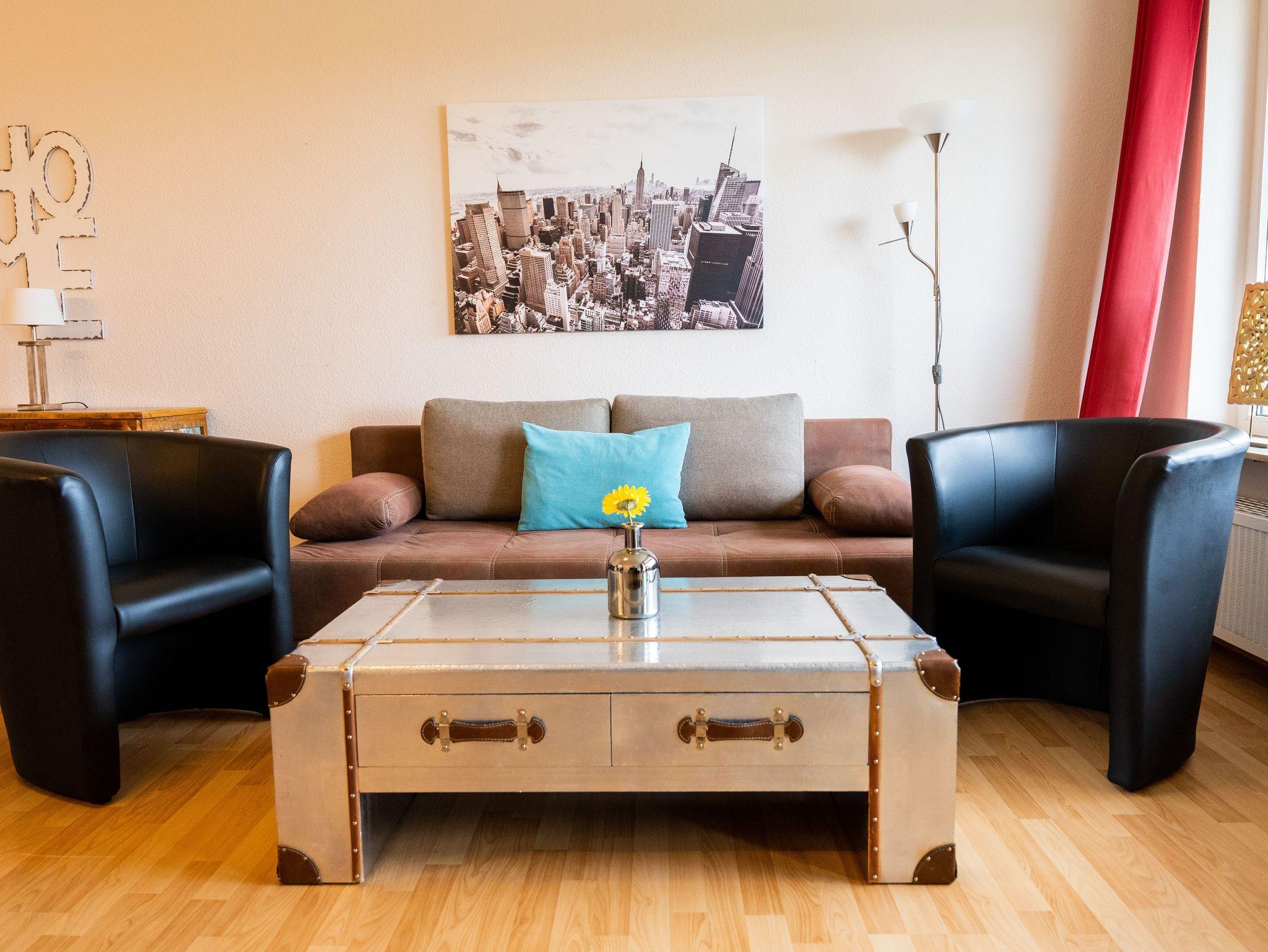 Das kinderfreundliche Apartment besticht besonders durch seine individuelle Einrichtung mit modernen Möbeln.