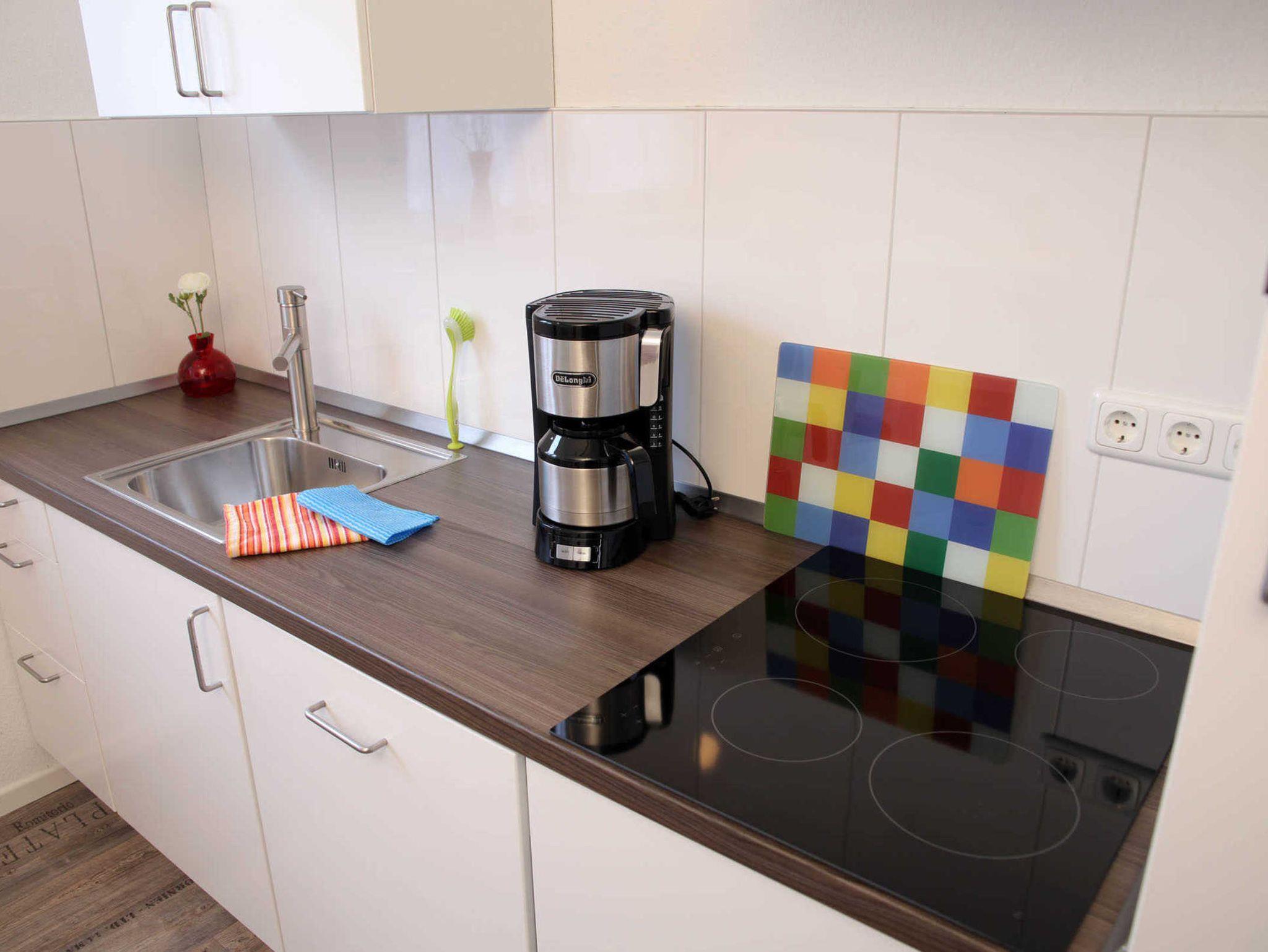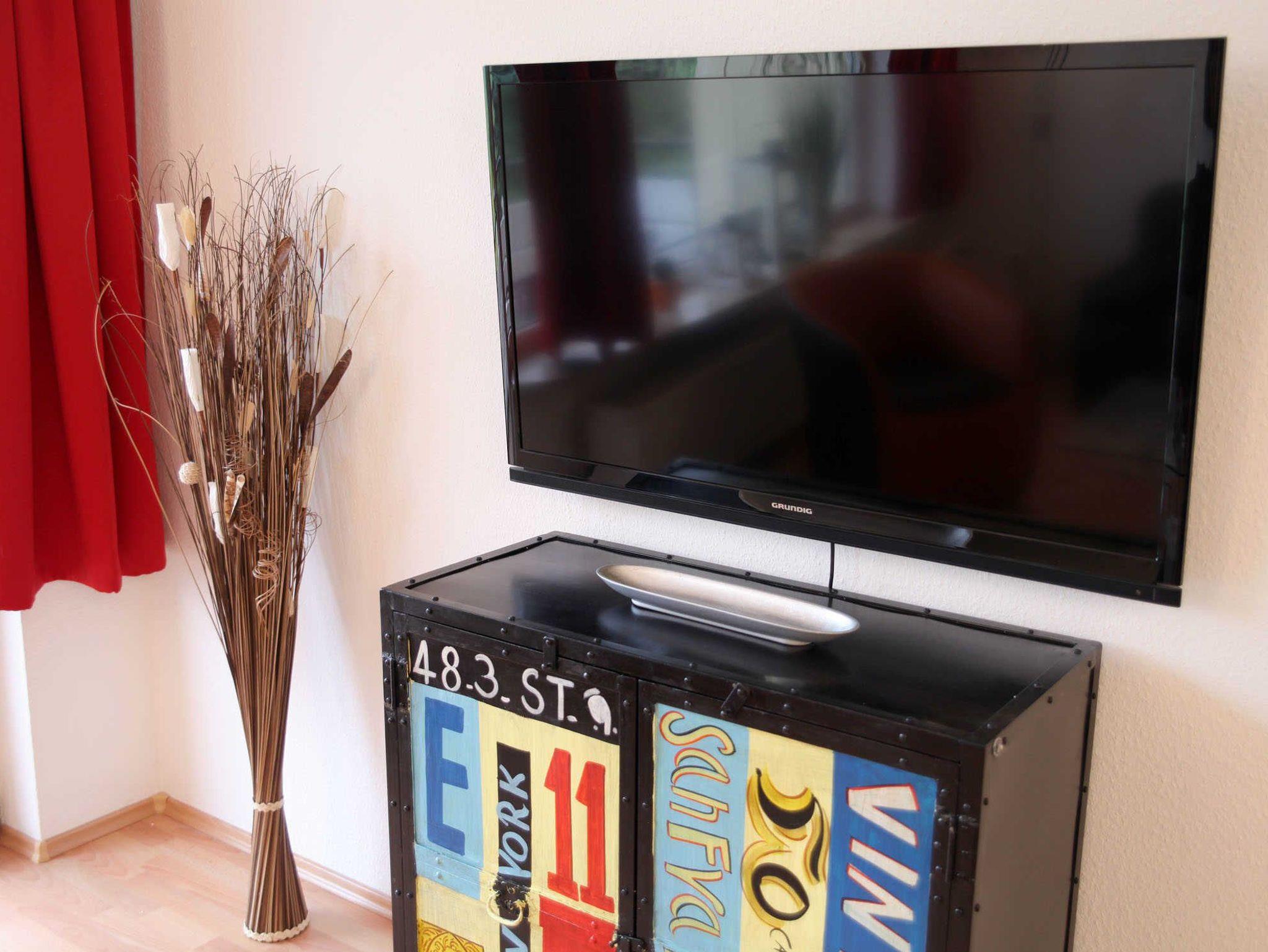 Das Wohnzimmer ist mit einer bequemen, ausziehbaren Schlafcouch mit Federkern ausgestattet, mit Flachbild-TV, DVD-Player und Hifi-Anlage. Des weiteren befindet sich hier ein sehr geräumiger Essbereich. Die Küche ist mit einer modernen Küchenzeile ausgestattet, das moderne Bad u.a. mit Dusche und separatem WC.