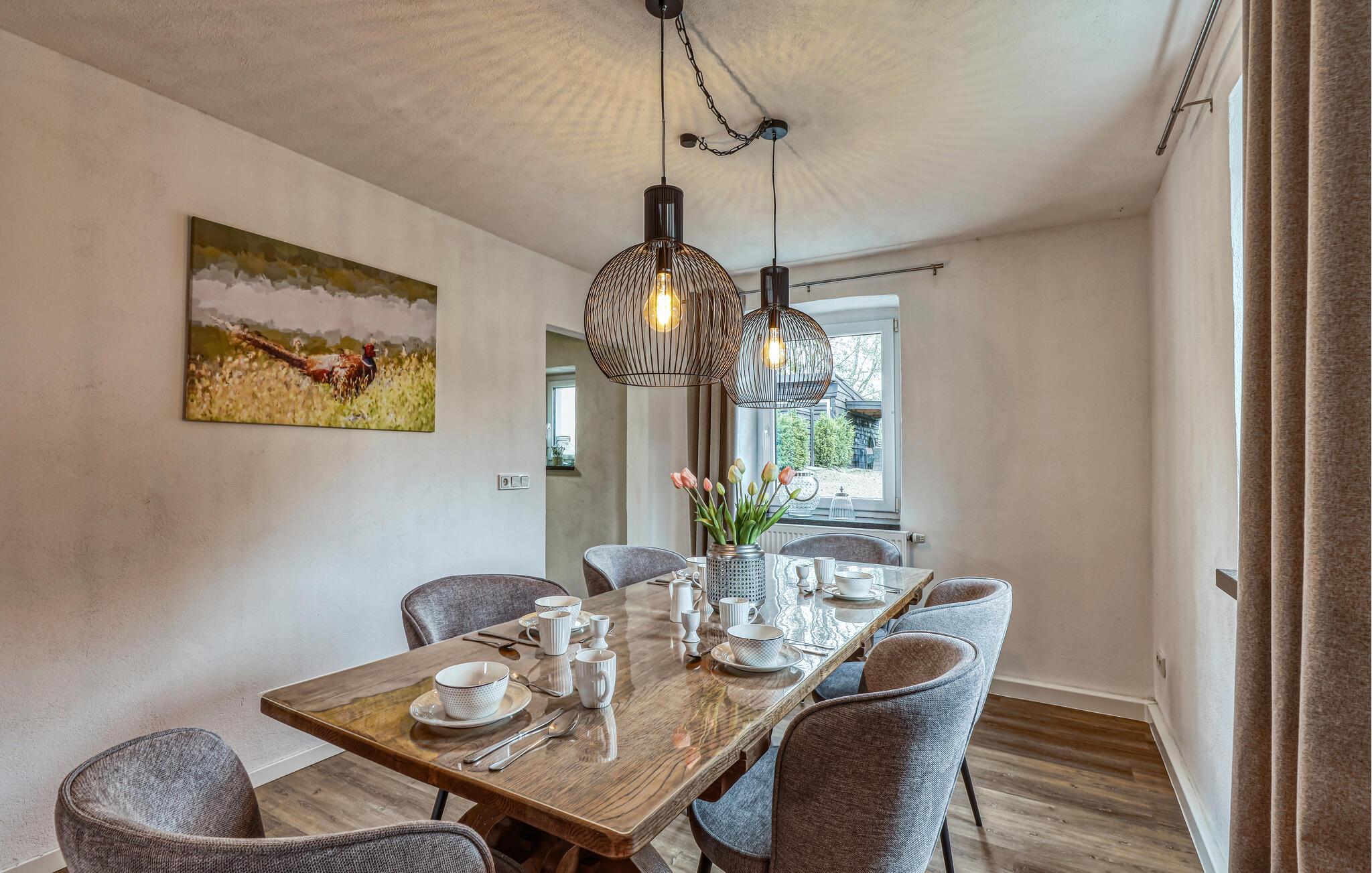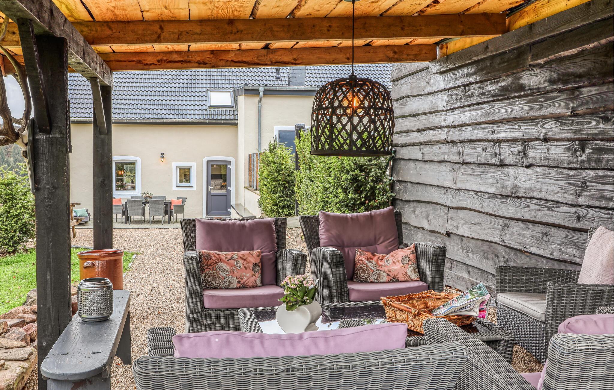 Der er lagt op til en herlig, ubekymret ferie i naturlige omgivelser i dette stilfulde hus.