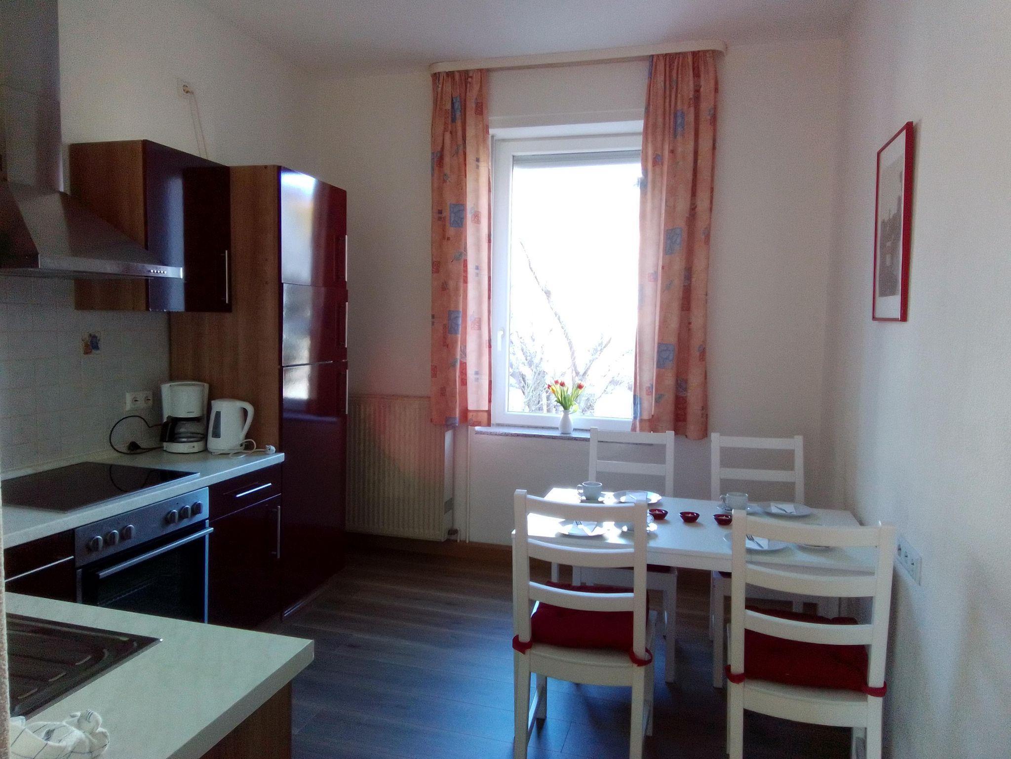 Außerdem hat die Wohnung ein Bad mit Badewanne und eine voll ausgestattete Küche mit kleinem Esstisch. Im 2. OG steht Ihnen eine Waschmaschine zur Verfügung, die sie ohne Aufpreis nutzen können. Auf Wunsch kann auch ein Kinderbett und ein Hochstuhl kostenlos zur Verfügung gestellt werden.