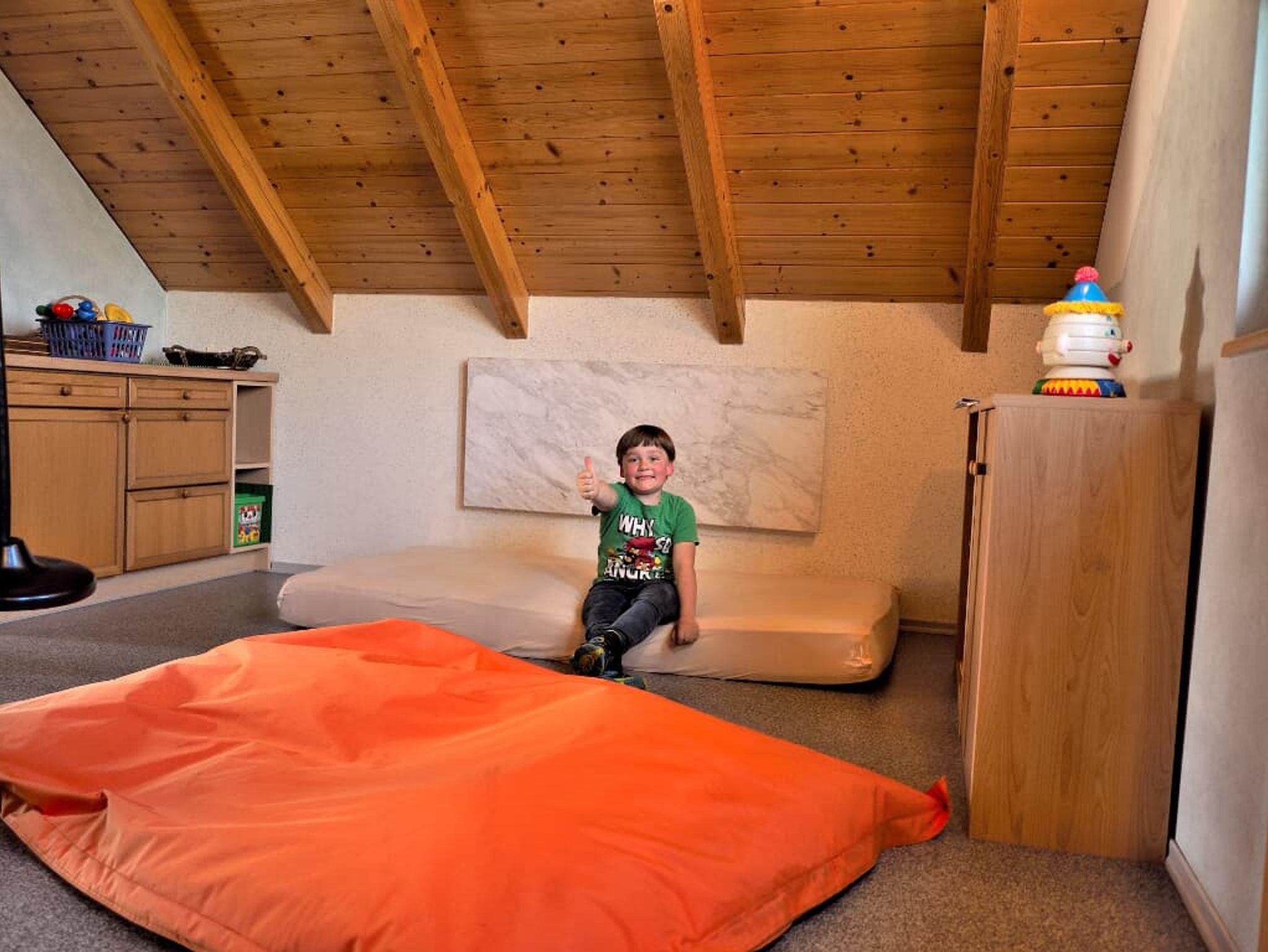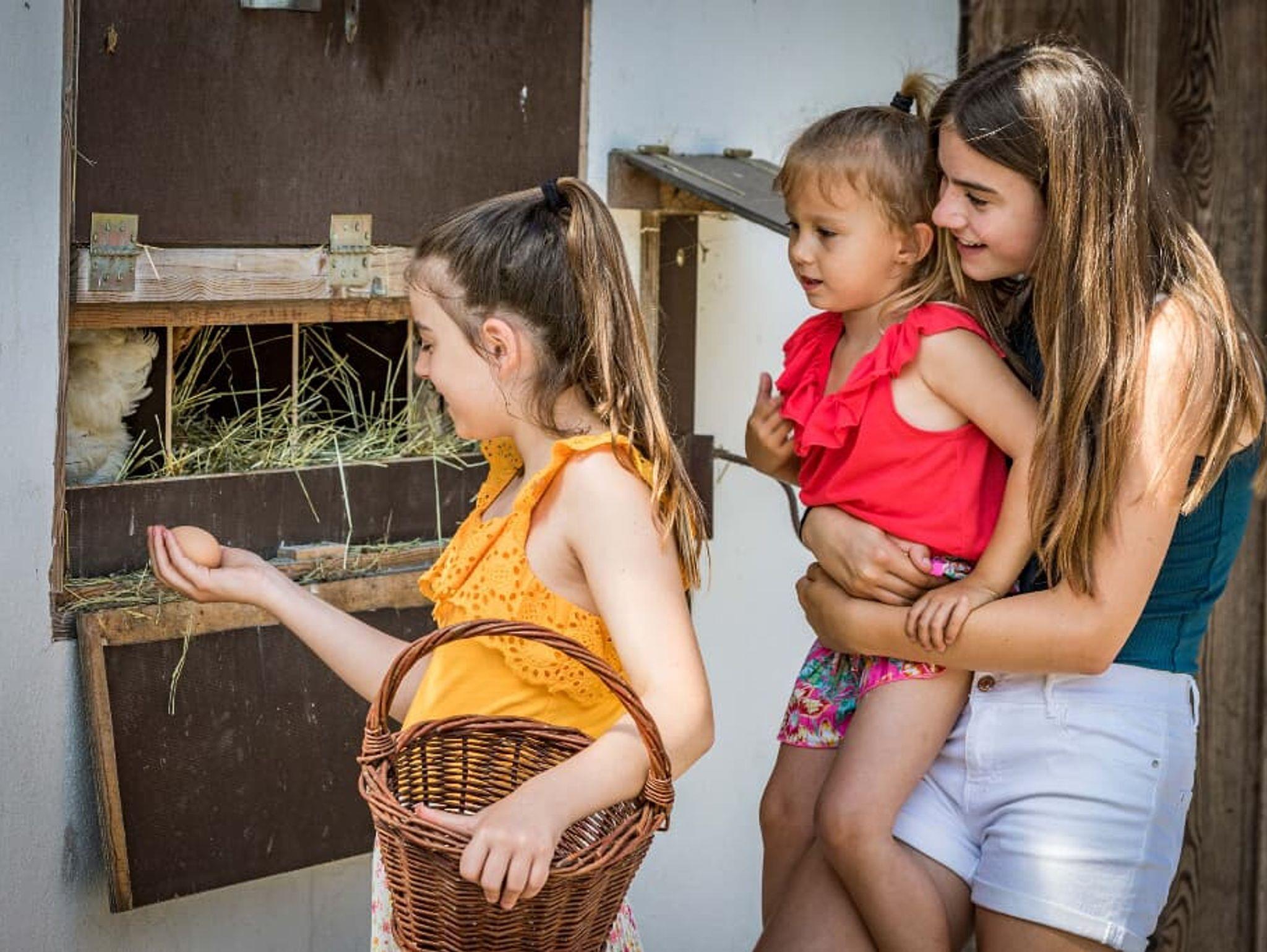 Für Kids haben wir einiges zu bieten: Stockbrot backen, Ponyreiten, einen Abenteuerspielplatz, einen Kinderfuhrpark, ein beheiztes Spielhaus für schlechtes Wetter, ein Riesentrampolin, Traktorfahrten, Mithilfe bei der täglichen Fütterung und natürlich einen großen Streichelzoo.