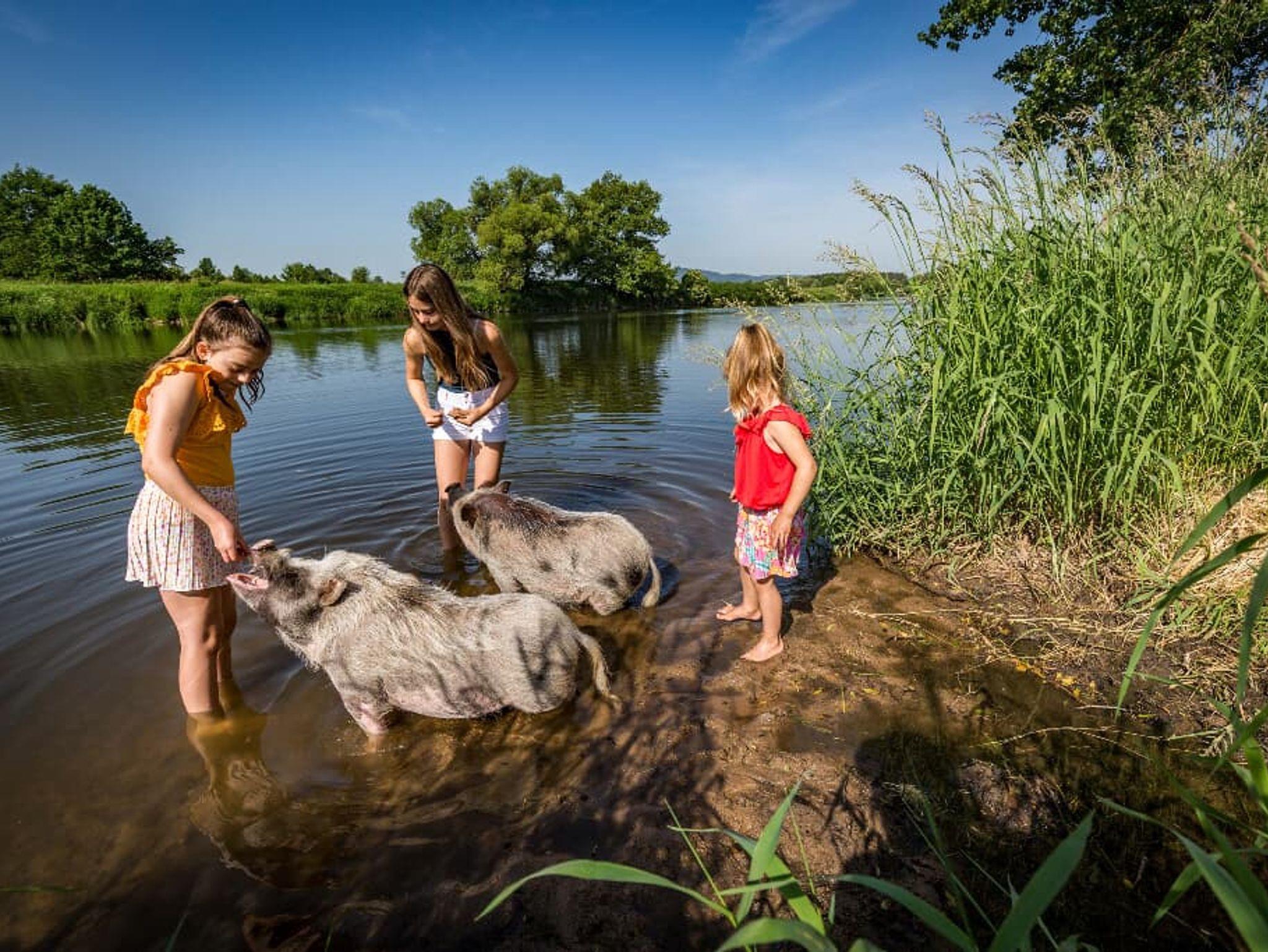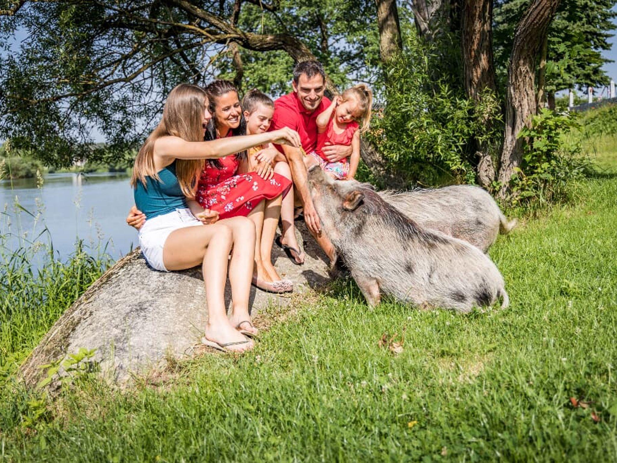 Aber auch die Großen kommen nicht zu kurz: Knusprige Schweinshaxen essen oder Steinofenpizza backen, Strandkörbe, Leihfahrräder, eine Tischtennisplatte, Angelmöglichkeiten, tolle Wanderwege und vieles mehr!