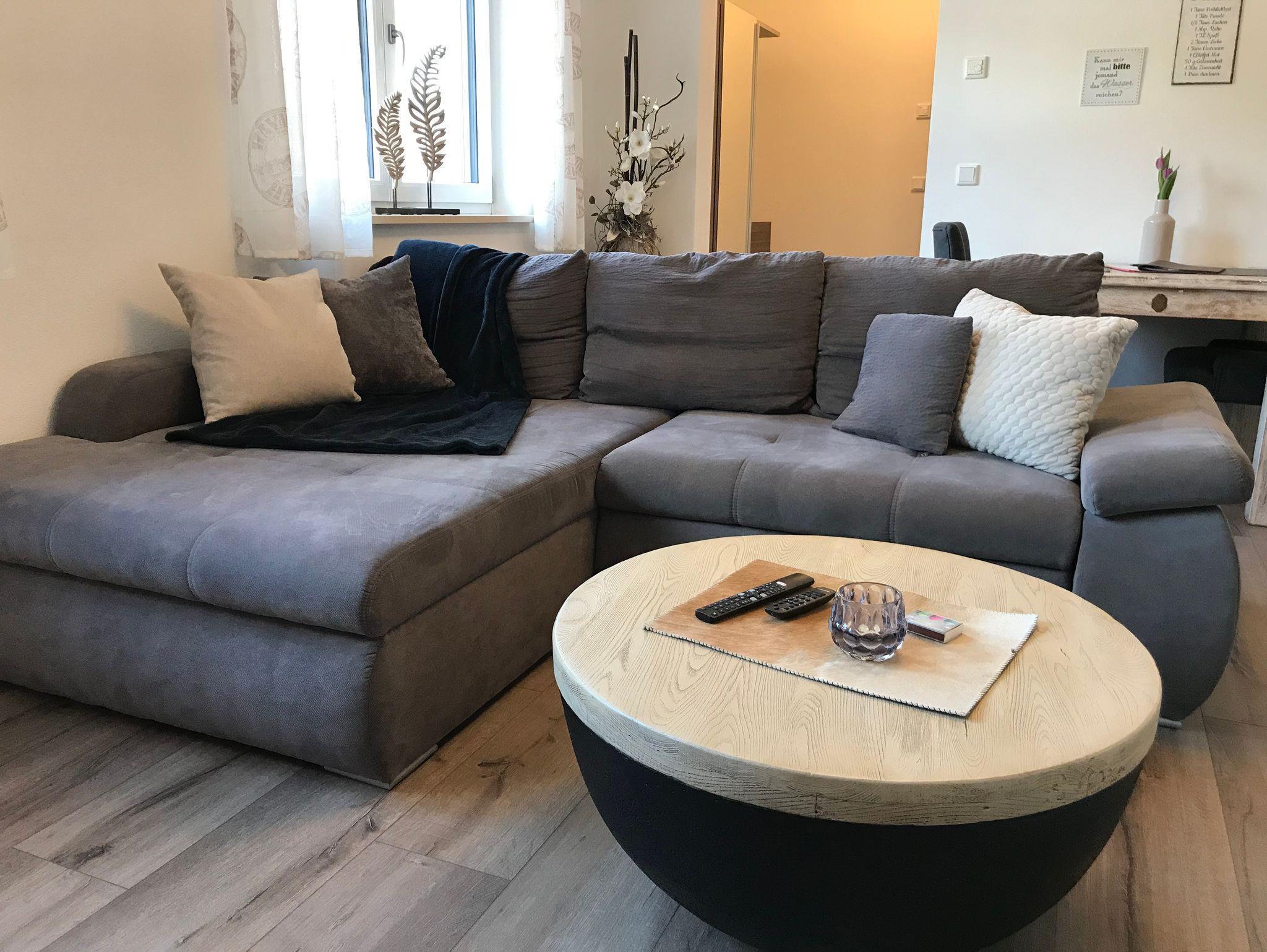 Wohnbereich: Couch, auf der bequem 2 Personen Platz finden, Flachbild - TV, DVD - Player, Stereo - Anlage