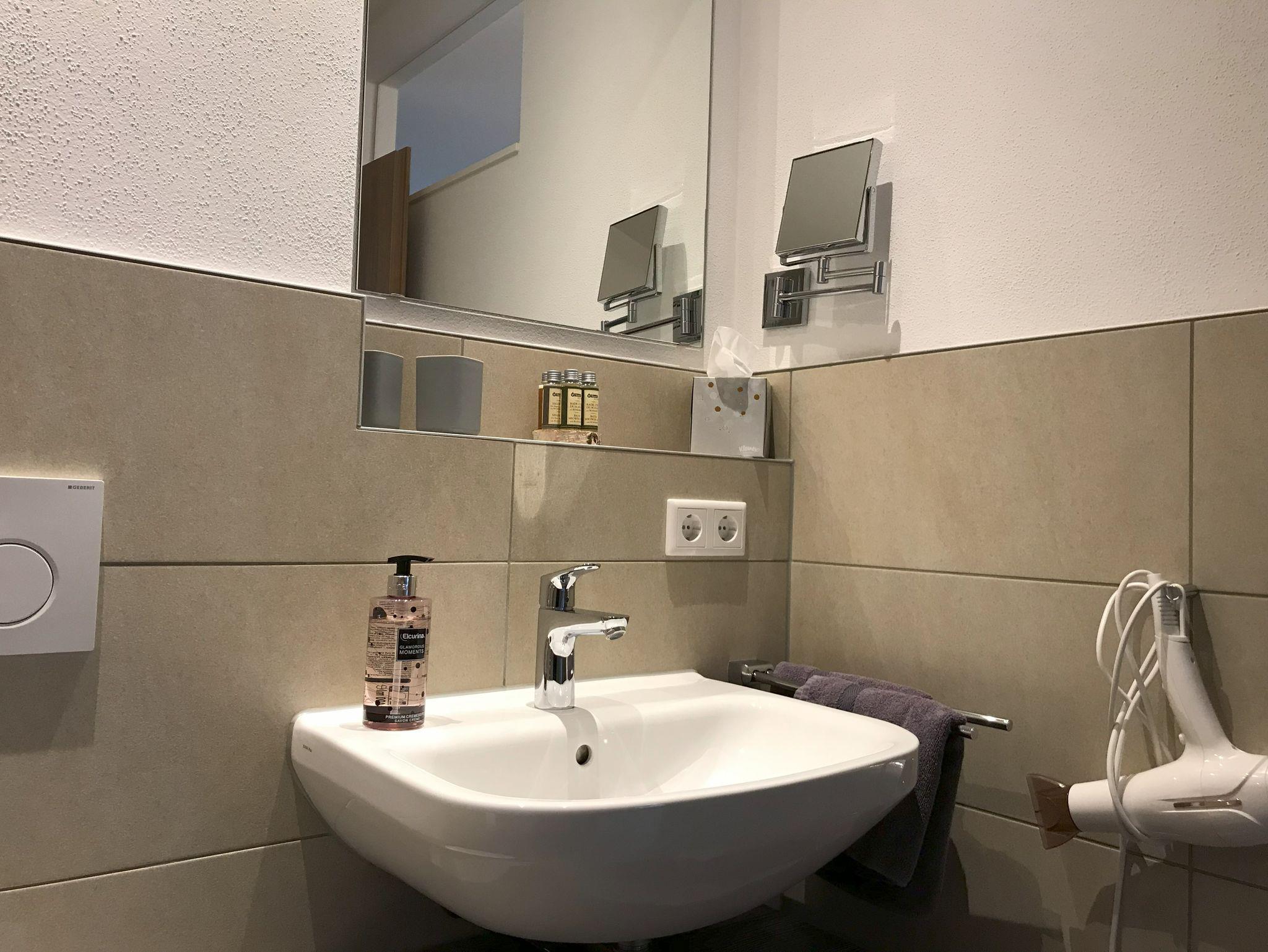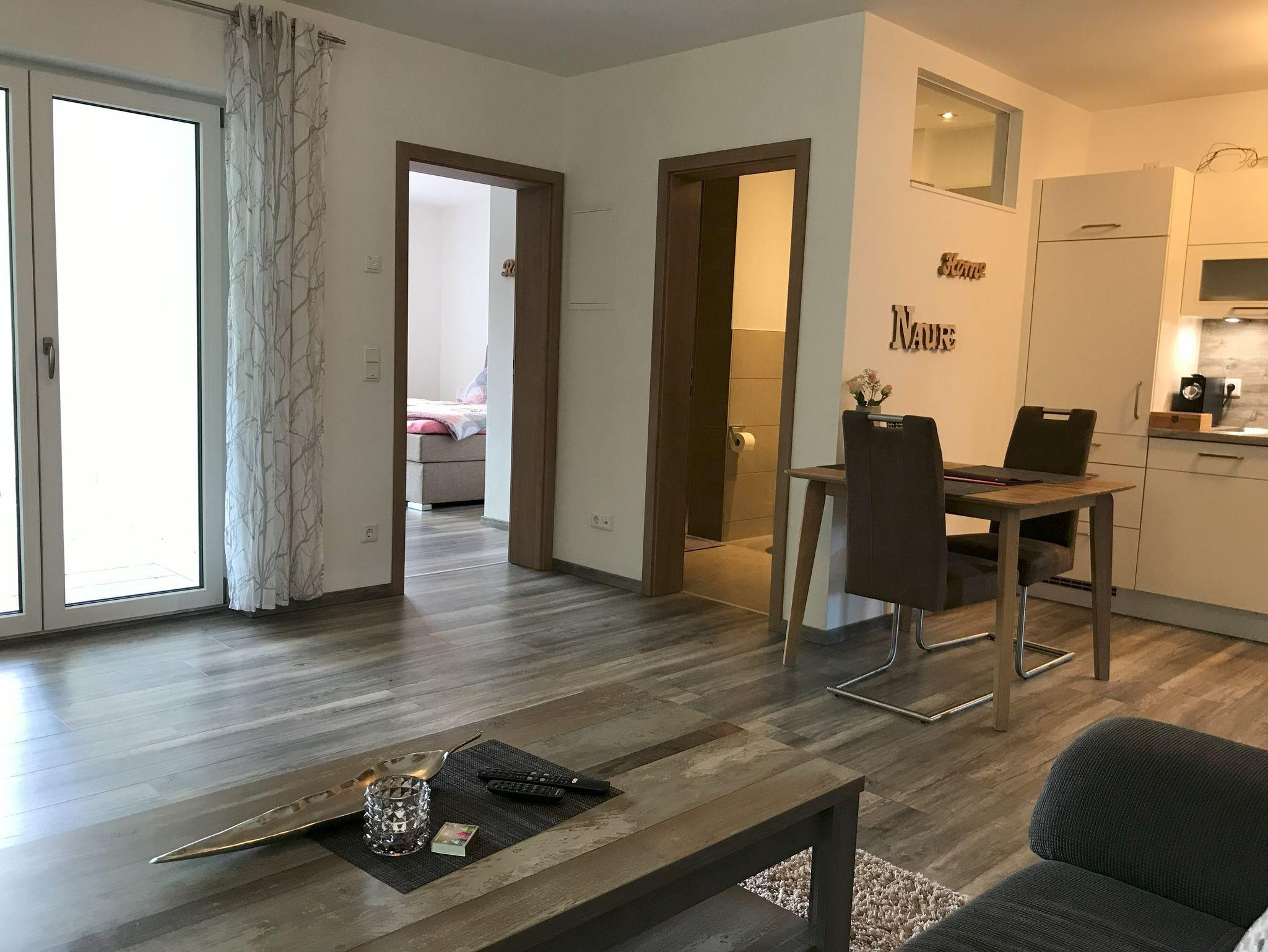 Unser modern und gemütlich eingerichtetes 2 - Zimmer - Appartement mit 50 qm für max. 2 Personen verfügt über ein schönes Schlafzimmer, ein Wohnzimmer mit Wohnküche, einen großen überdachten Balkon und ein modernes Badezimmer mit begehbarer barrierefreier Dusche.