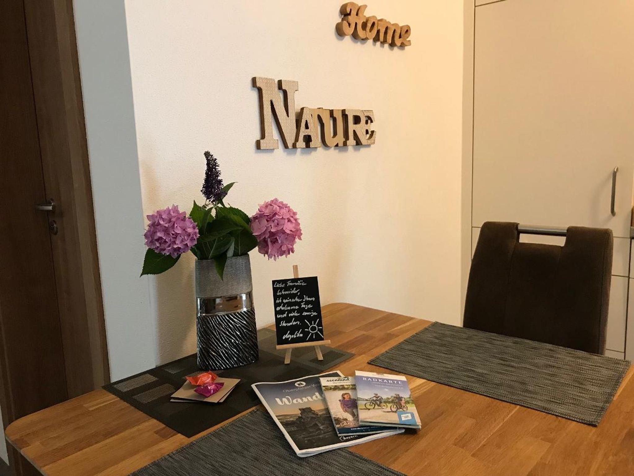 Im Haus befinden sich 4 gemütliche Appartements in unterschiedlichen Größen. Es gibt einen Brötchenservice, der Sie morgens mit leckeren regionalen Backwaren versorgt. Die Stadt Nittenau mit allen Einkaufsmöglichkeiten und Restaurants ist 6 km entfernt. Ihre Touren, egal ob Wandern oder Fahrradfahren können Sie direkt hier vom Haus aus starten. In der näheren Umgebung gibt es viele attraktive Freizeitmöglichkeiten, gerne sind wir Ihnen bei der Auswahl behilflich.
