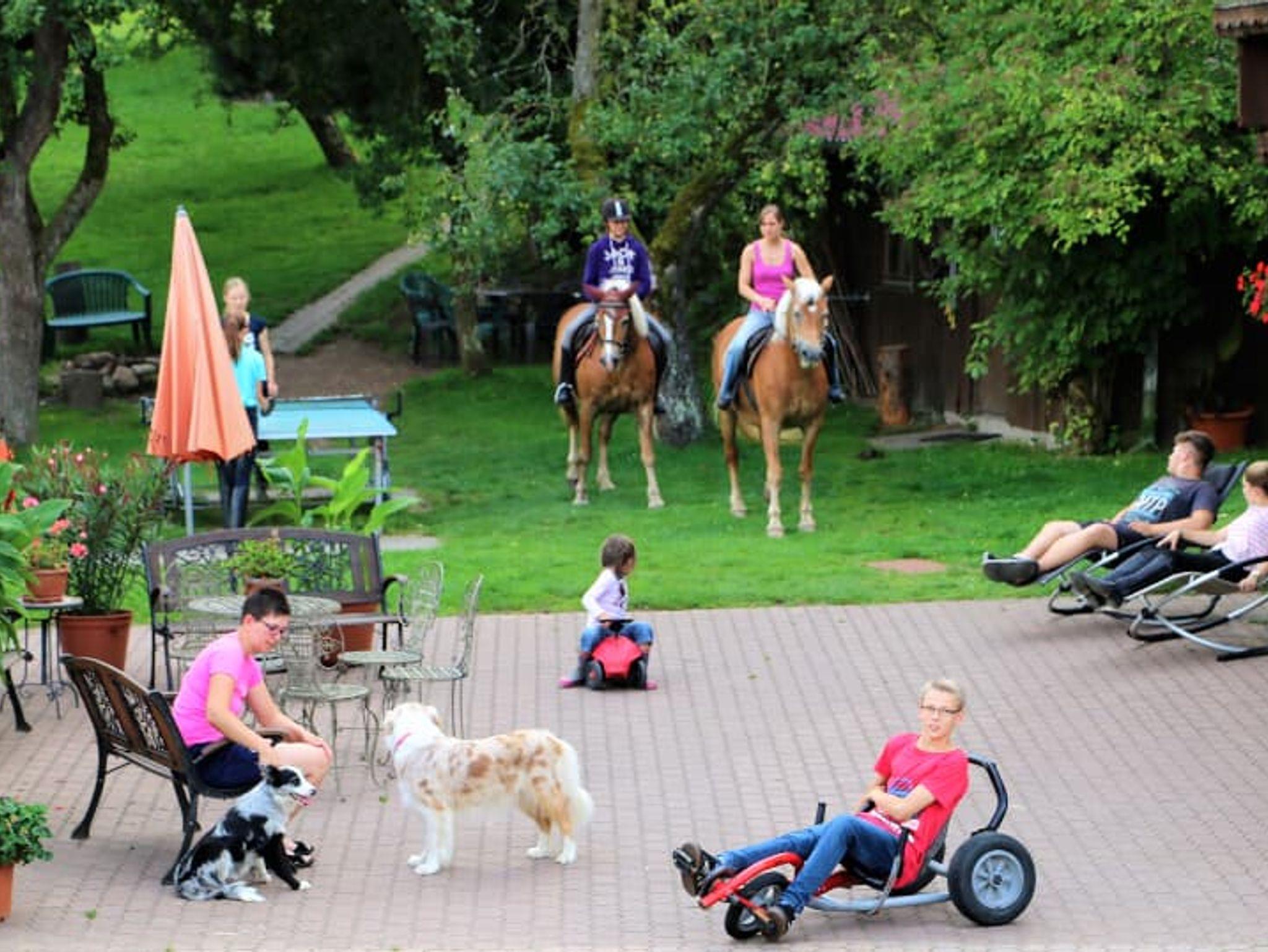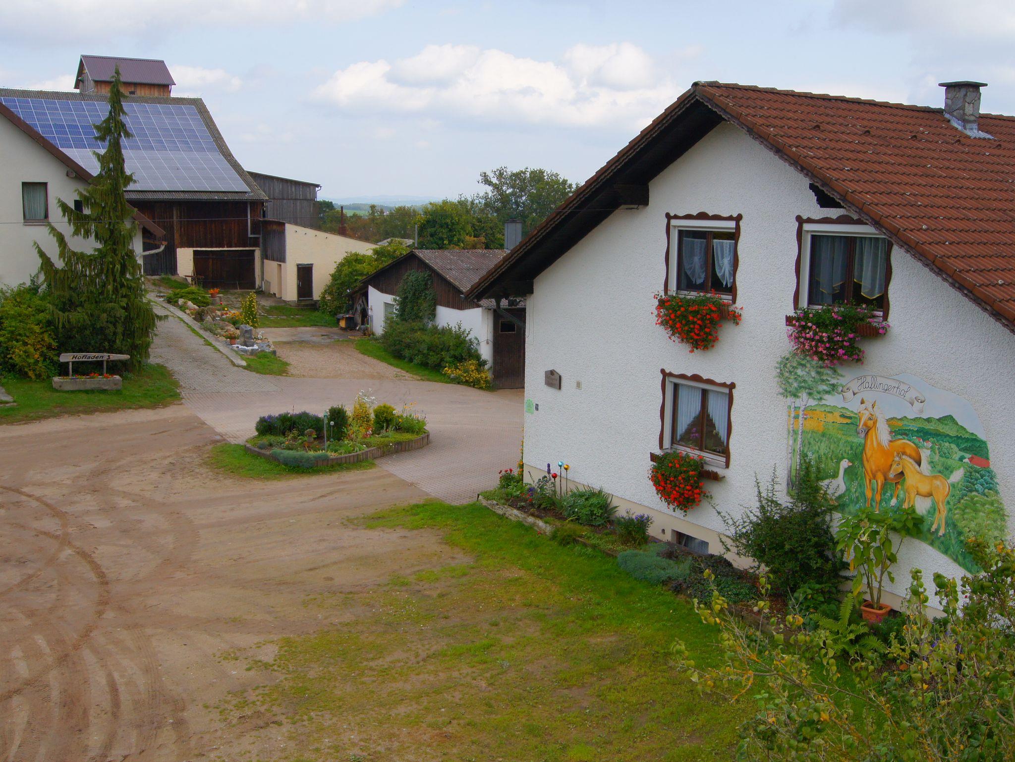 Der Hof liegt idyllisch am Waldrand in ruhiger Höhenlage mit weiter Fernsicht. Große Wiesen, Spielplatz, Trampolin, Tischtennis, Kicker und Liegestühle bieten Spaß und Entspannung für Groß und Klein.