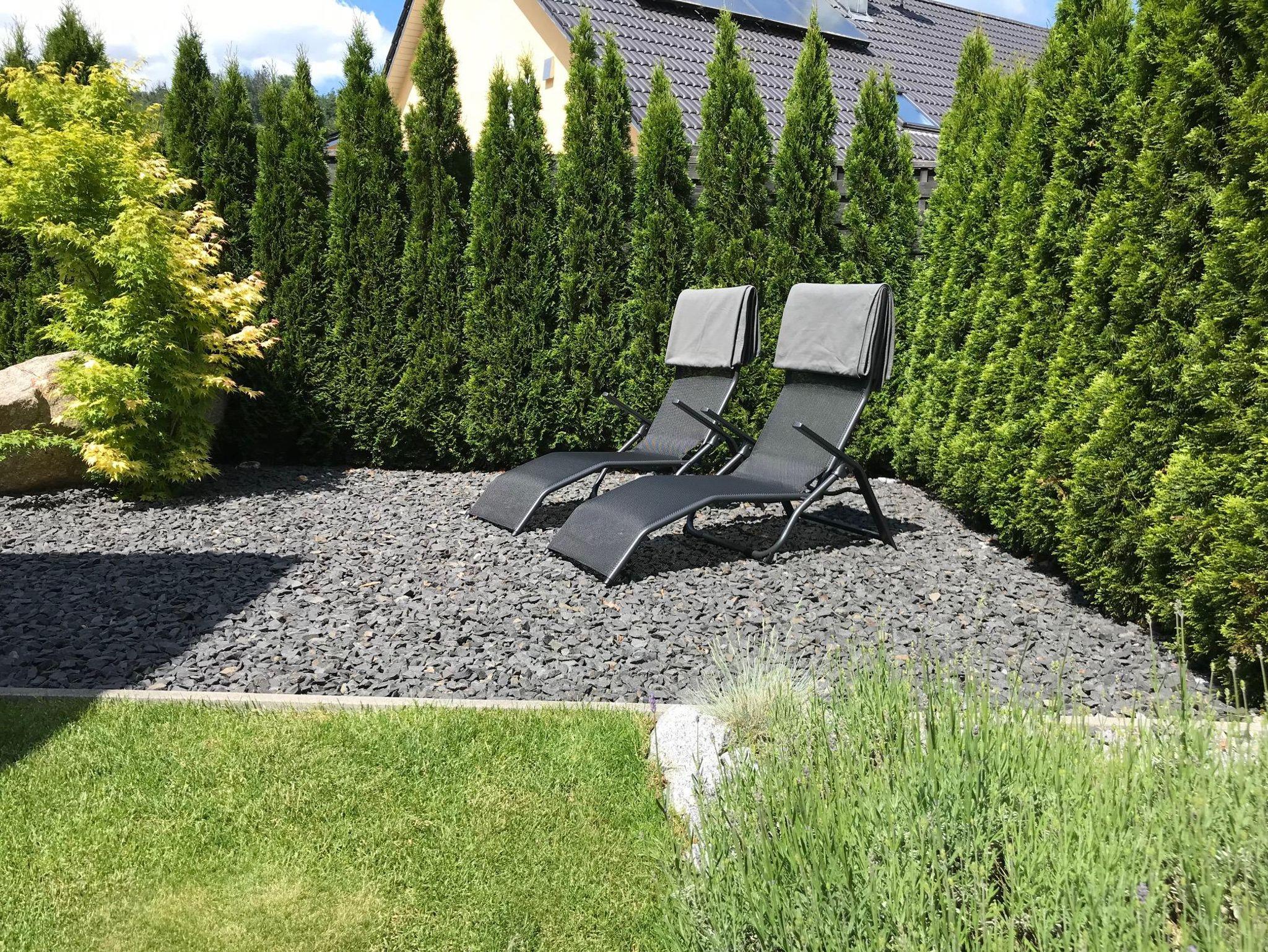 Das große Appartement befindet sich im Erdgeschoss mit Blick in den Wald. Auf der großen überdachten Terrasse mit Garten können Sie es sich gemütlich machen und den Ausblick in die Natur genießen.