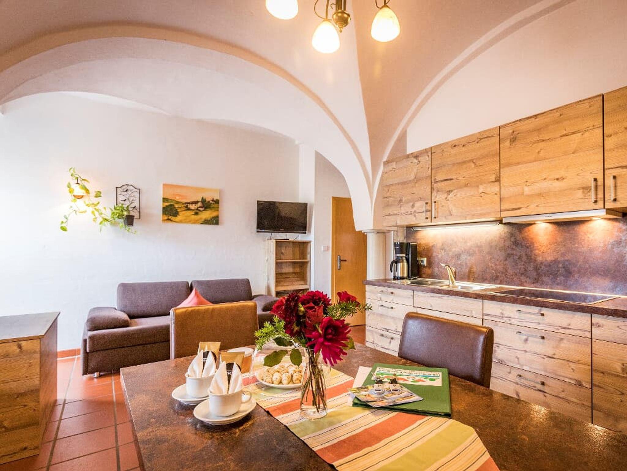 Die Wohnung befindet sich im Erdgeschoss und bietet 38qm Wohnfläche mit romantischem Kreuzgewölbe.