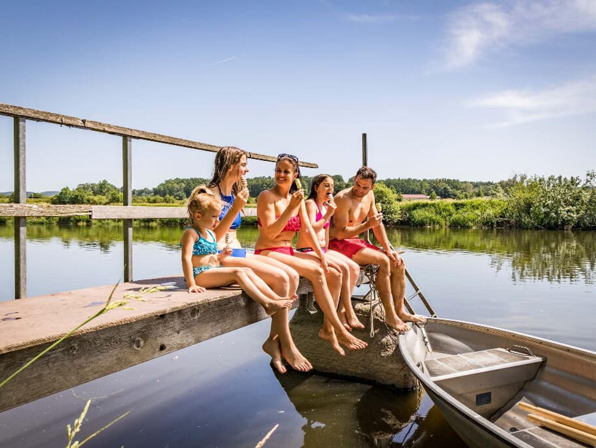 Aber auch die Großen kommen nicht zu kurz: Knusprige Schweinshaxen essen oder Steinofenpizza backen, Strandkörbe, Leihfahrräder, eine Tischtennisplatte, Angelmöglichkeiten, tolle Wanderwege und vieles mehr!