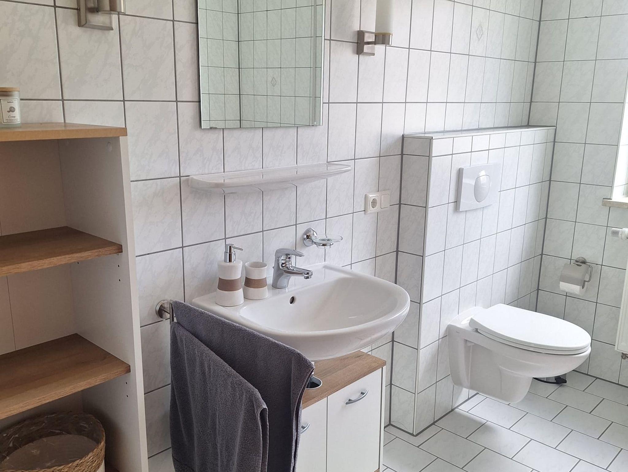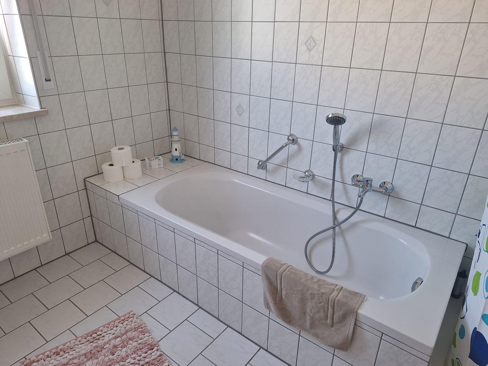 Das großzügige Tageslichtbad ist mit einer Dusche und einer Badewanne ausgestattet – perfekt für schnelle Erfrischung am Morgen oder ein entspannendes Bad am Abend.