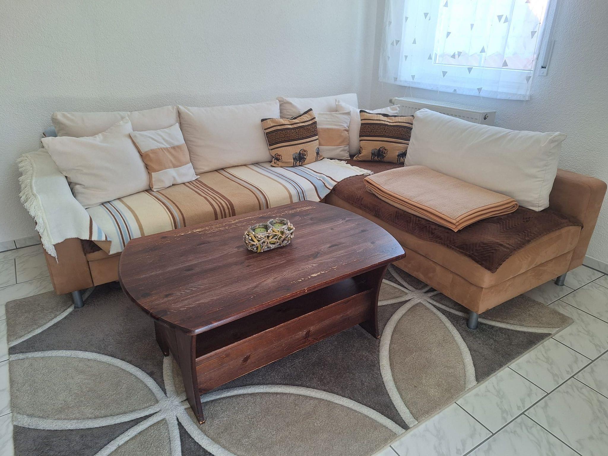 Das Wohnzimmer bietet ausreichend Platz zum Entspannen und Arbeiten – WLAN ist selbstverständlich vorhanden.