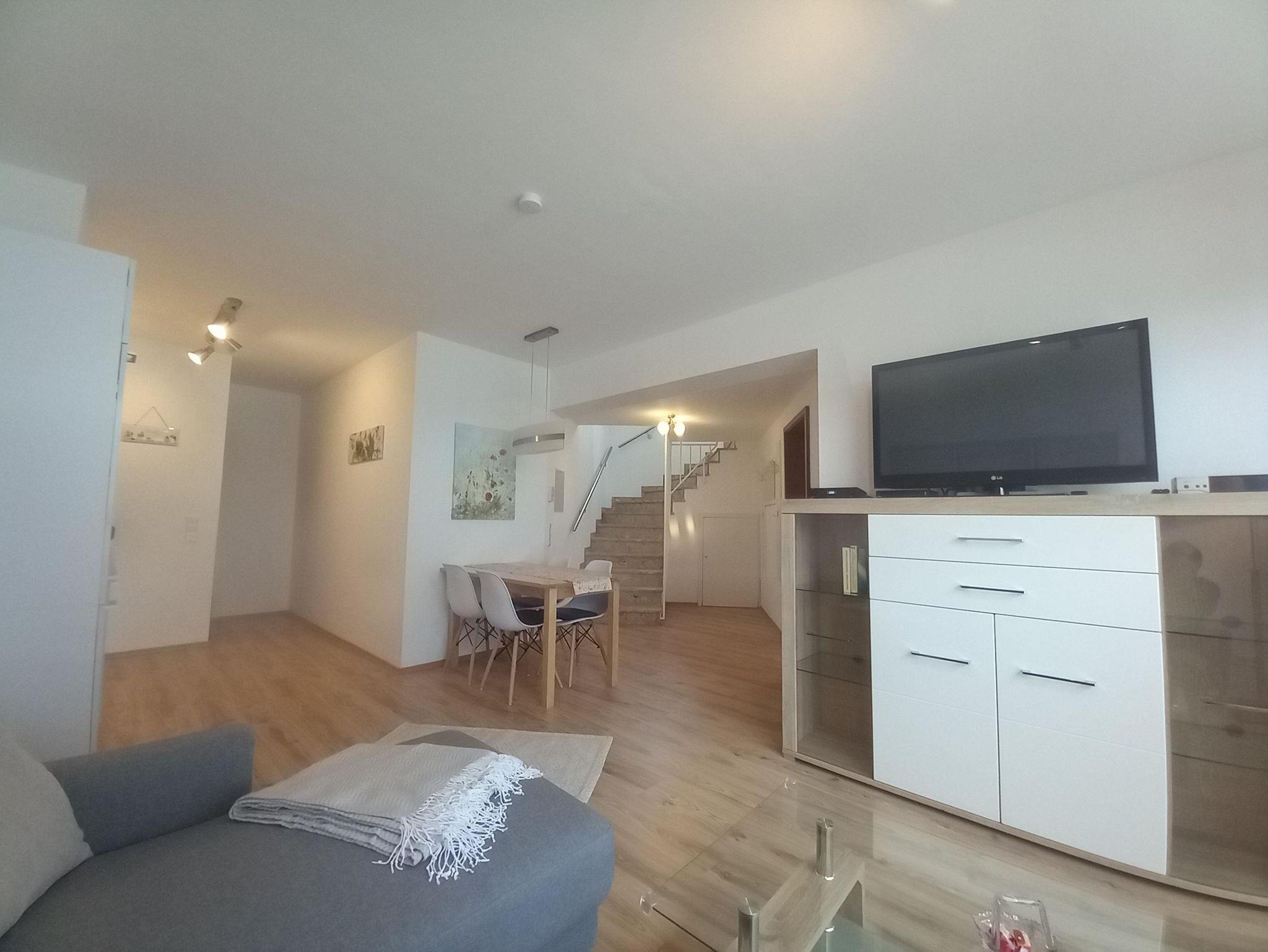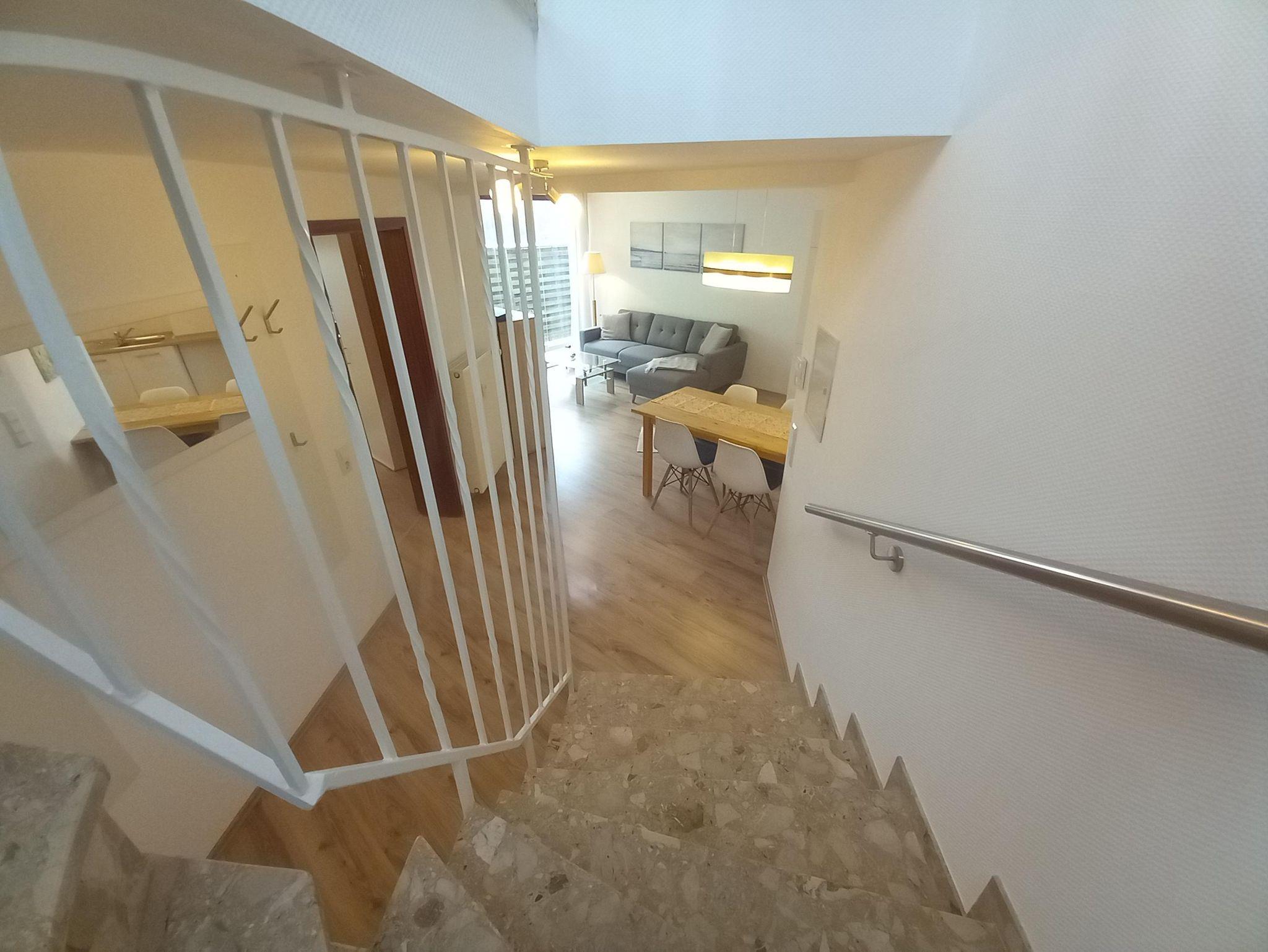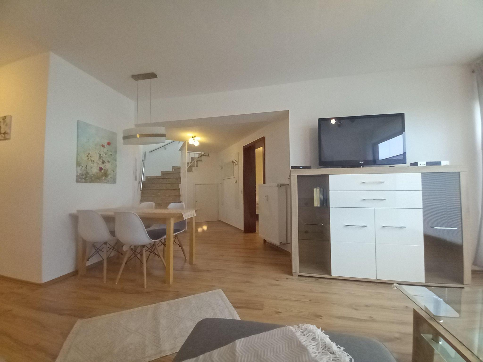 Die Ferienwohnung hat 2 Etagen und befindet sich in einem Mehrfamilienhaus. Als letztes Haus in einer Sackgasse bietet Sie Ihnen erholsame Urlaubstage. Sie hat einen separaten Eingang, vor dem Sie auch direkt parken können. Bis zum See sind es nur 8-10 Gehminuten. Sie ist geeignet für Paare, aber auch Familien mit bis zu 2 Kindern fühlen sich hier wohl.