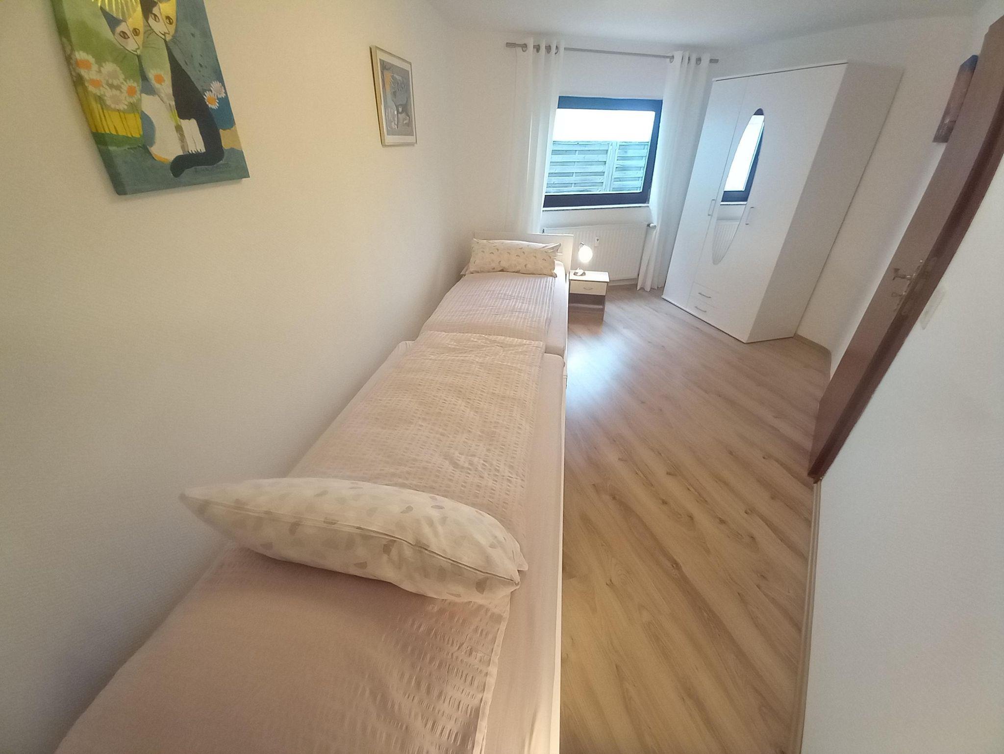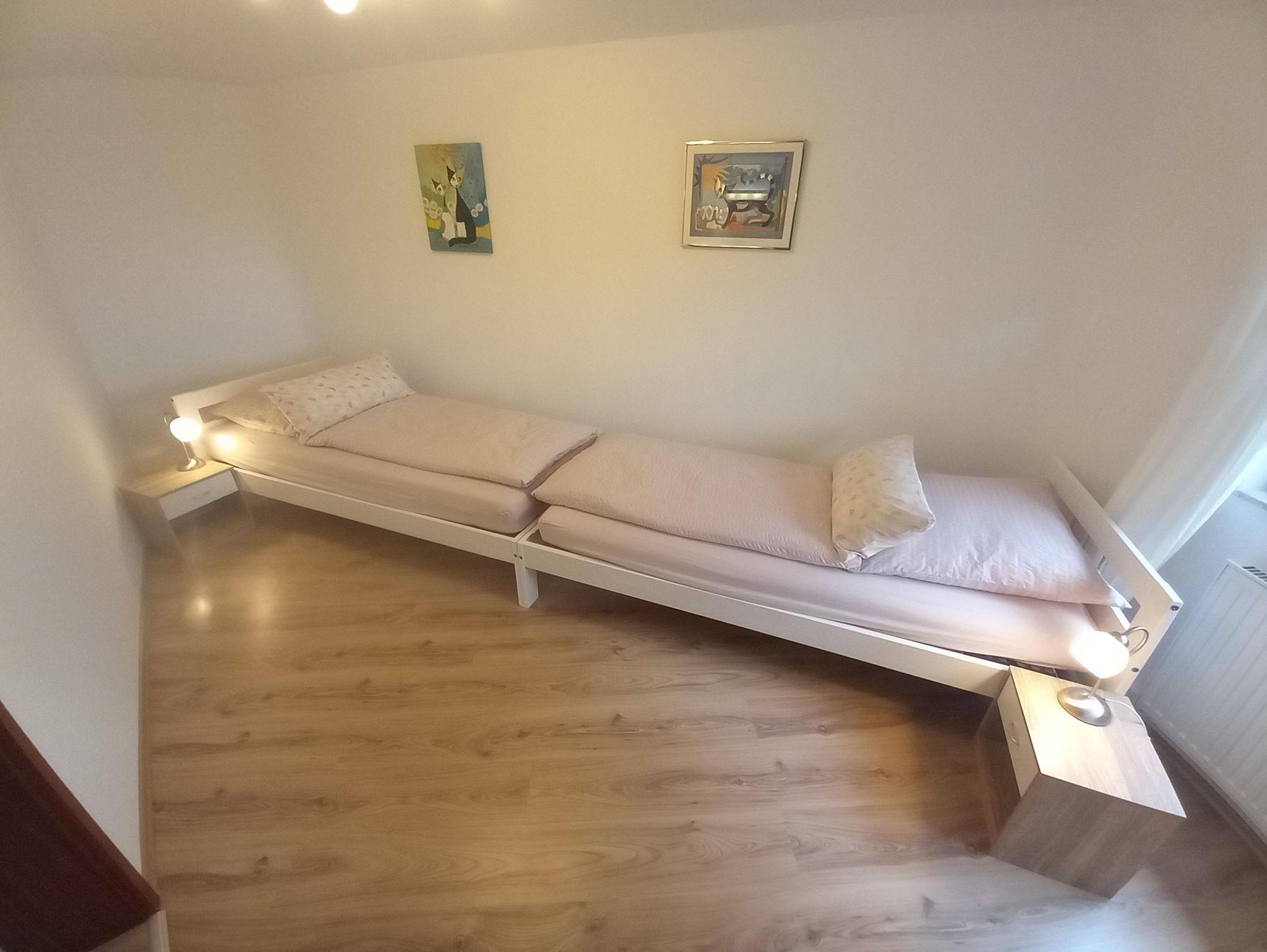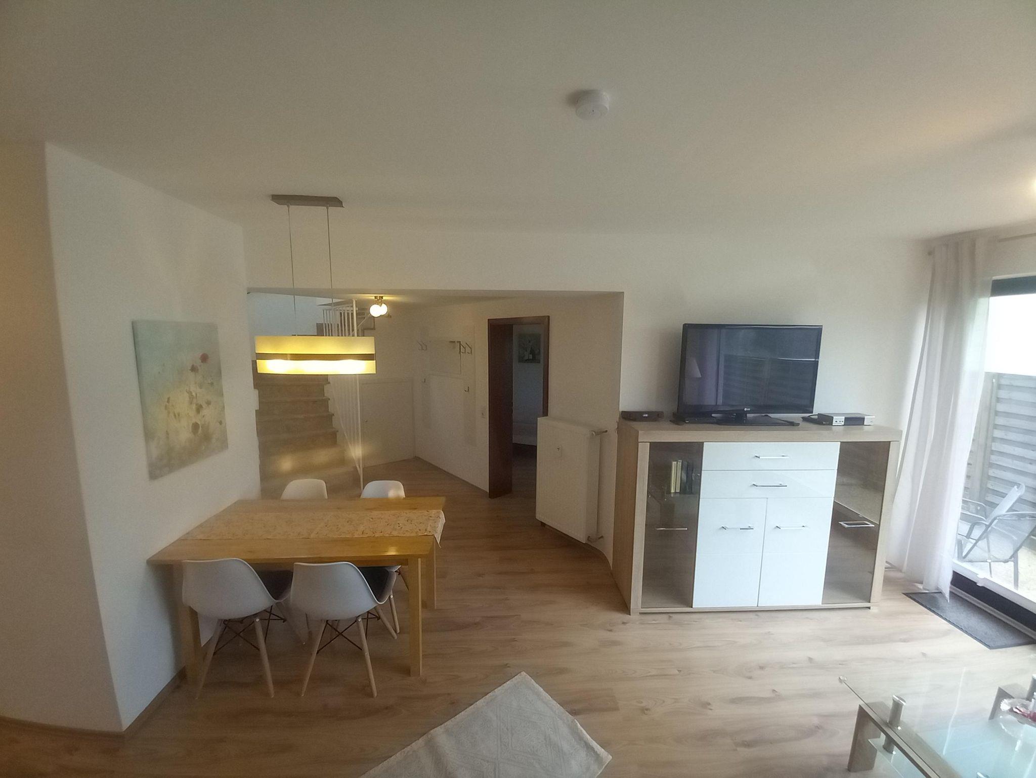 Die Ferienwohnung hat 2 Etagen und befindet sich in einem Mehrfamilienhaus. Als letztes Haus in einer Sackgasse bietet Sie Ihnen erholsame Urlaubstage. Sie hat einen separaten Eingang, vor dem Sie auch direkt parken können. Bis zum See sind es nur 8-10 Gehminuten. Sie ist geeignet für Paare, aber auch Familien mit bis zu 2 Kindern fühlen sich hier wohl.