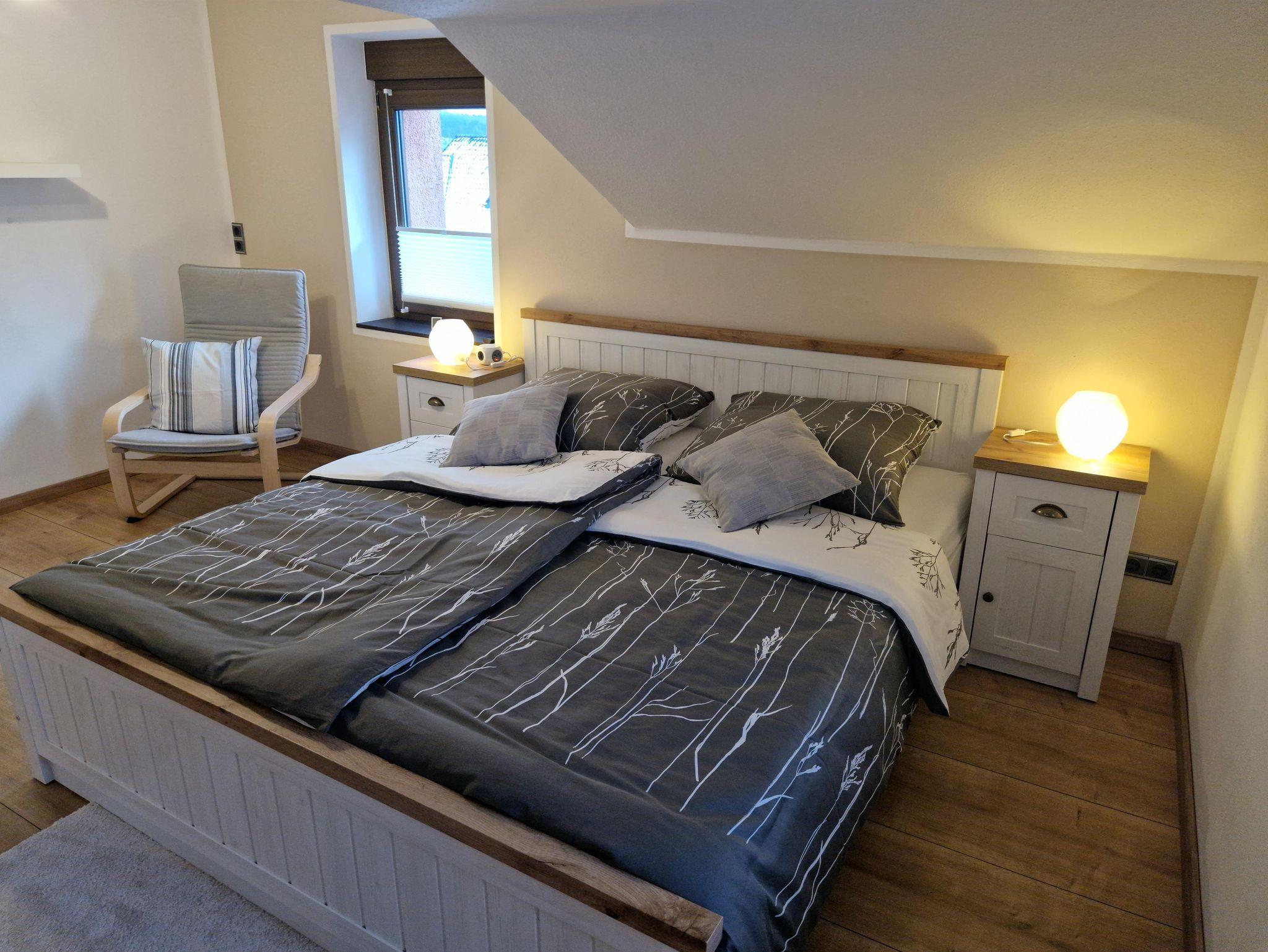In der Ferienwohnung stehen Ihnen drei gemütliche Schlafzimmer, davon zwei Doppelzimmer im OG sowie ein Einzelzimmer im EG zur Verfügung.